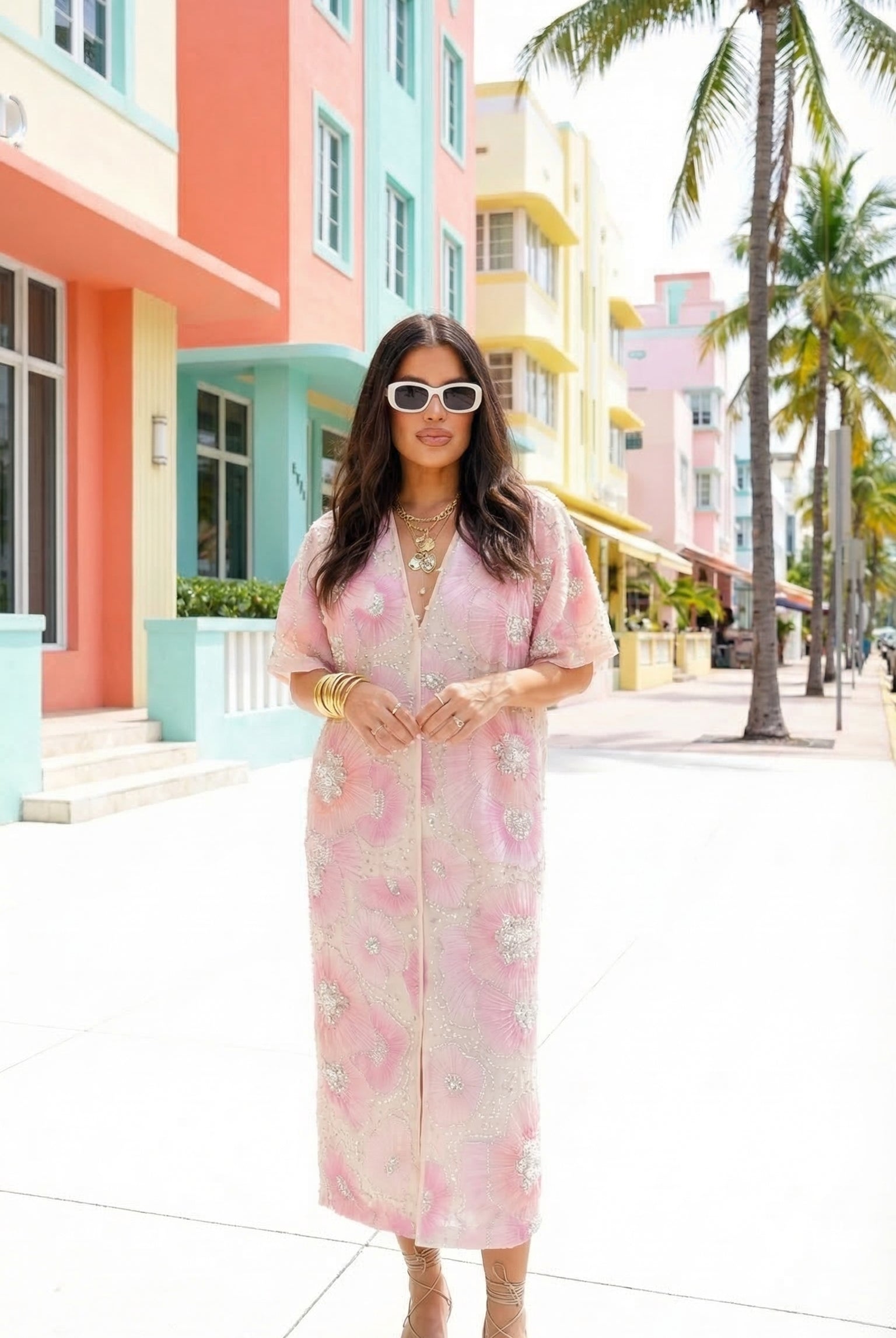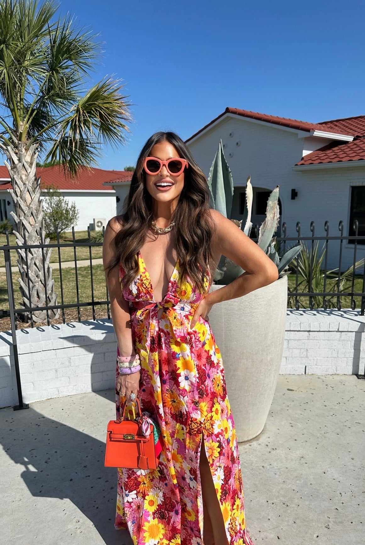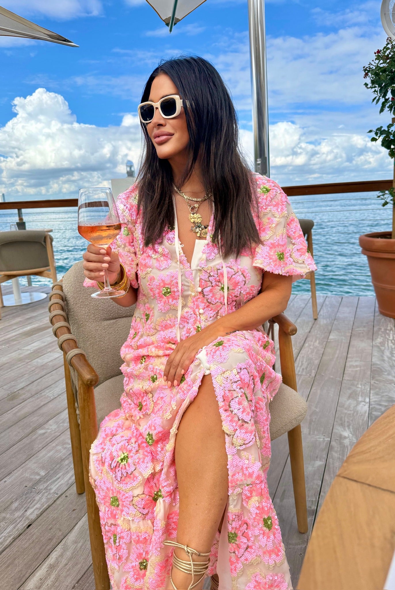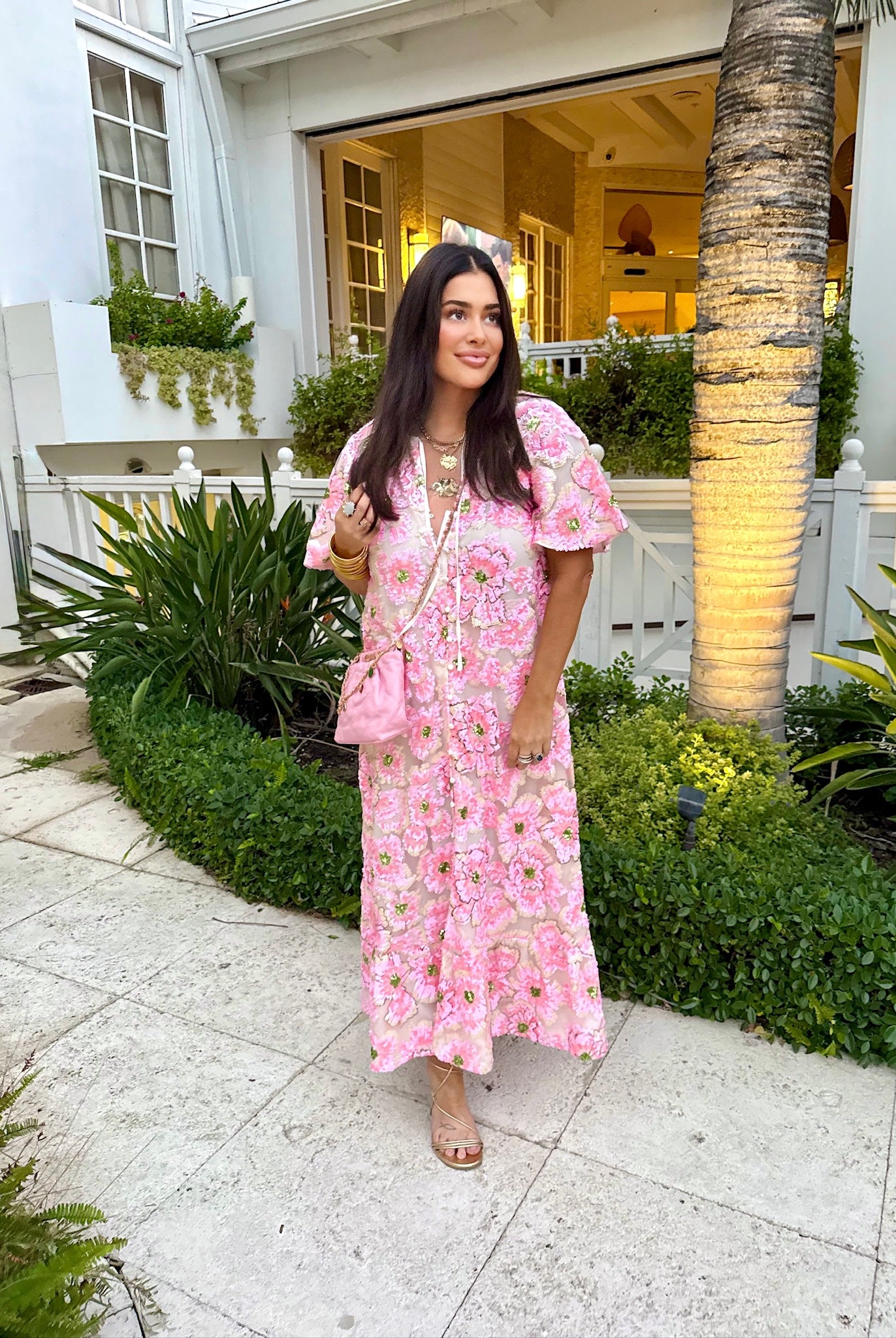 Leighton Coral Cascade Maxi Dress