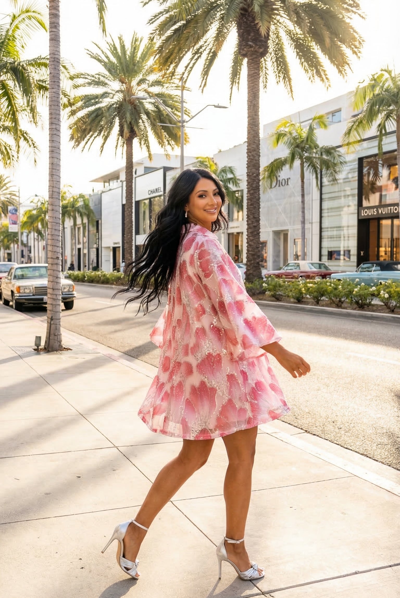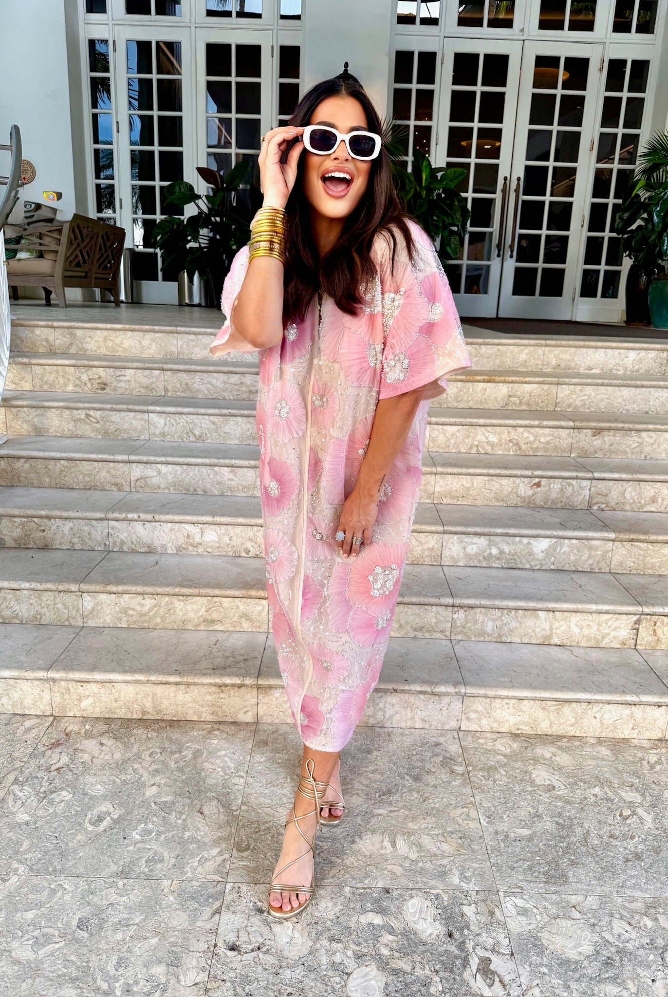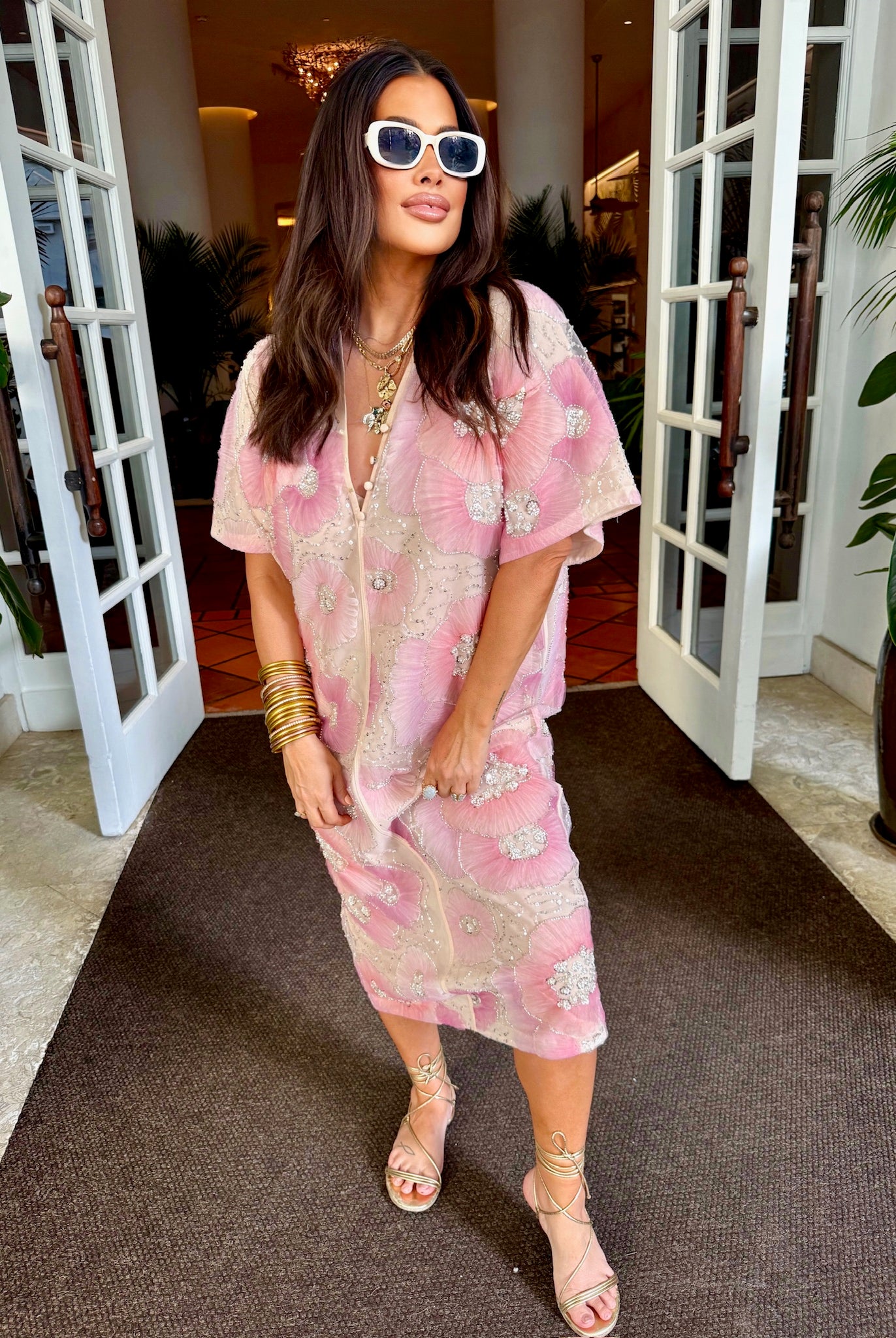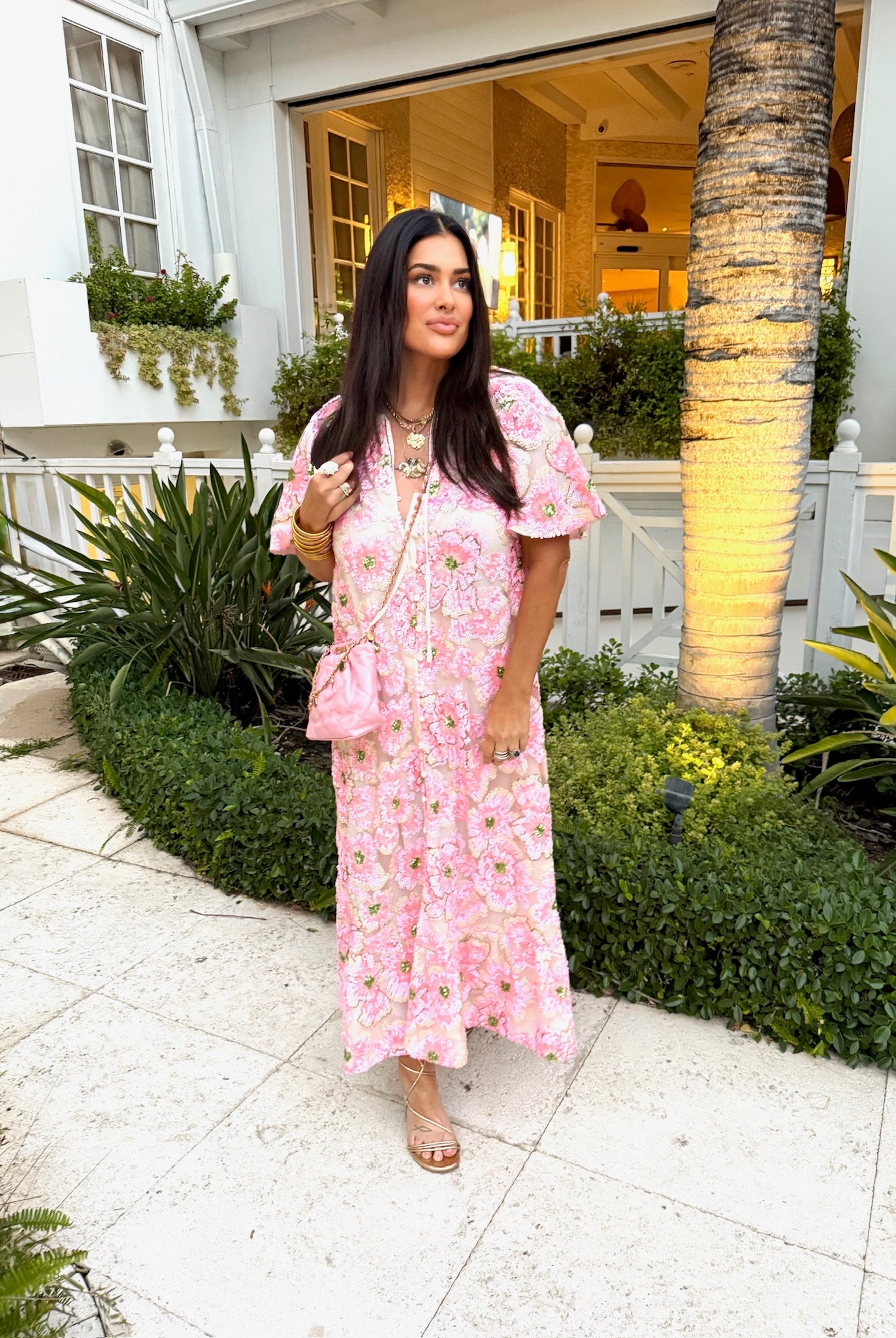 Leighton Coral Cascade Maxi Dress
