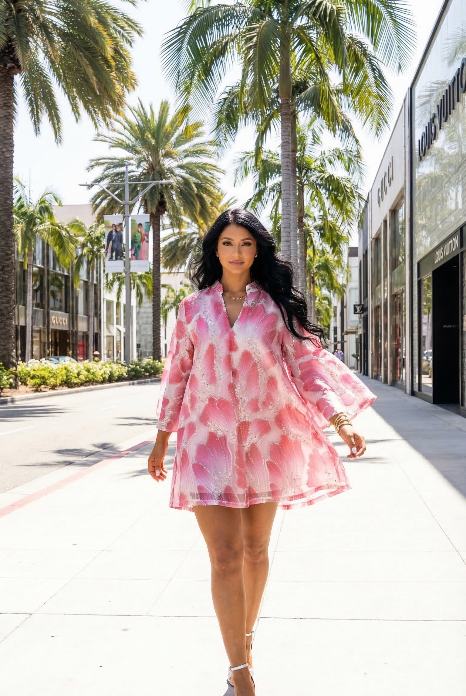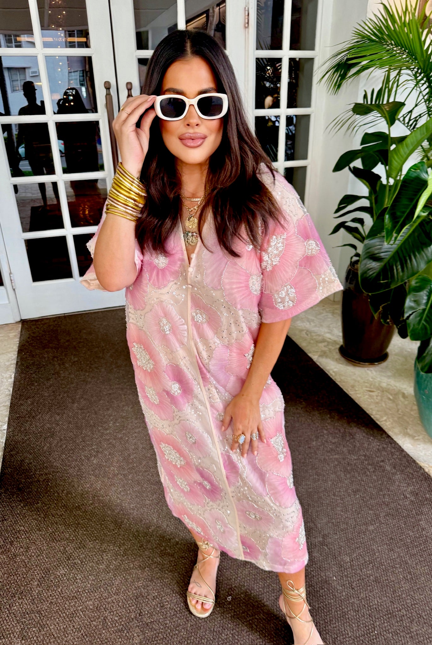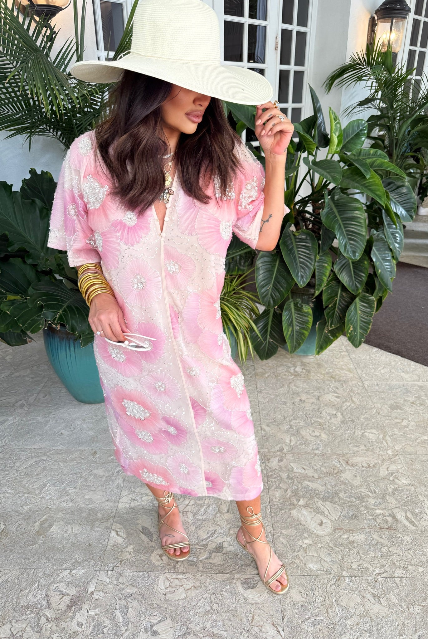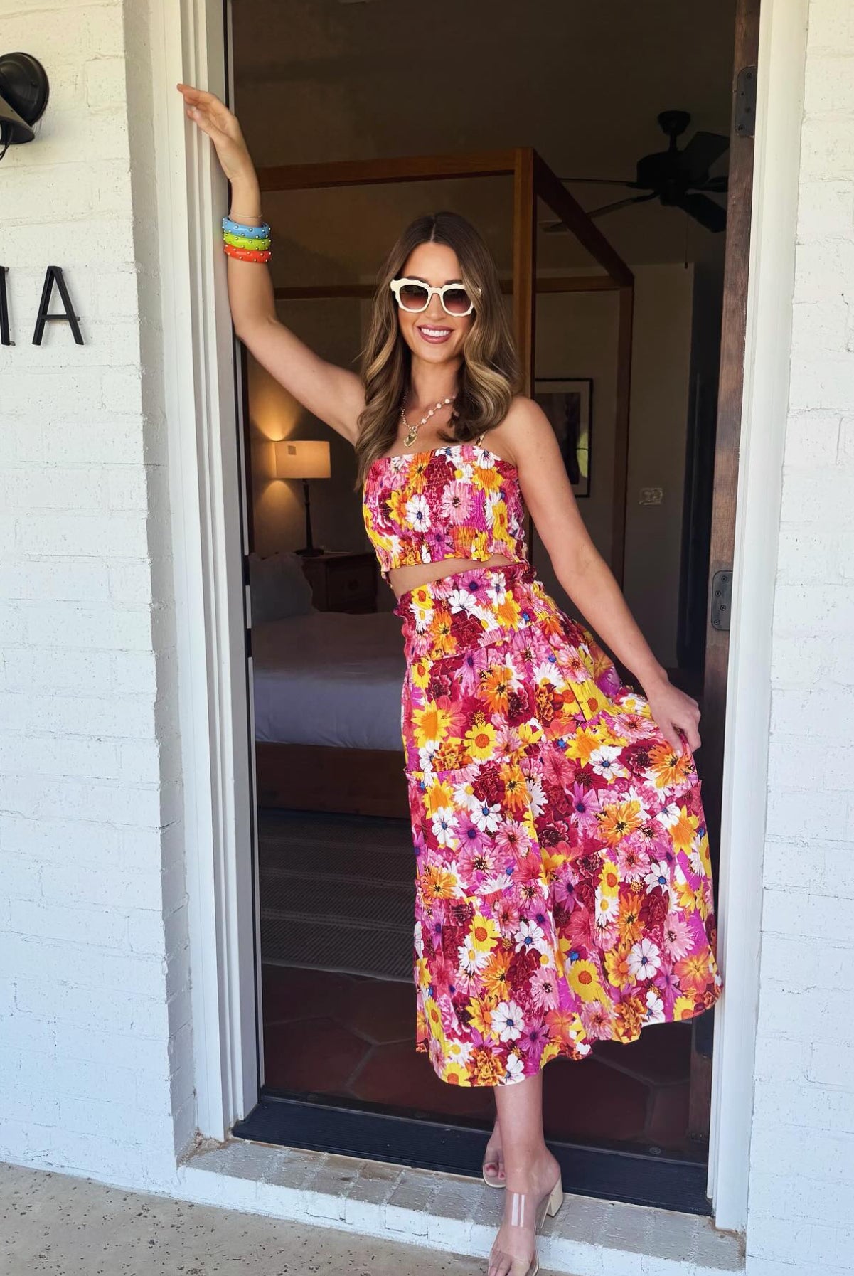 Leighton Coral Cascade Maxi Dress
