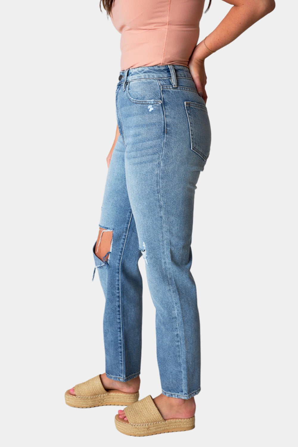 Tracey Distressed Straight Jean - Medium Wash