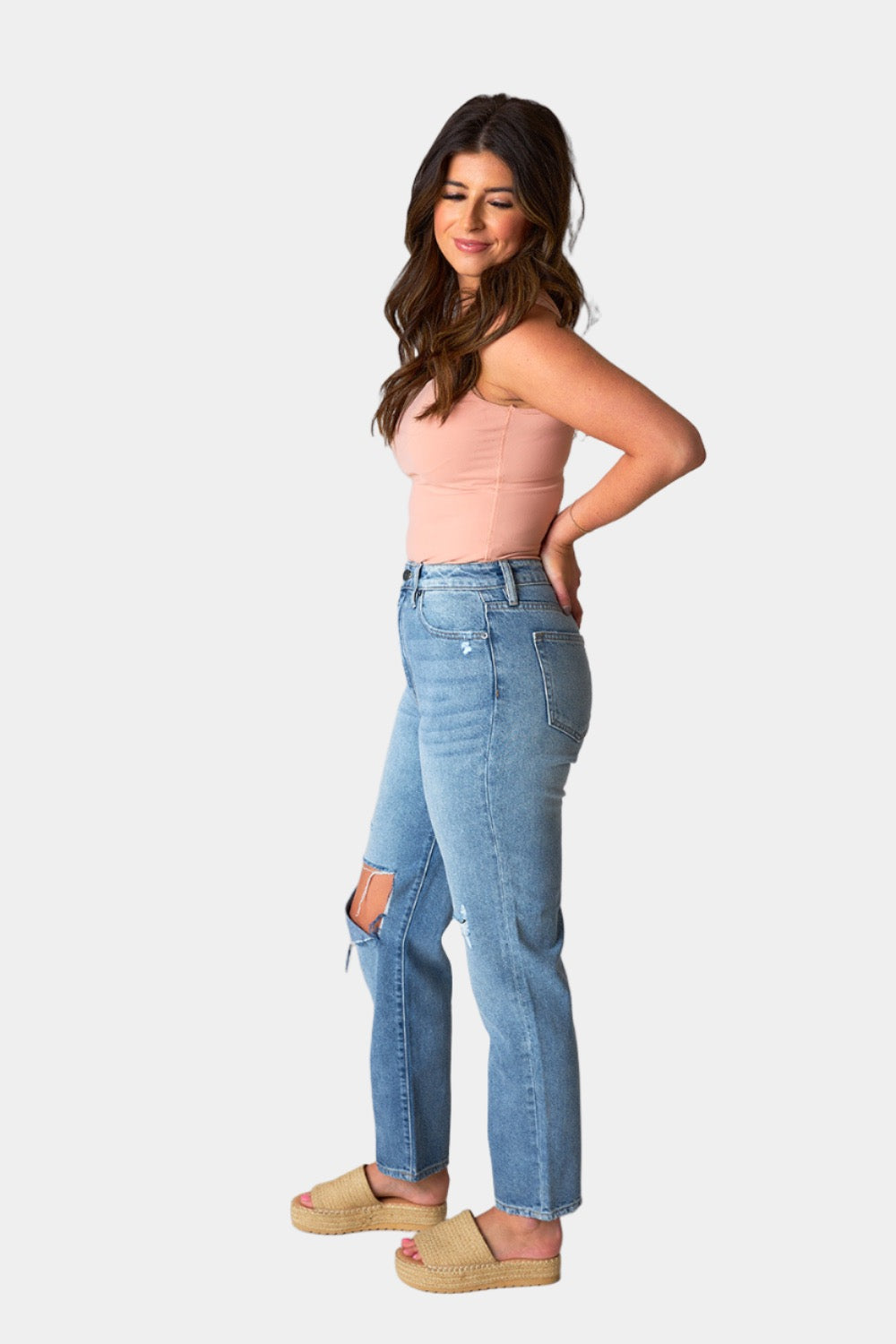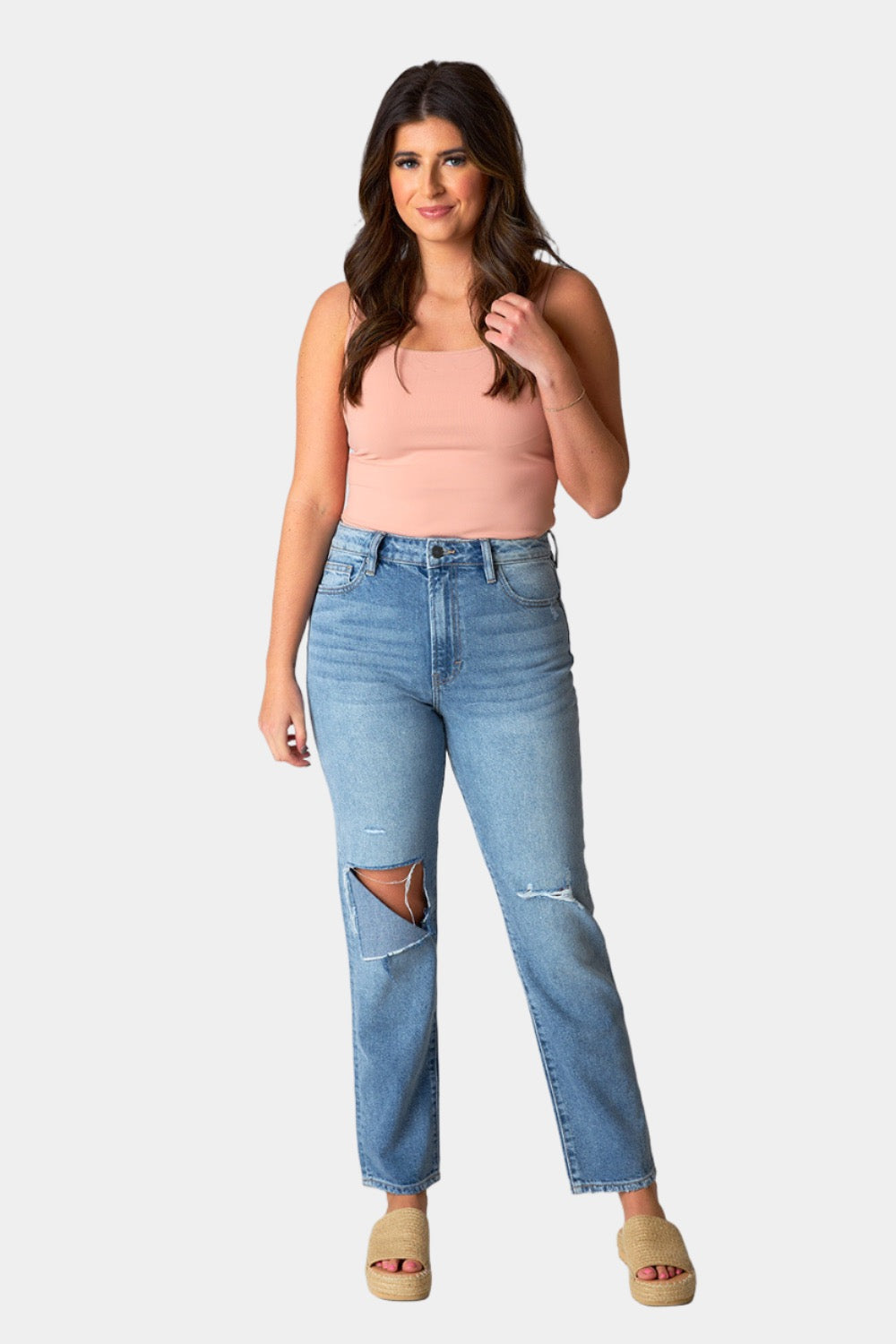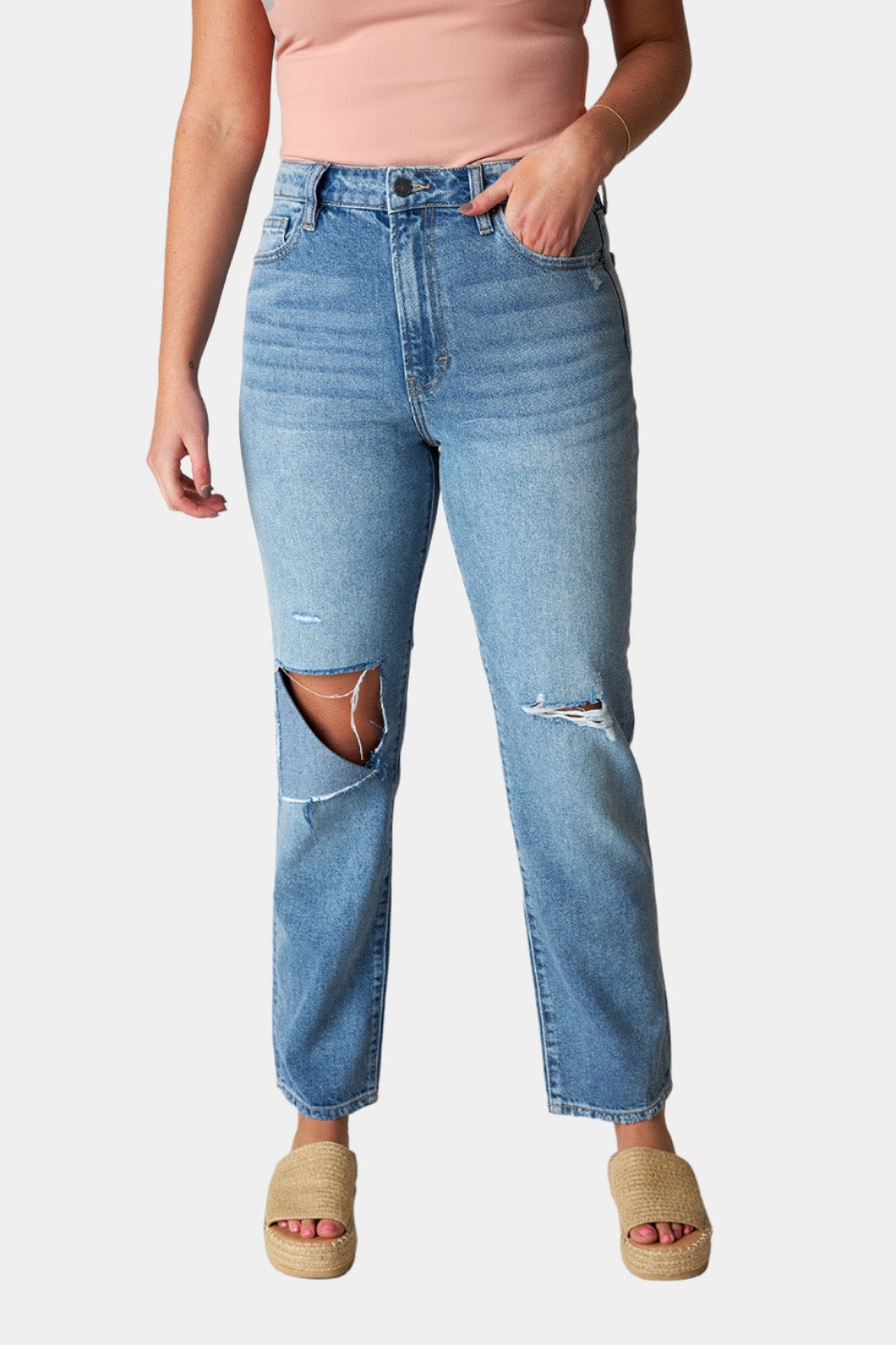 Tracey Distressed Straight Jean - Medium Wash