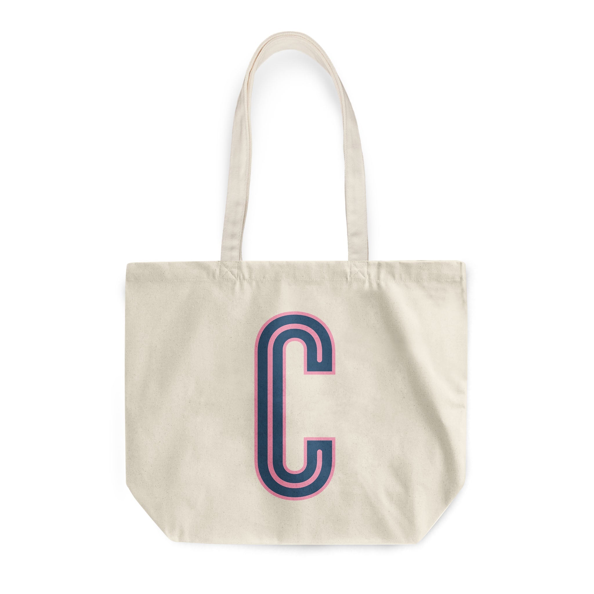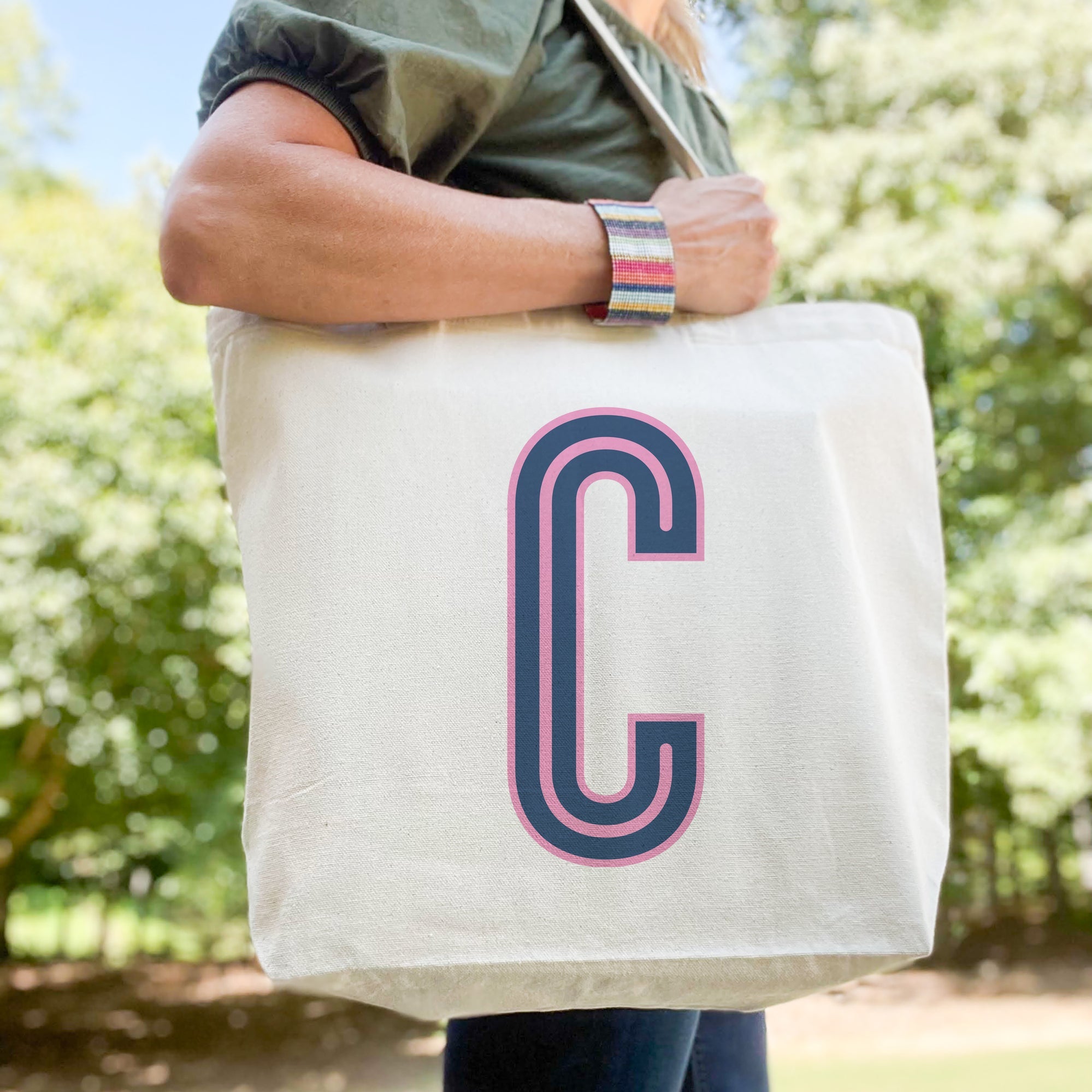 Canvas Tote - Single Initial - Navy Pink - NEW!