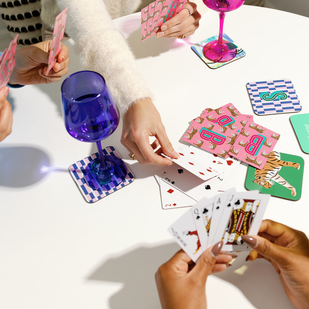 Our colorful coasters make great hostess gifts. Add them to your bar cart to give your guests a chuckle.