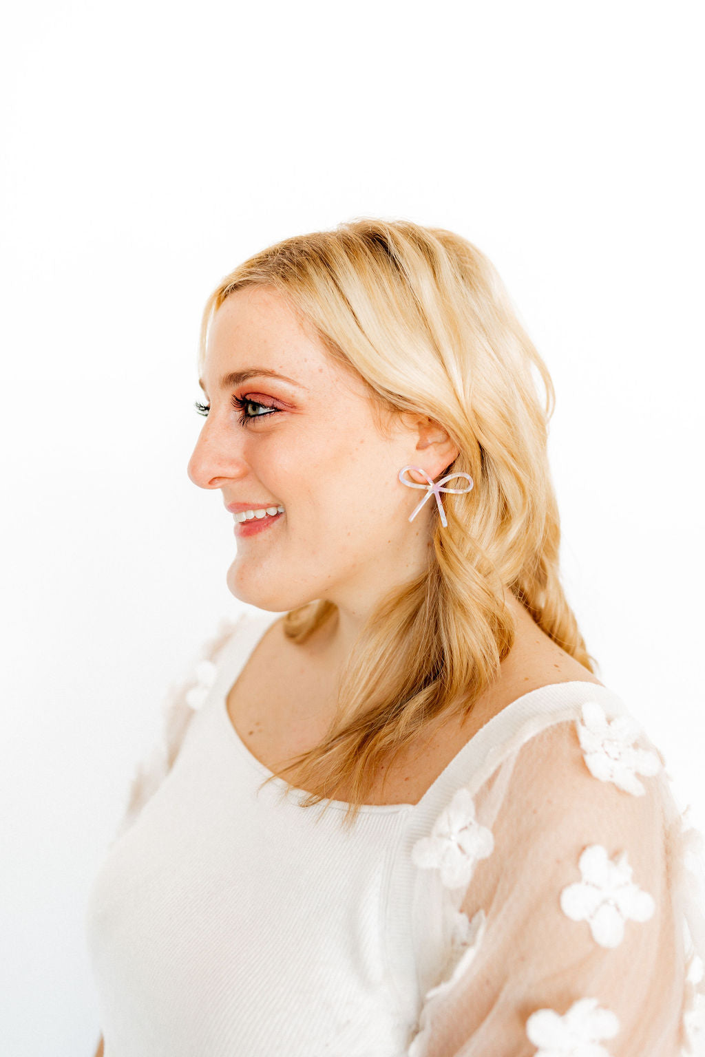 The Lola bow hangs at an angle on the ear with a right and left stud. It is 45mm.