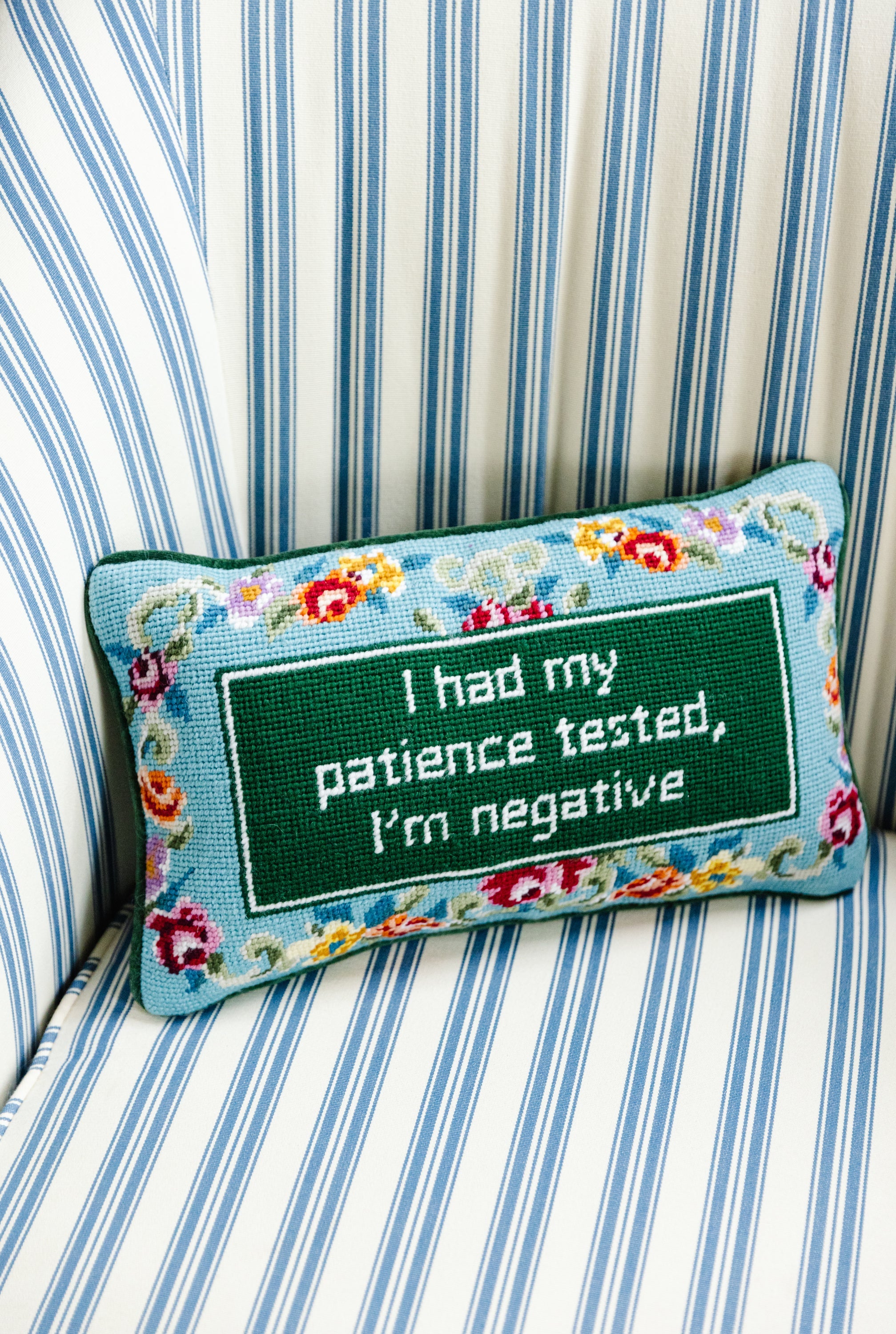 Make a statement with this charming-meets-chic needlepoint pillow. Hand embroidered in wool and backed in luxe dark green velvet, we've revived this Southern staple with sayings that are sure to get a smile.
