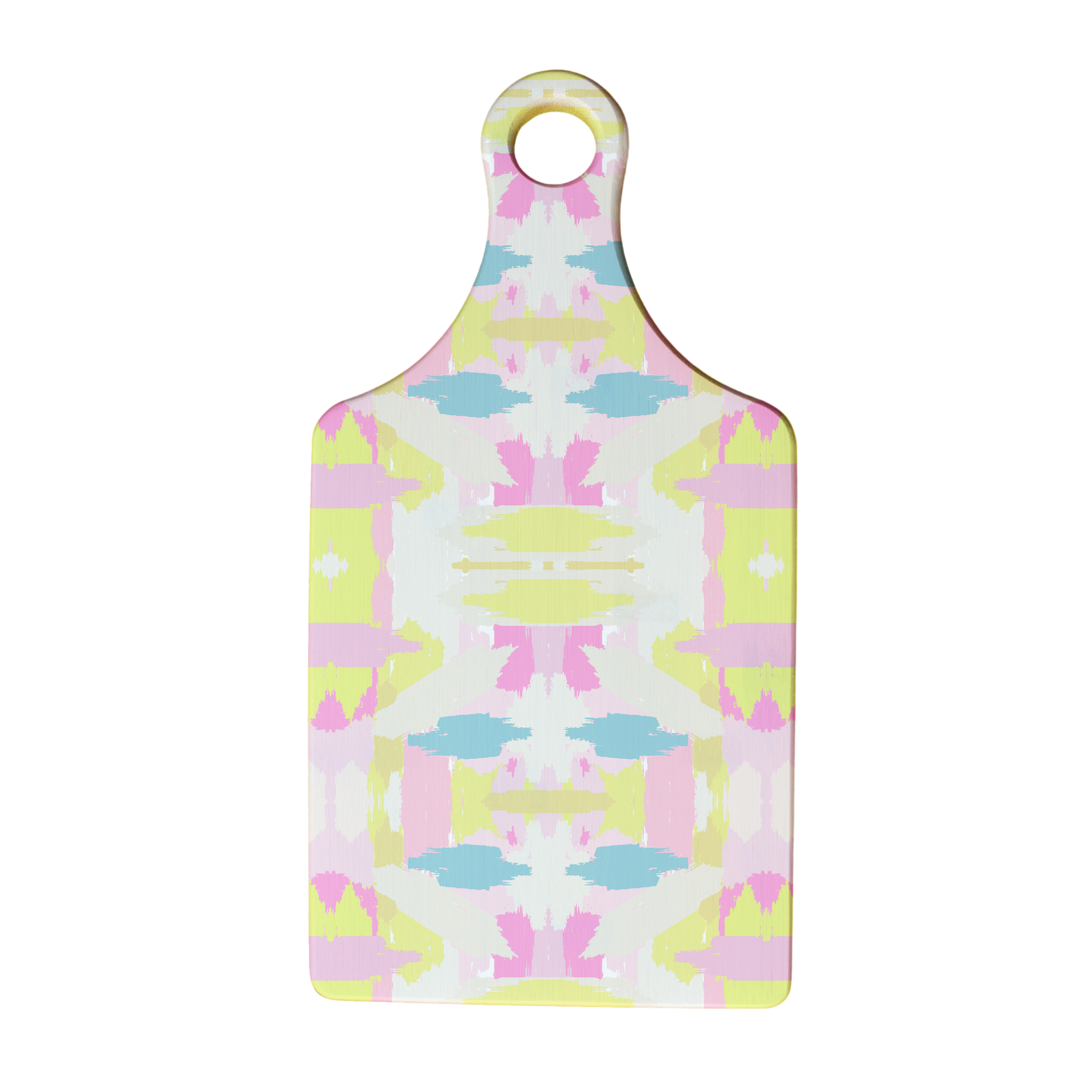 Crafted from sustainable bamboo, this serving board with handle is both functional and stylish. The colorful pattern adds a touch of charm while the sturdy handle makes it easy to carry from kitchen to table.