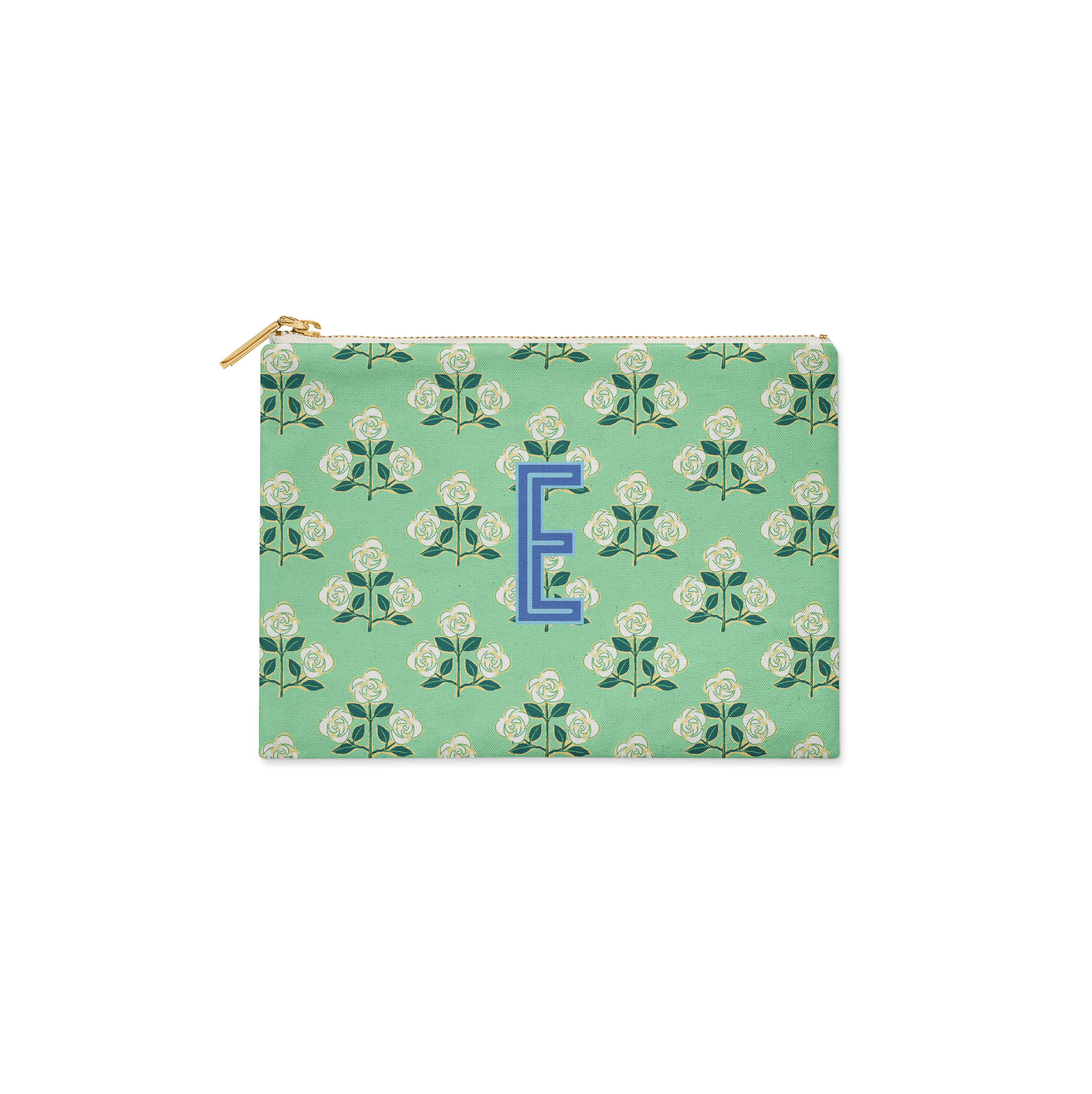Single Initial - Small Flat Zip Pouch Betsy Green - New!