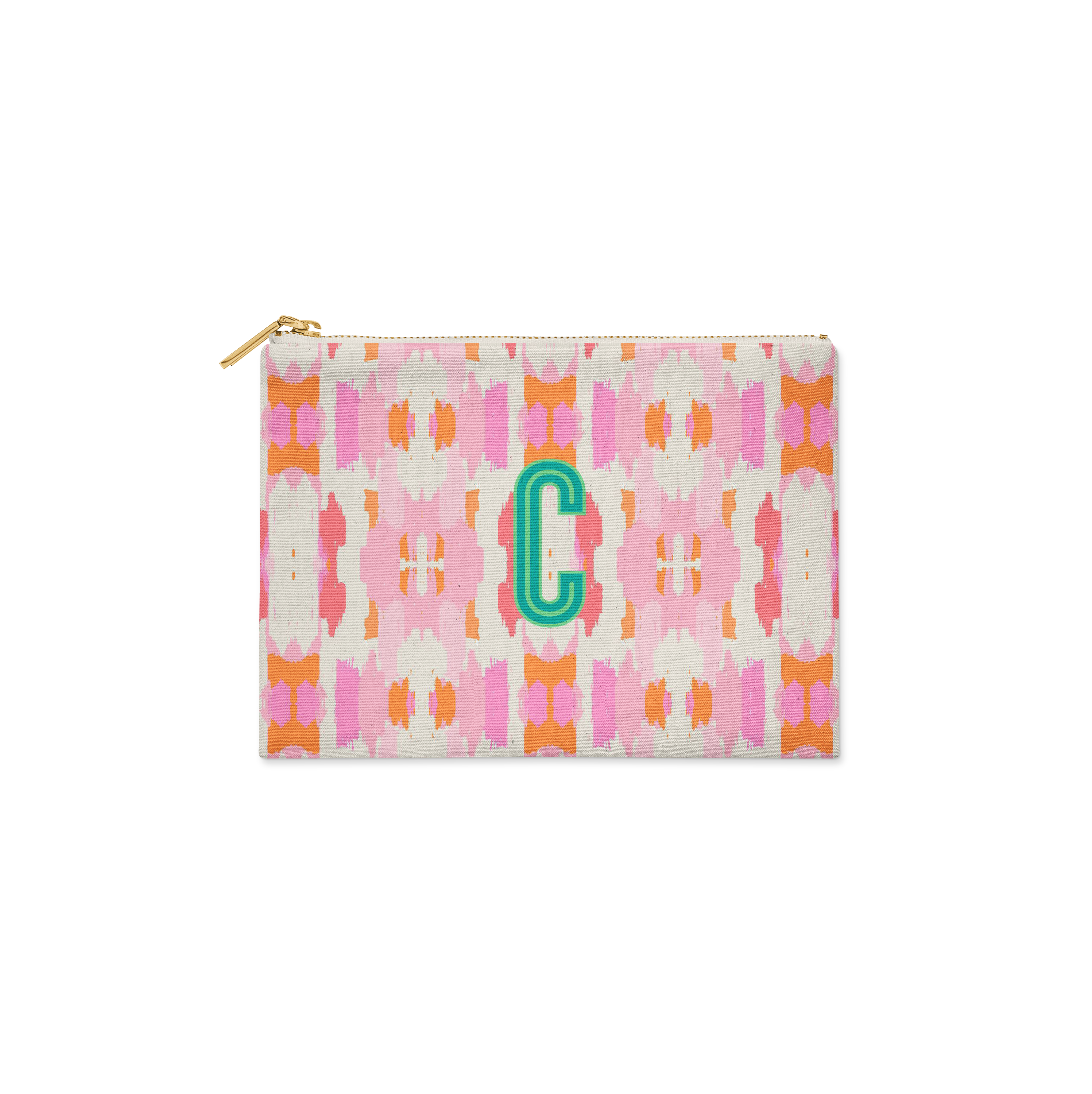 Single Initial - Small Flat Zip Pouch Mitzy Pink - New!