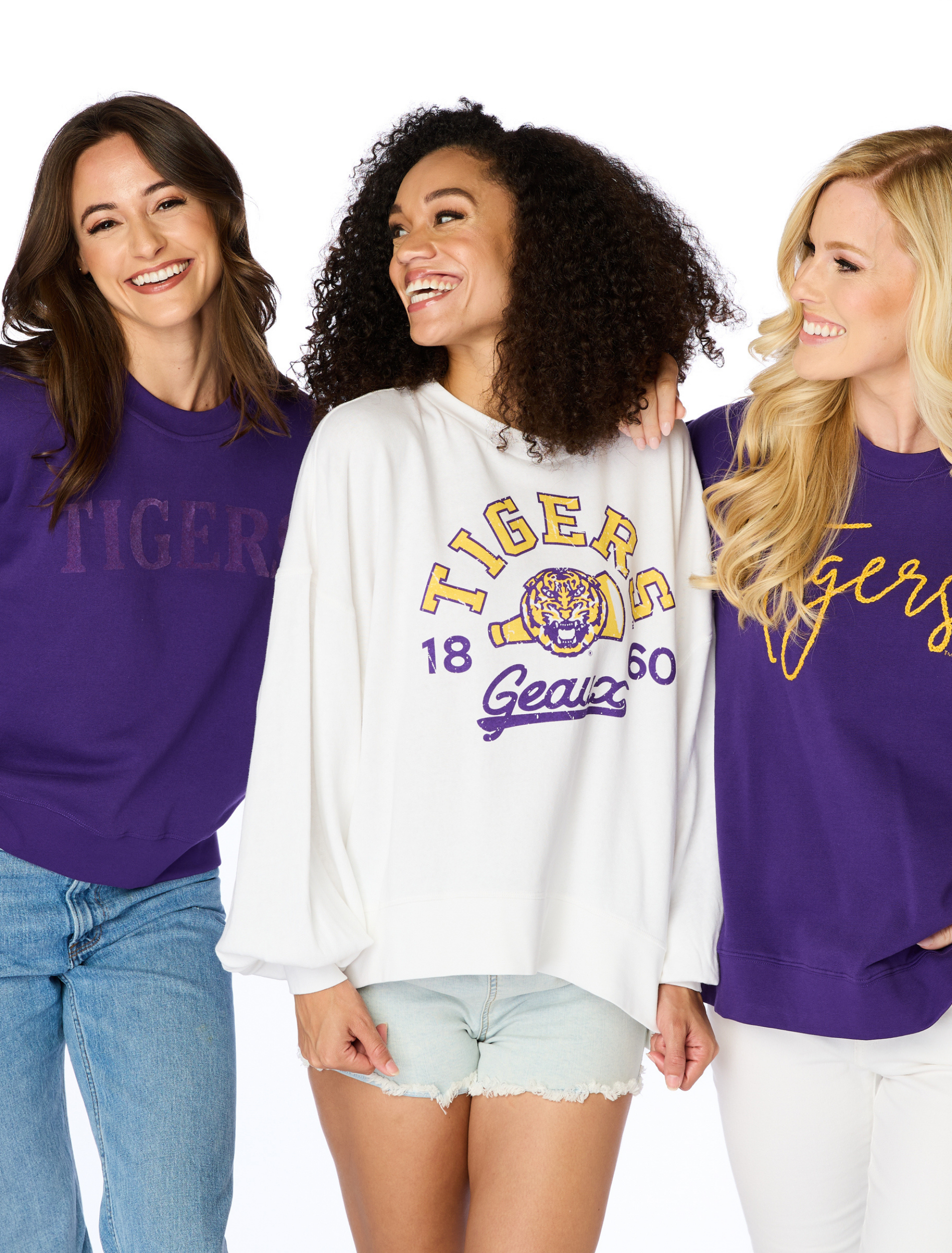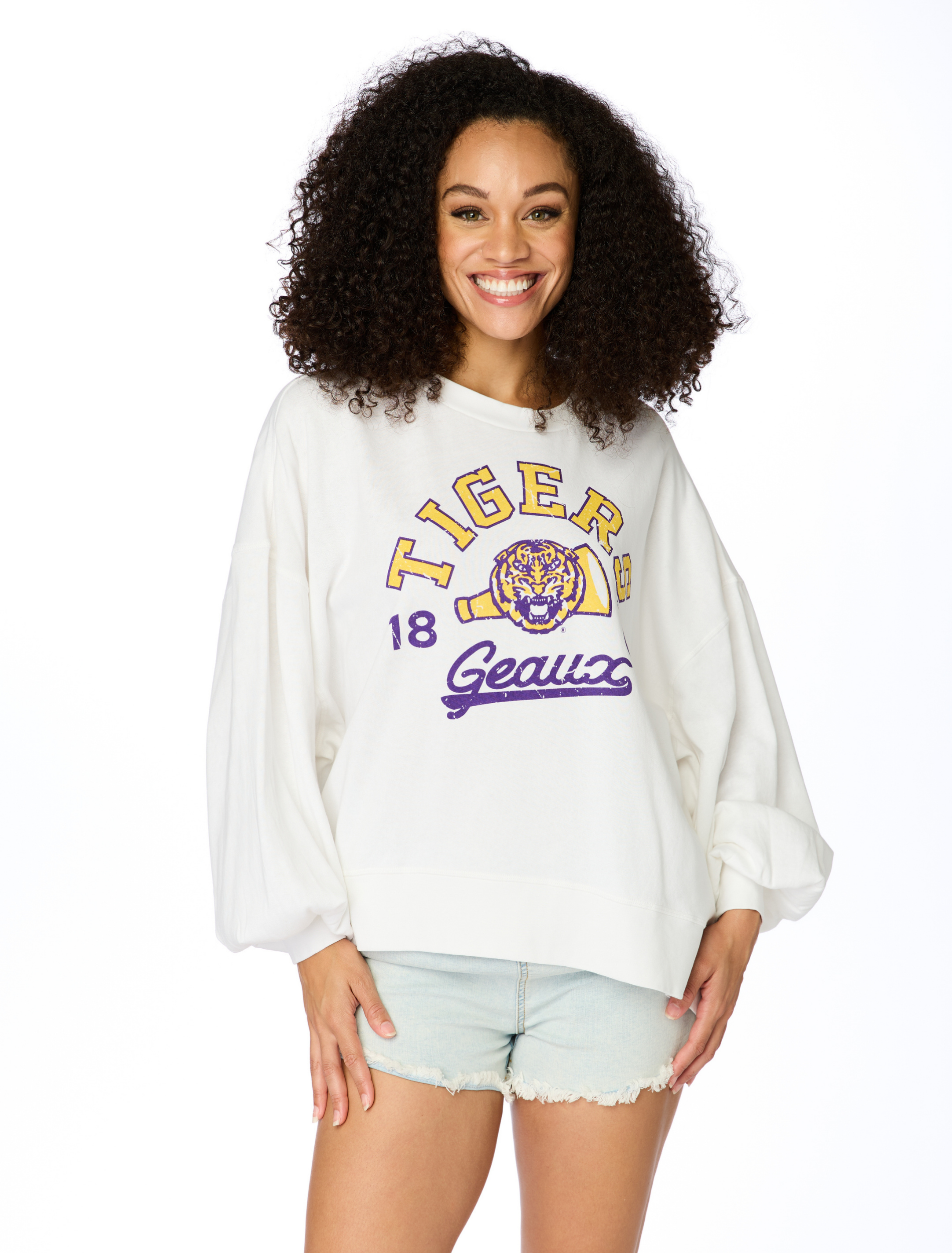 An instant classic! You’ll love the oversized fit, dropped shoulder, and long balloon sleeves.  This garment is officially licensed so a portion of your purchase directly supports the university.