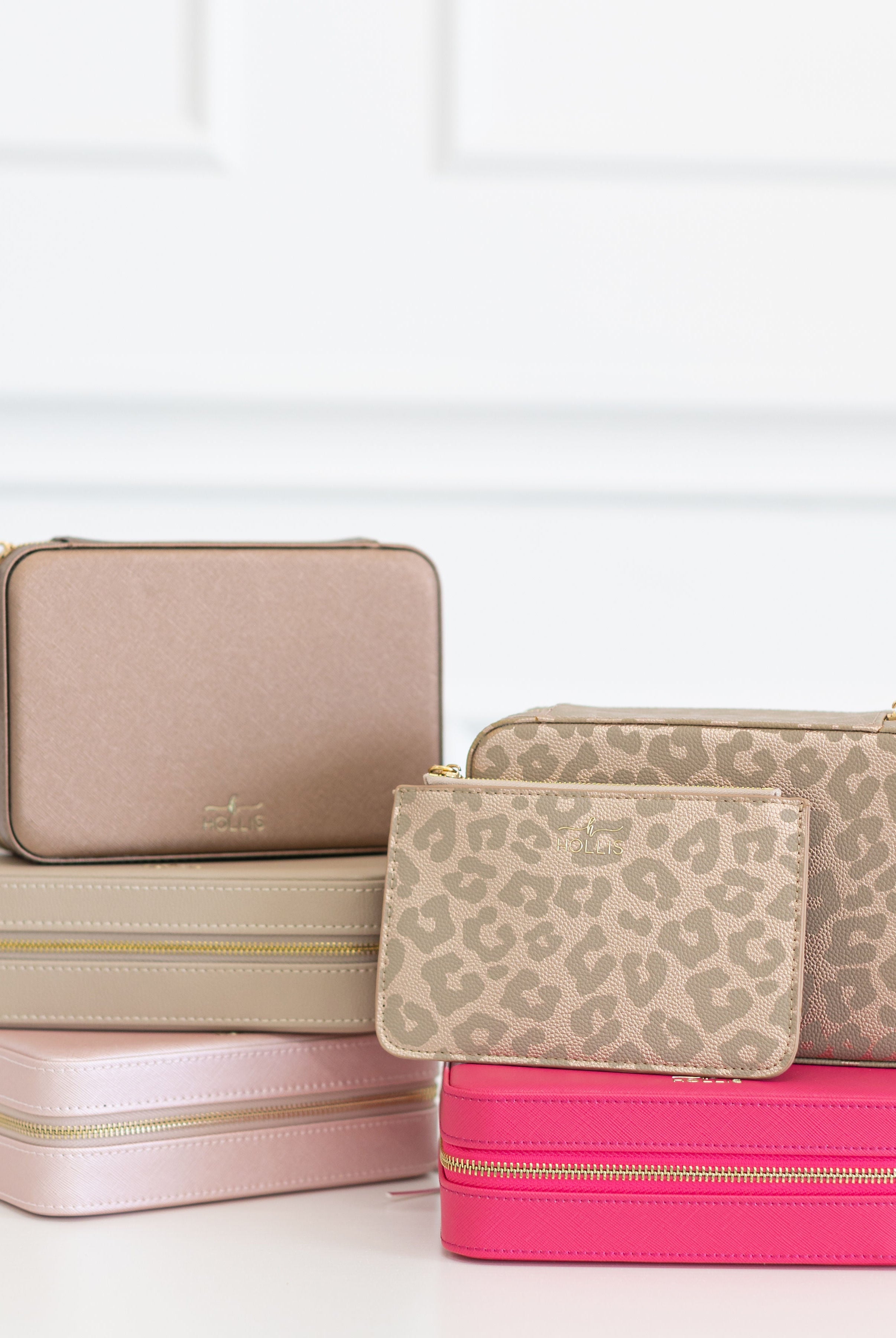 Elevate your style with our cute jewelry organizers, perfect for home use or travel. These stylish jewelry cases, contain compartments to store your fashionable necklaces, trendy earrings, pretty bracelets, and chic rings. Available in vibrant pinks and animal prints, our trendy jewelry organizers make it easy to have your favorite cute jewelry pieces on-hand to pair with any stylish dress or outfit.
