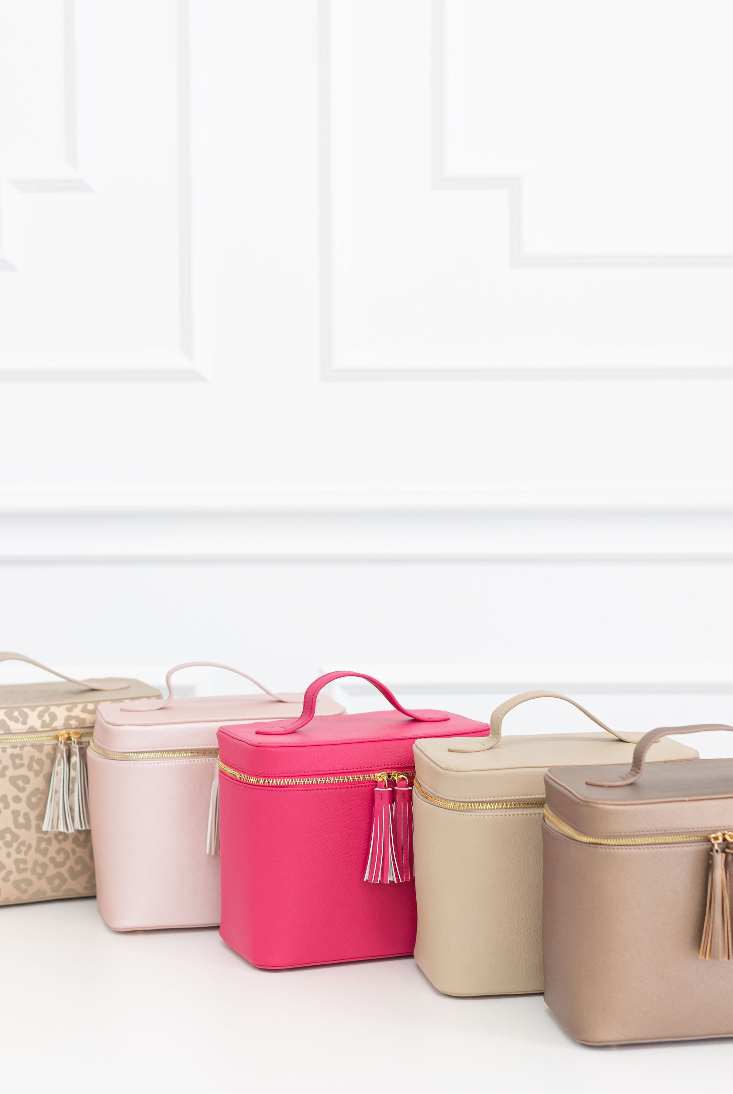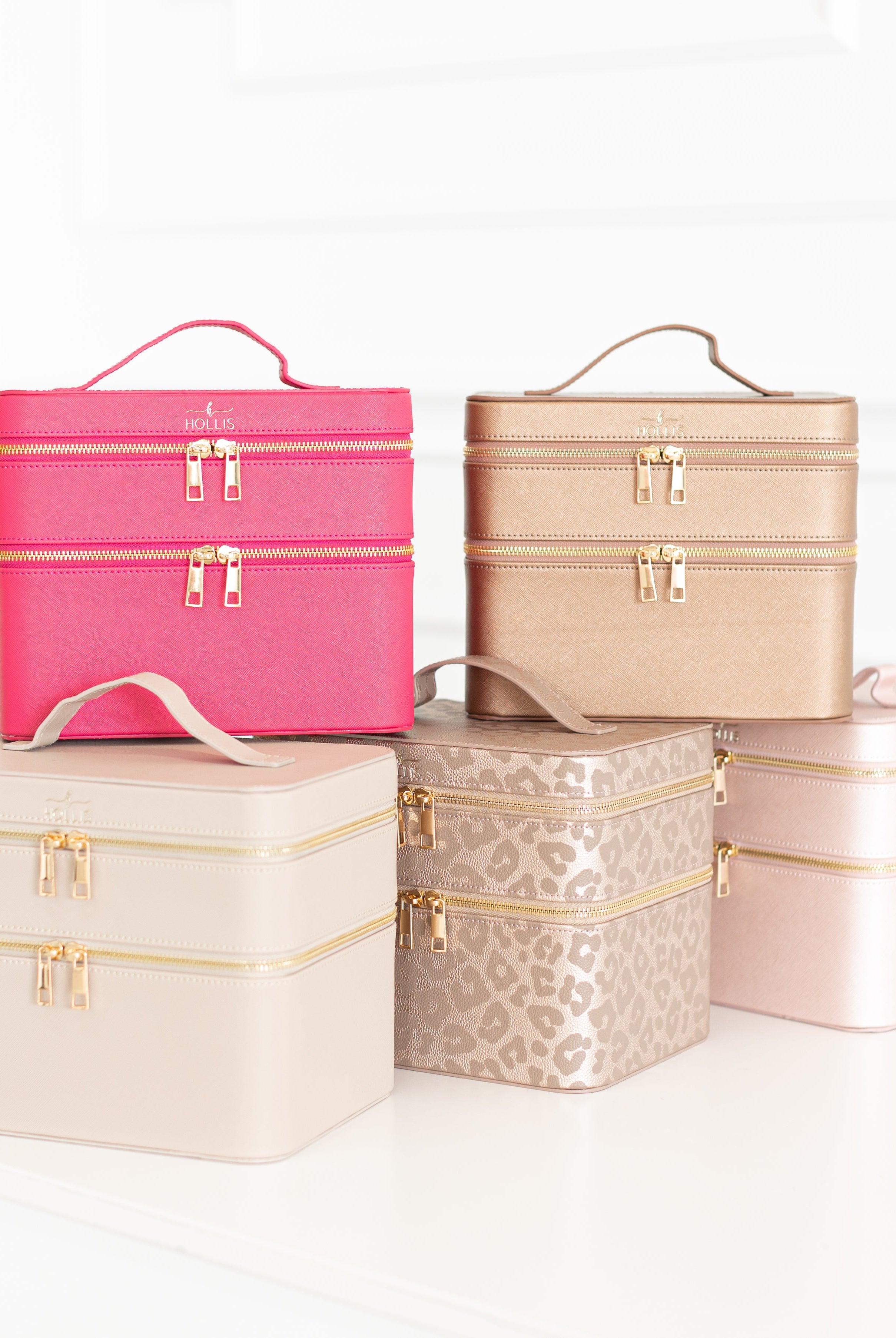 Find the best pretty makeup organizers, in this collection of cute bags for women. Our cute cosmetic bags are great for storing makeup and taking your essentials on-the-go when traveling. Select your favorite shade of pink, or choose the animal print option for your cute makeup bag. These cute cosmetic organizers have enough room for a compact mirror, mascara, foundation, powders, blush, eyeliner, eye shadow, highlighter, bronzer, and more.