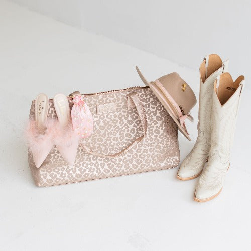 Get ready for a slumber party extravaganza with our Slumber Party Overnighter! This bag is your ideal companion for all your overnight stays, whether you're heading to your bestie's place or embarking on a weekend getaway. Simply toss in your cozy pajamas and you're good to go. With comfortable shoulder straps, you can easily carry it on the go. The added luggage pocket on the back allows you to slip it onto your luggage and effortlessly roll through the airport. Measuring at 23"x9"x14", it offers ample space for all your essentials. Please note that due to the unique nature of our products, the exact color patterns may vary slightly from the image shown, ensuring your Slumber Party Overnighter is truly one-of-a-kind. Pack your bags and get ready for a stylish and convenient adventure!