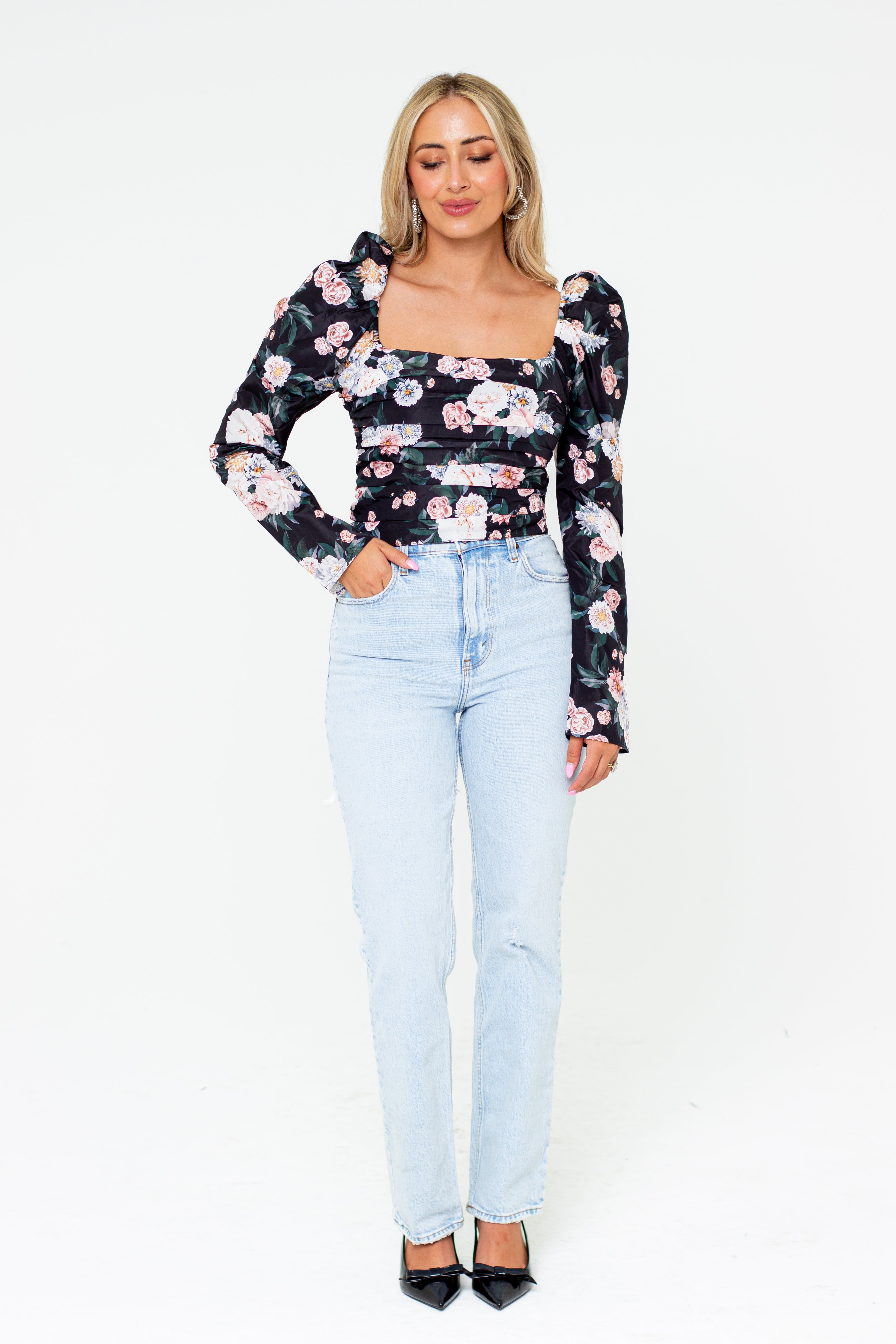 Dutchess Pleated Long Sleeve Top - Sleeping Garden