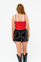 Be the IT girl in our Girly Girl Top! The Girly Girl features bra clasps for closure in the back, rhinestone studded fabric, and soft fabric on the inside to provide for comfortable wear. The fabric has no stretch, so if in between sizes we recommend sizing up! Pair with high-waisted denim and heels for a fun night out!