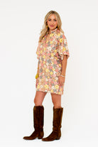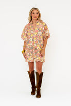 Lulu Short Sleeve Mini Caftan - Disco Flower