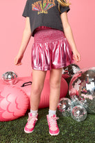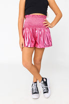 The smocked waist of our Eloise Shorts gives it a bold look, while the metallic shimmer adds a playful vibe! The elastic waistband makes it super comfy so your girl is twirling and taking on the day in style. Add her fav sneakers and graphic tee for the perfect playdate fit!
