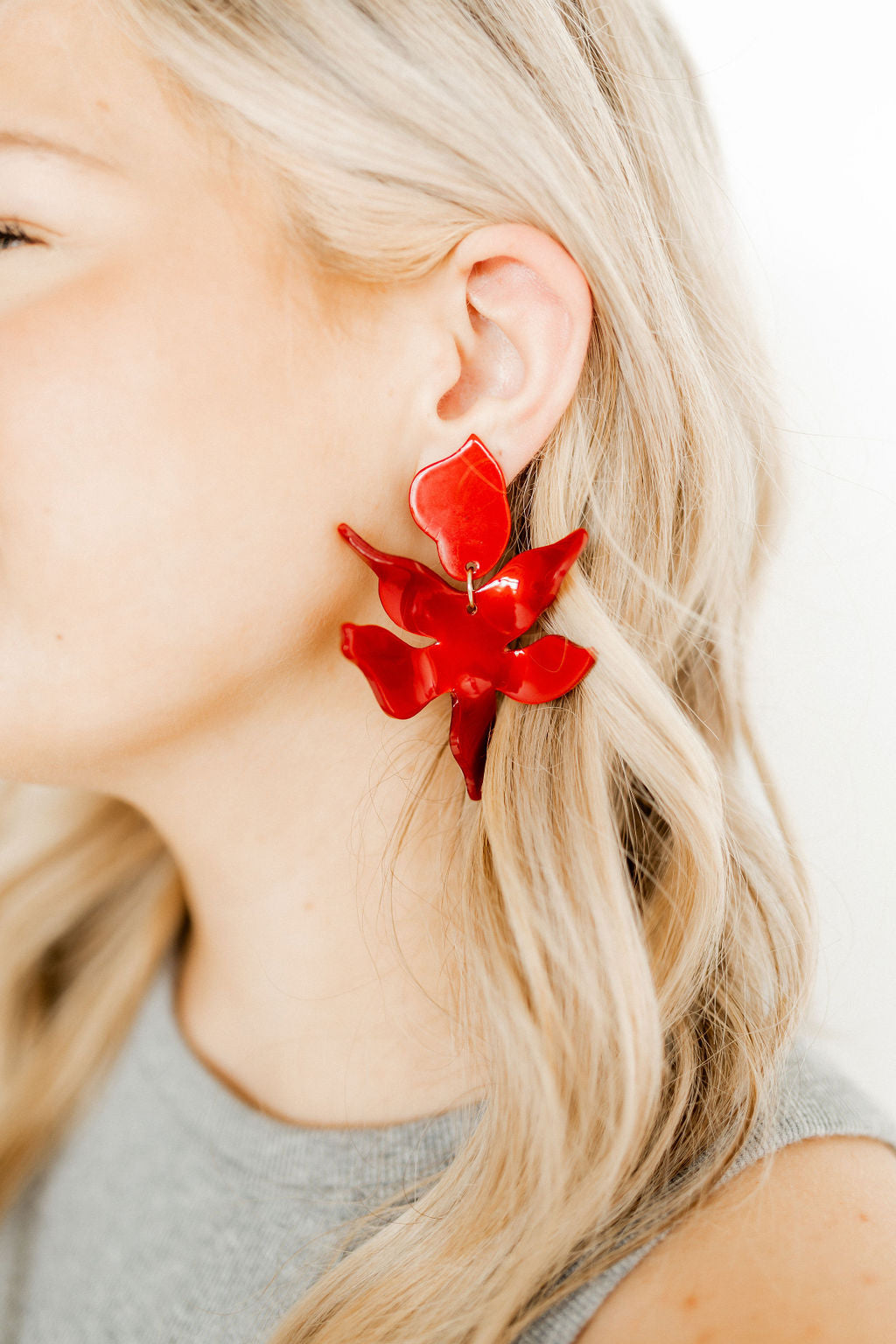 Flora Statement Earrings - True Red