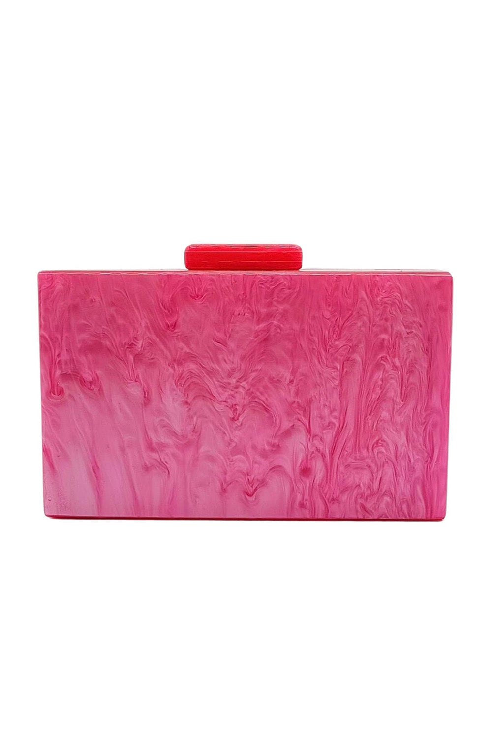Material: Acrylic; Color: Hot Pearlized Pink; Fits an iPhone 14, card case, lipstick and single key; Magnetic Closure; Size of actual bag: 18x11x4.5mm; Handle with care
