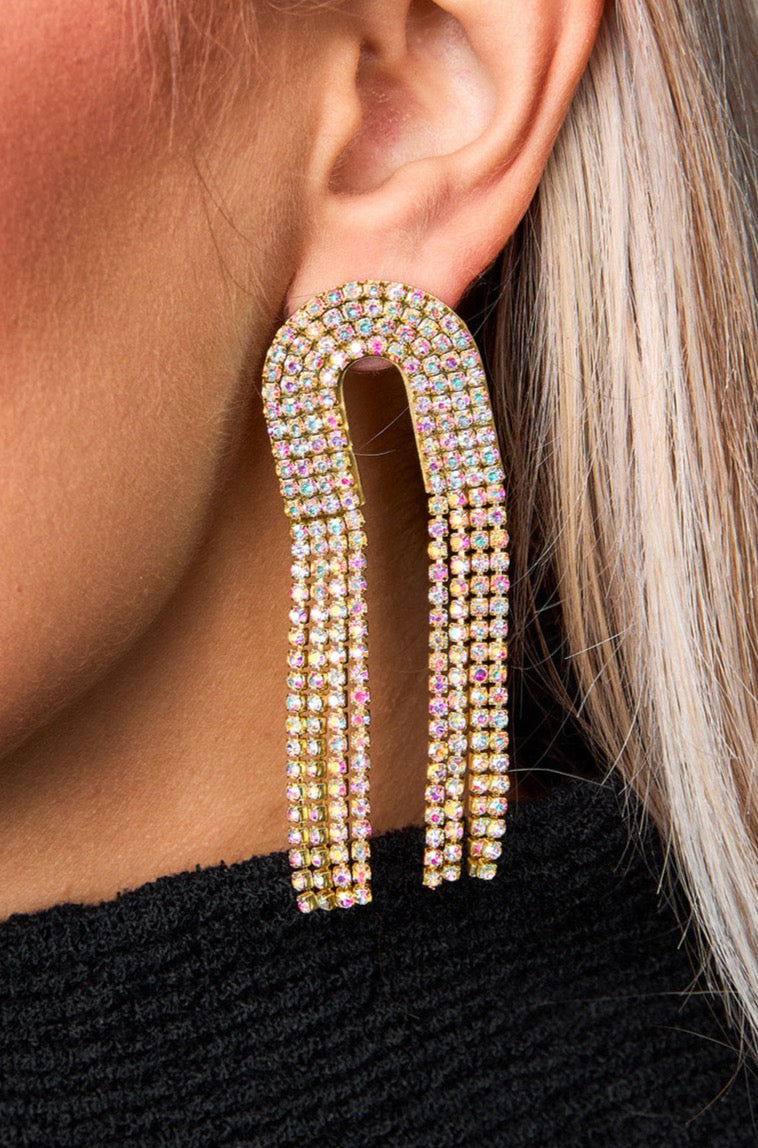 Sophisticated yet fun are these earrings! With 4 rows of iridescent diamonds, these pair well with any outfit!