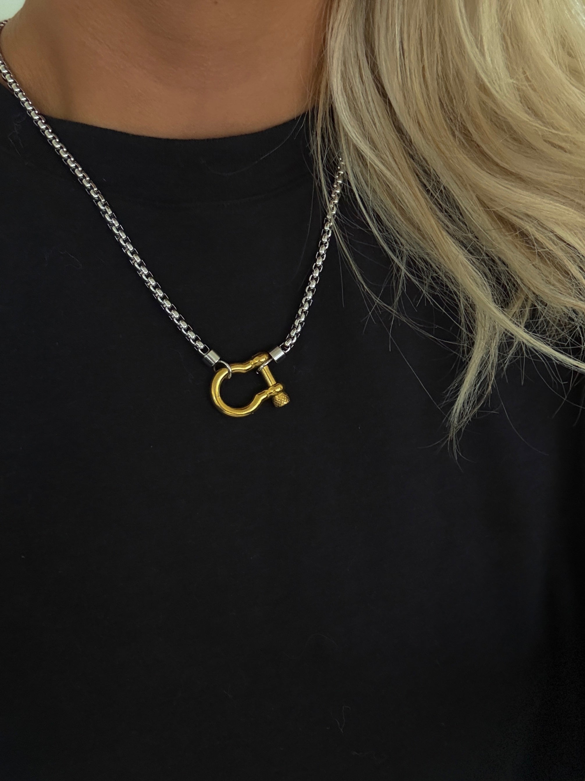 GOLD NECKLACE WITH SILVER PENDANT