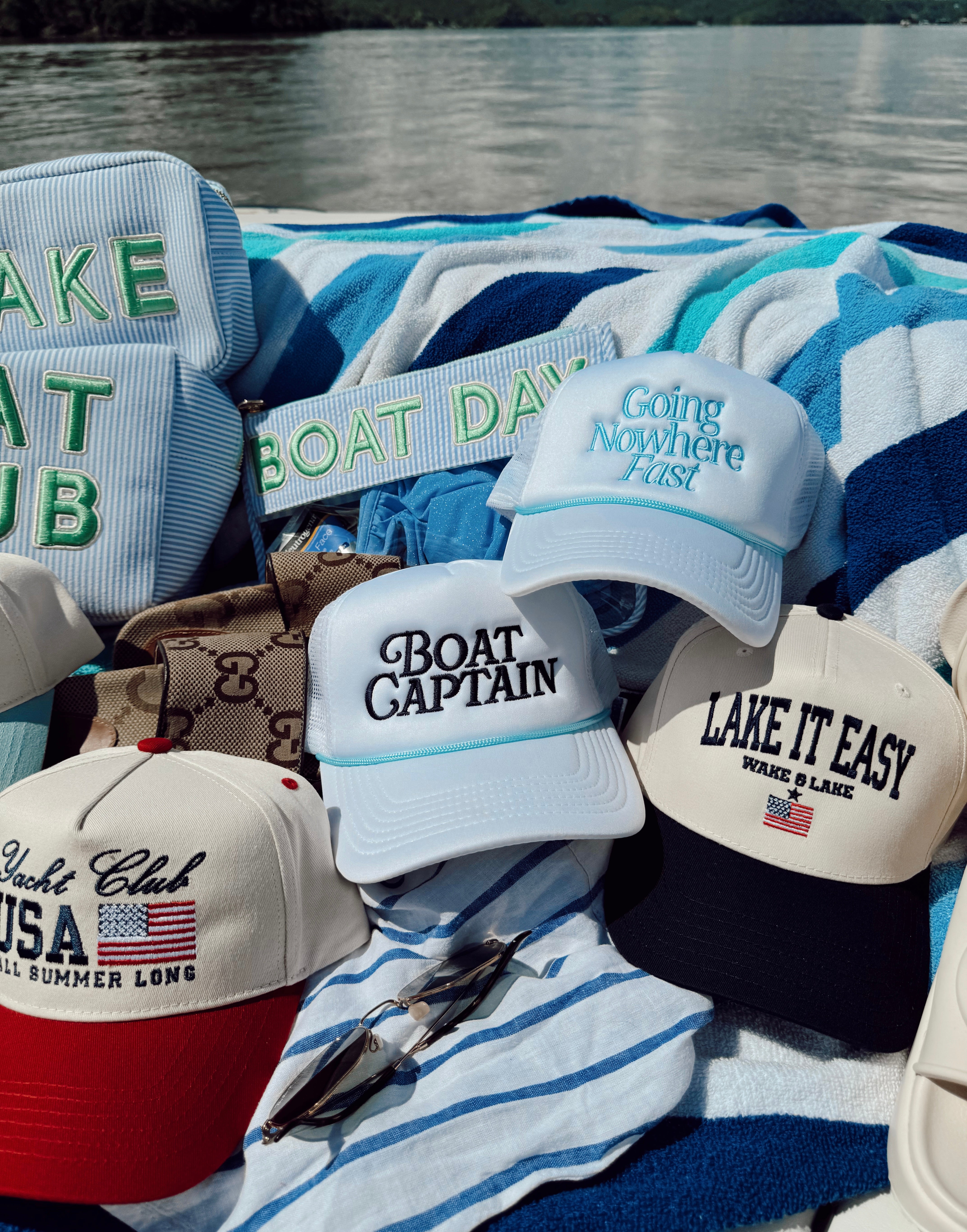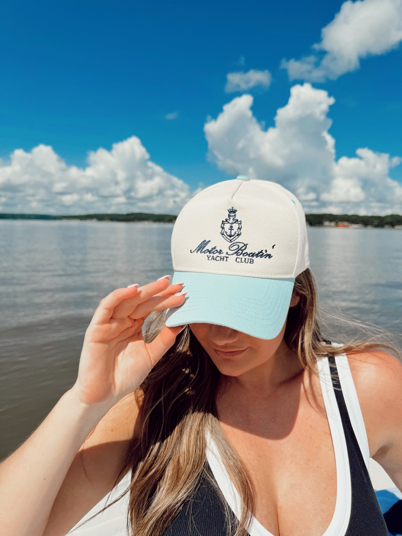 Motor Boatin' Yacht Club - Baby Blue Vintage Trucker Hat