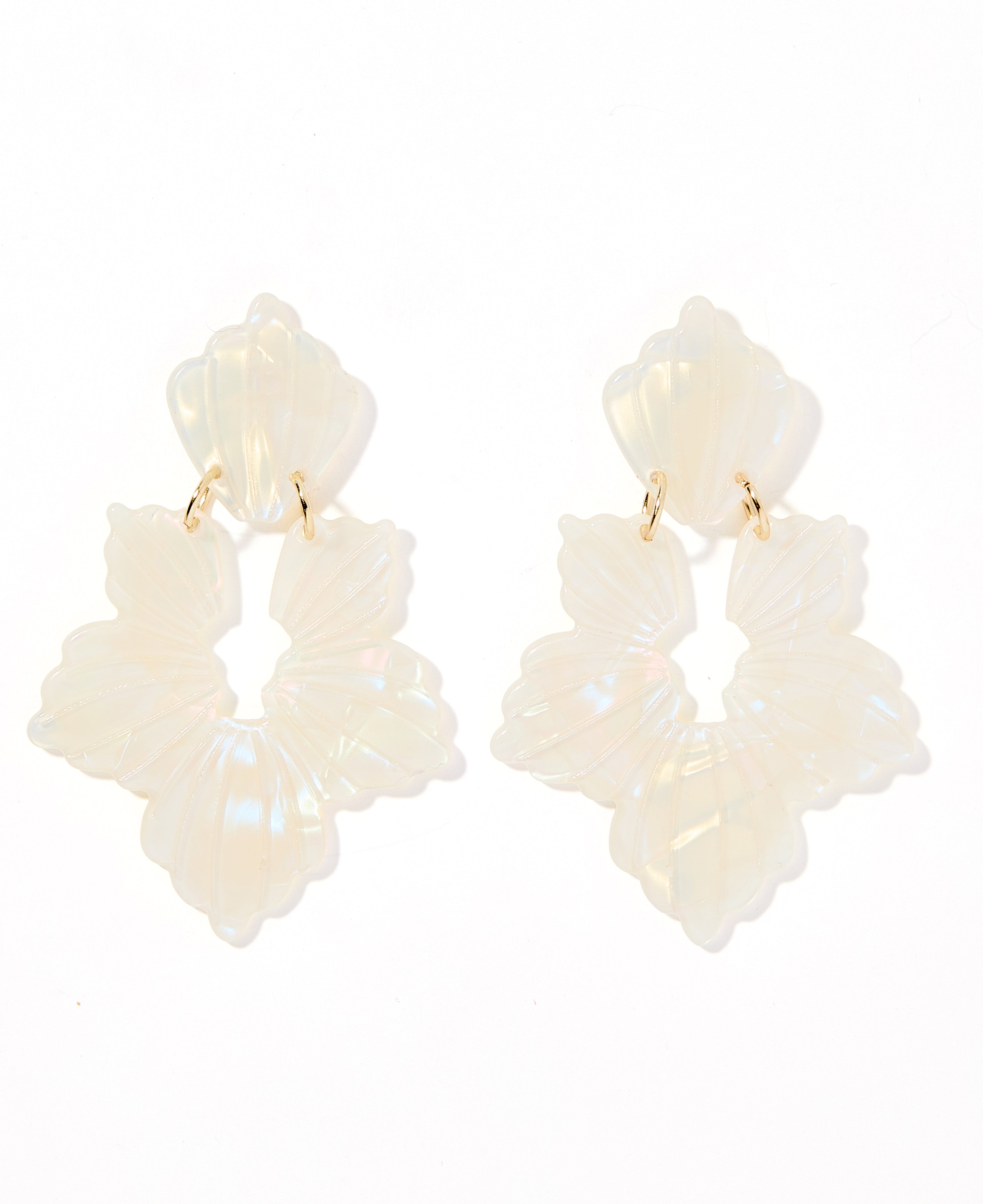 The Michelle earring is a shell inspired earring. It is 75mm long, a statement, and comes in a variety of colors.