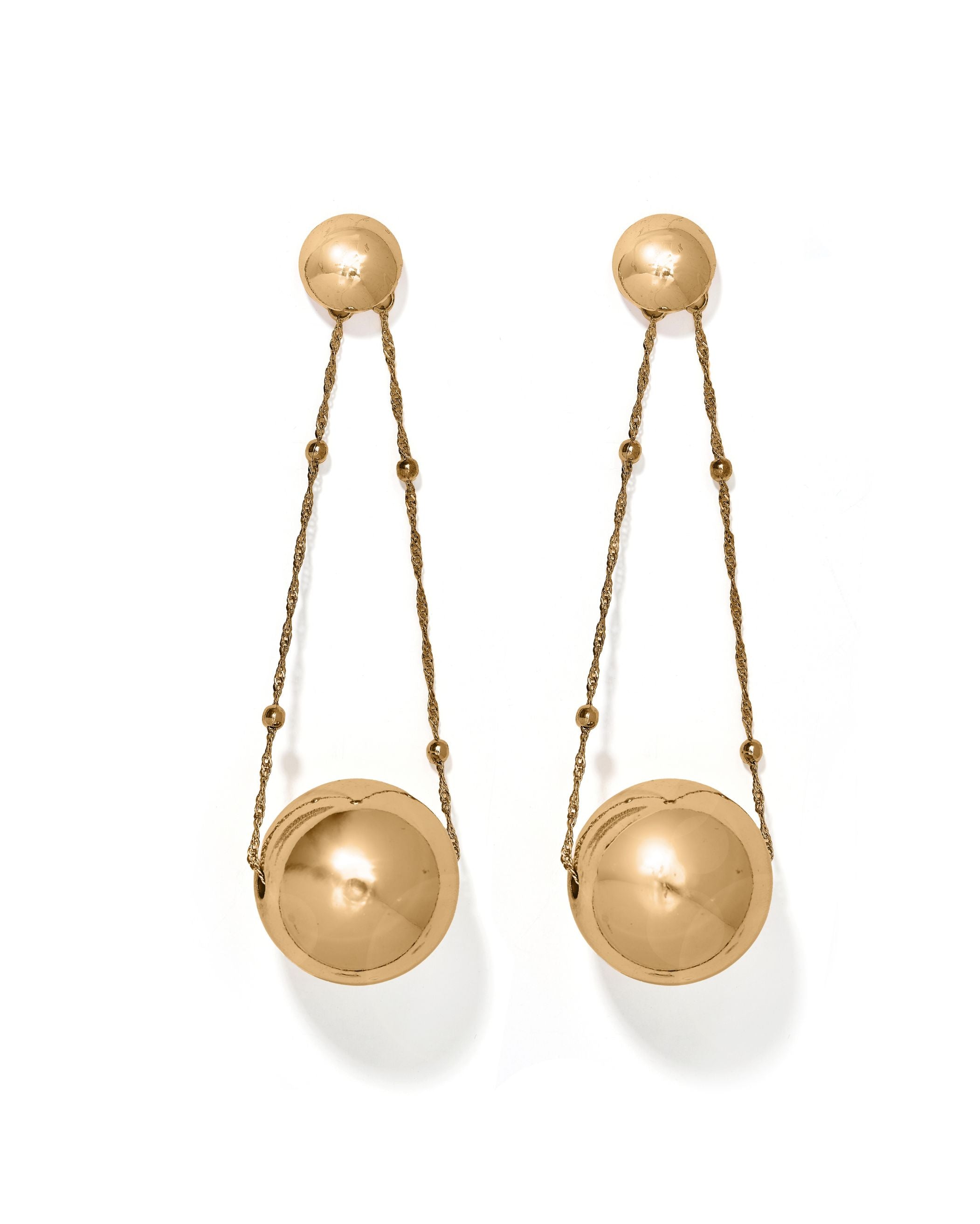 Our holiday collection is sure to make a statement. Gold Ball hanging from an earring post.