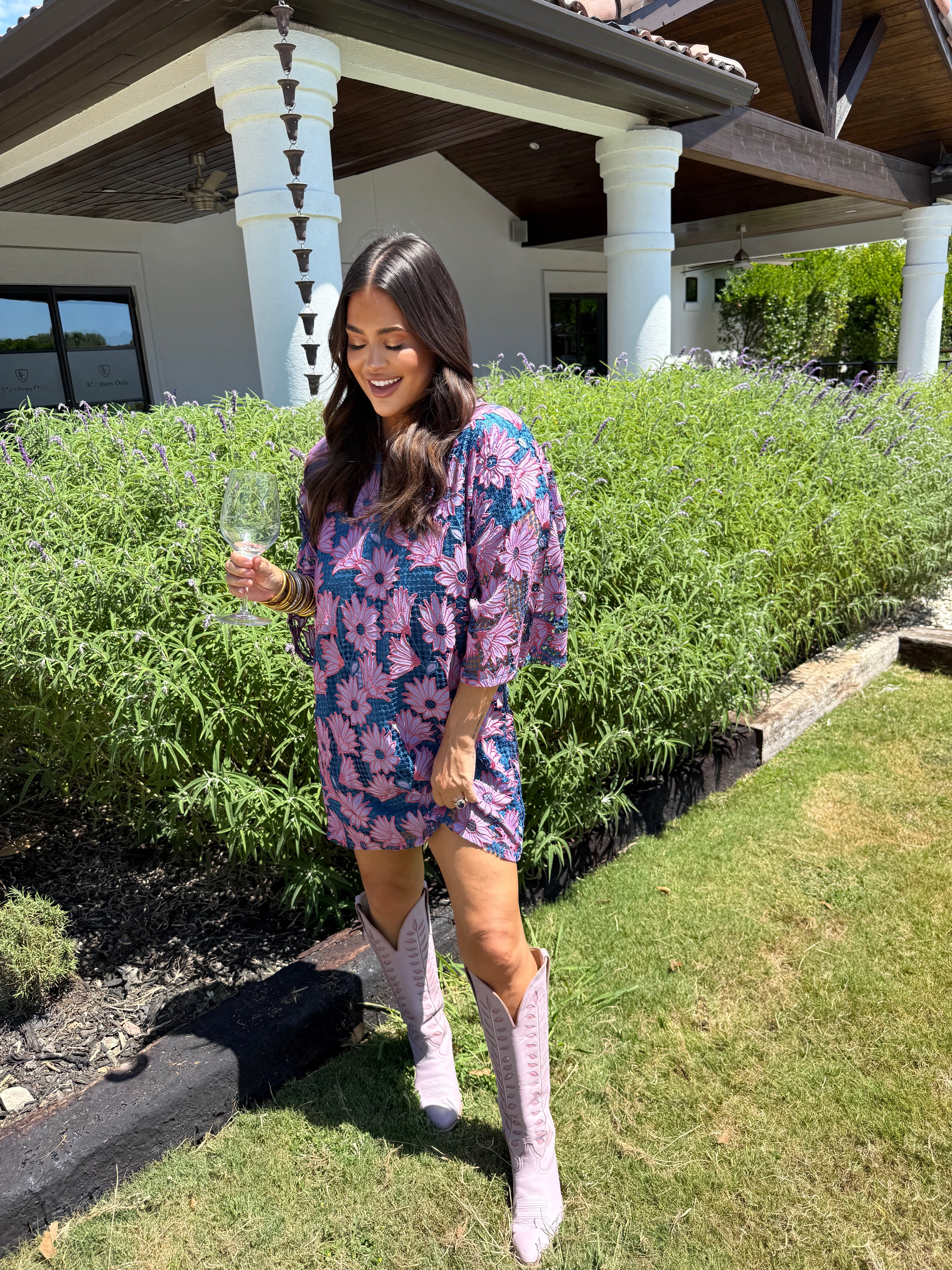 Get ready to turn heads with the Madison Aztec dress from BuddyLove’s New Arrivals collection. This mini dress stuns in a vibrant pink floral pattern cleverly dubbed “Aztec,” blending playful modern flair with a hint of boho spirit.