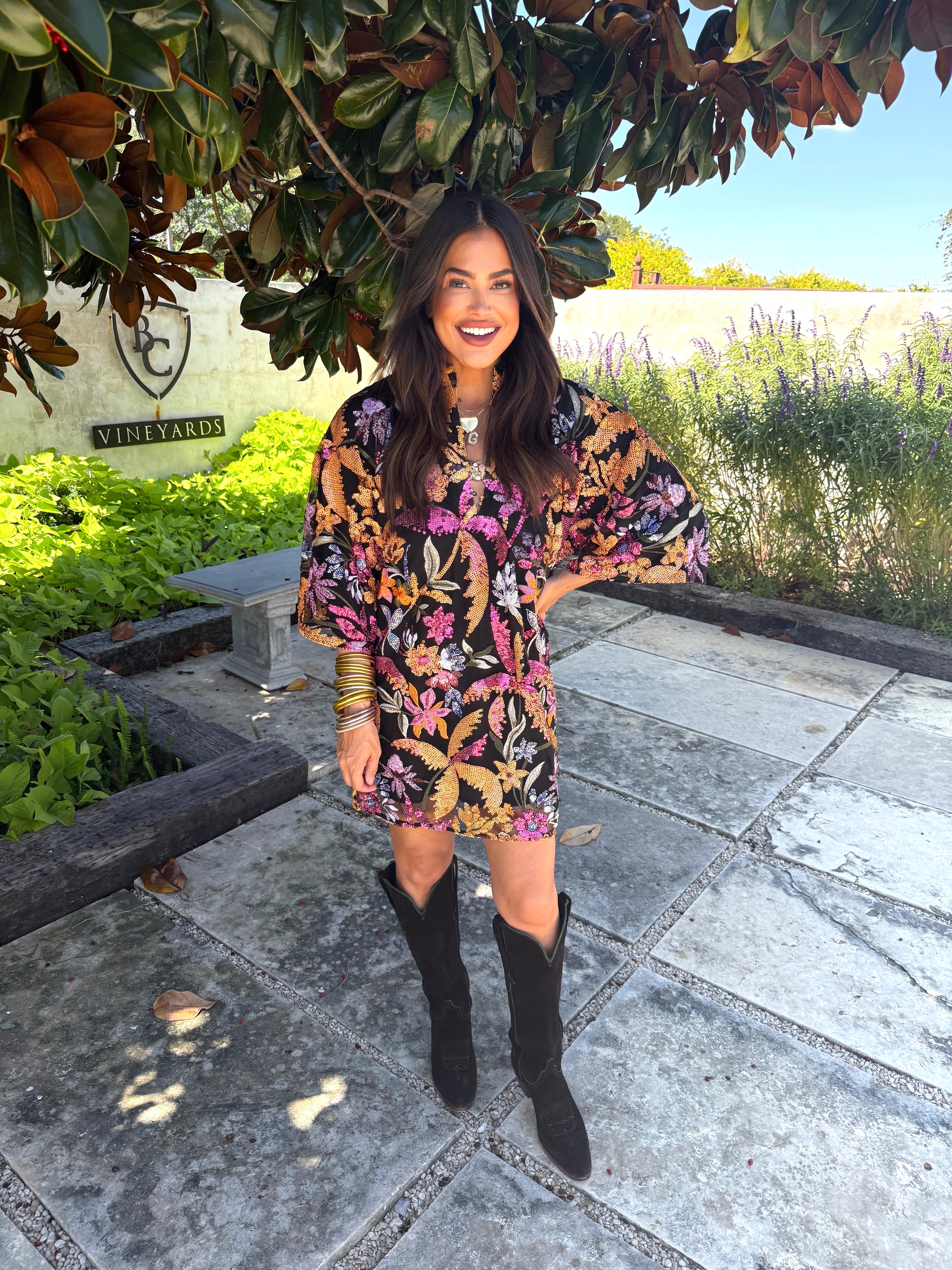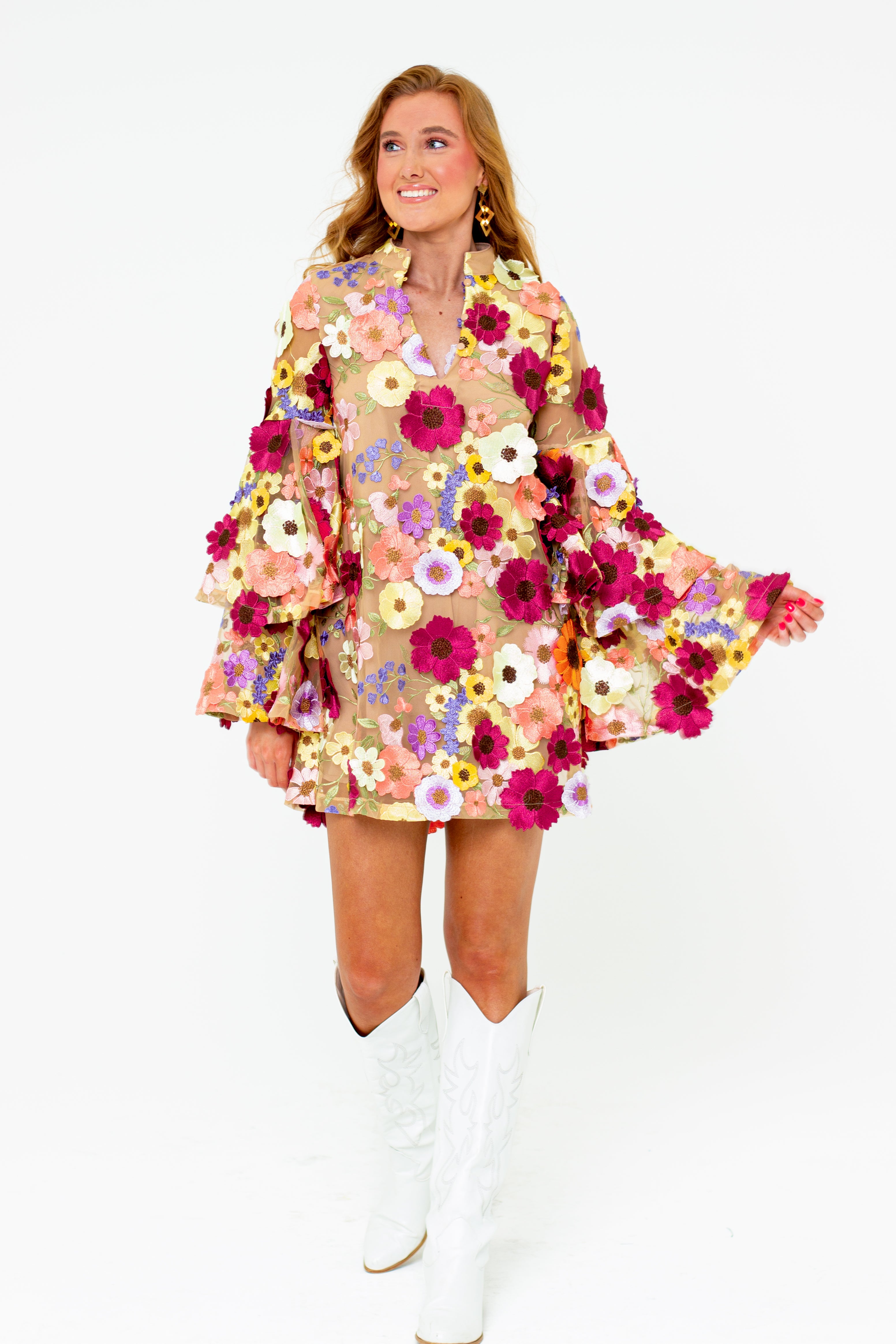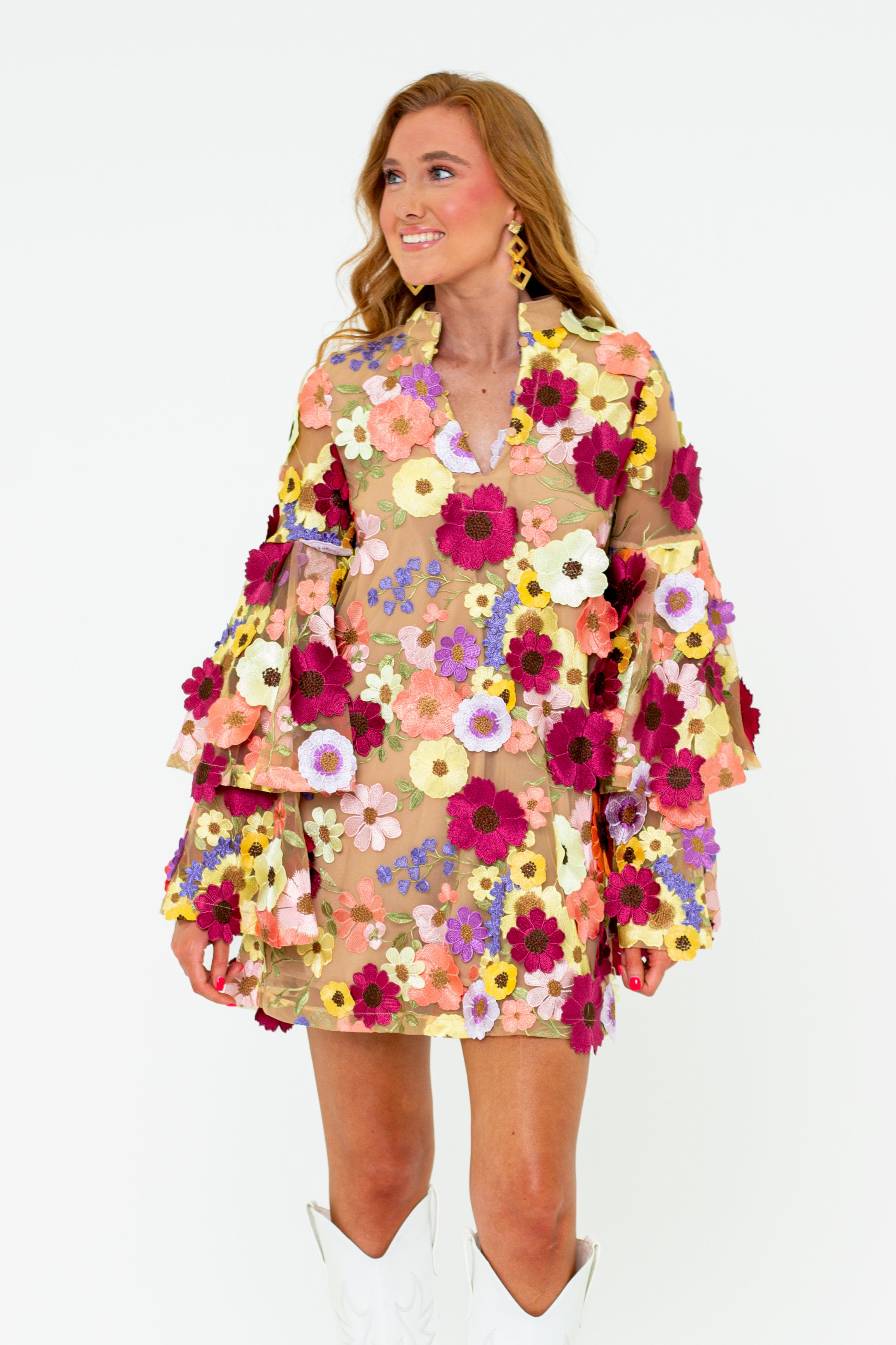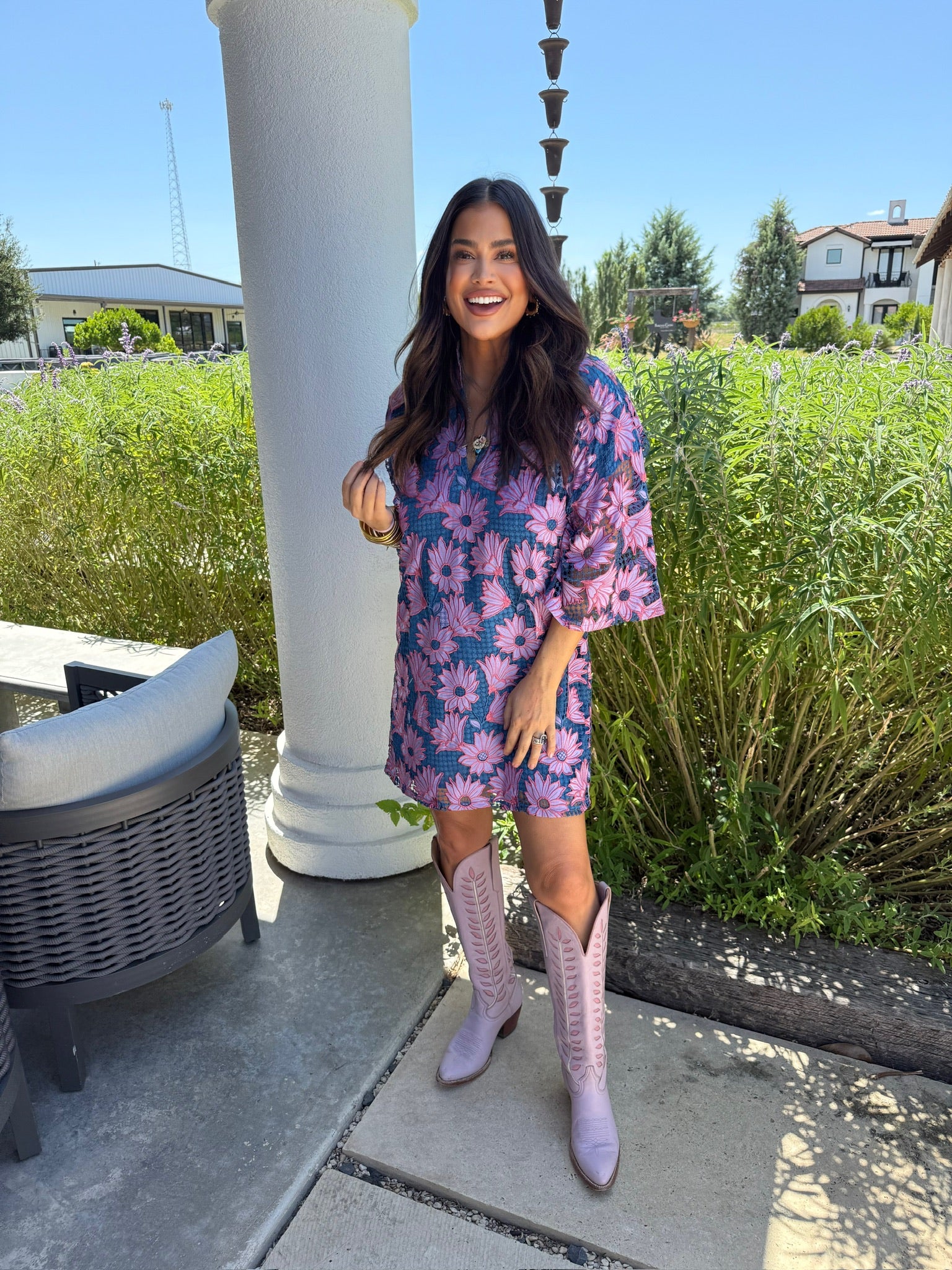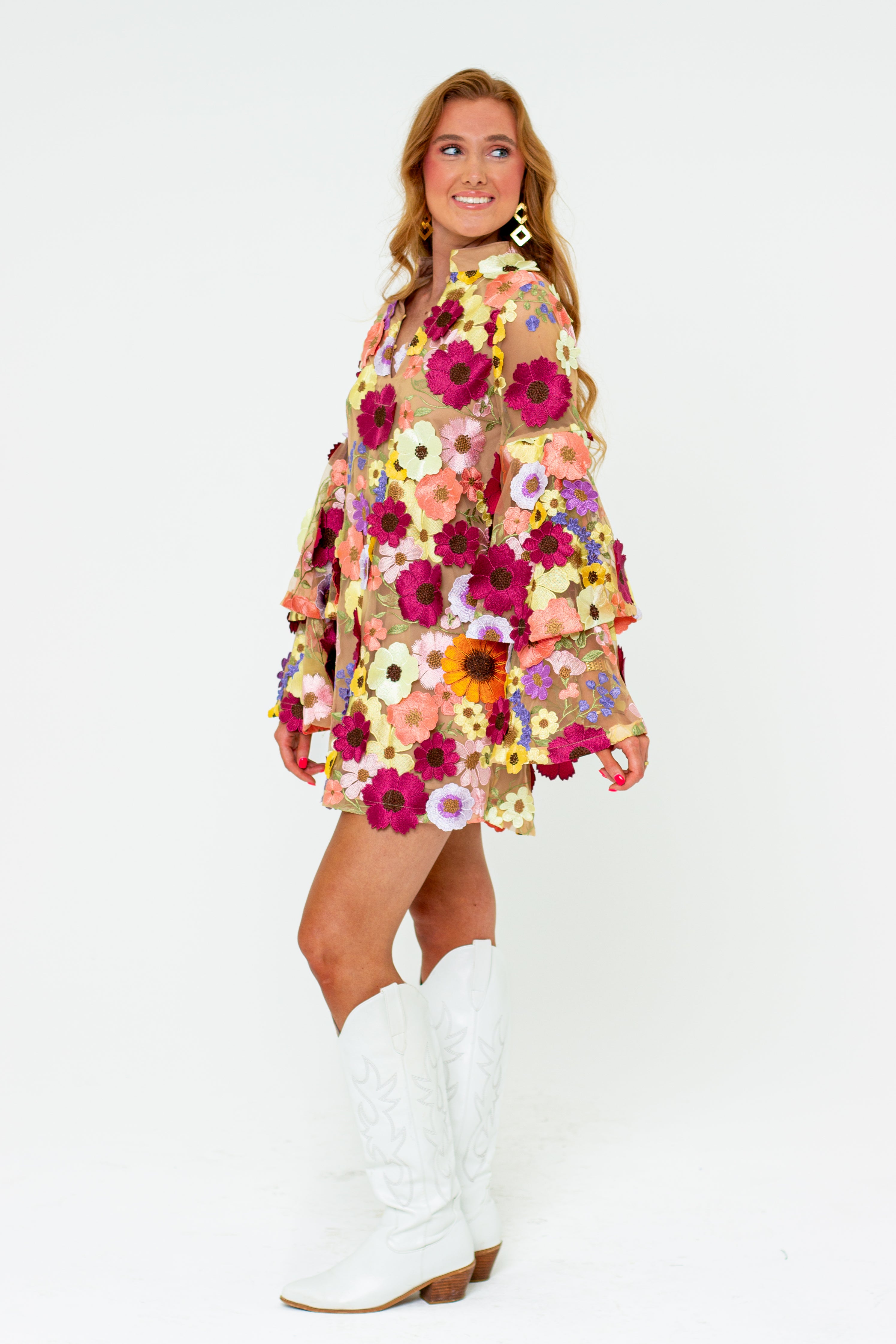 Gayle Long Sleeve Mini Dress - Gerber Daisy