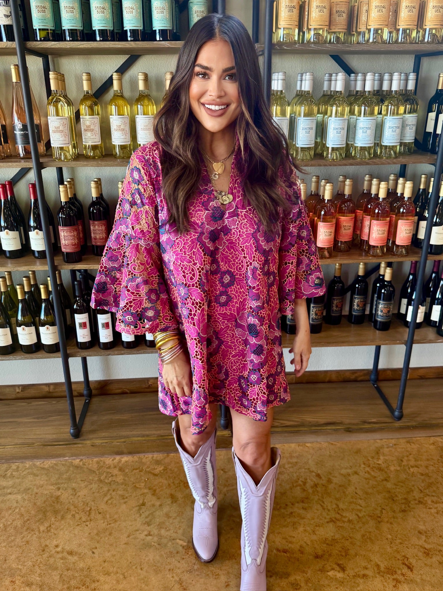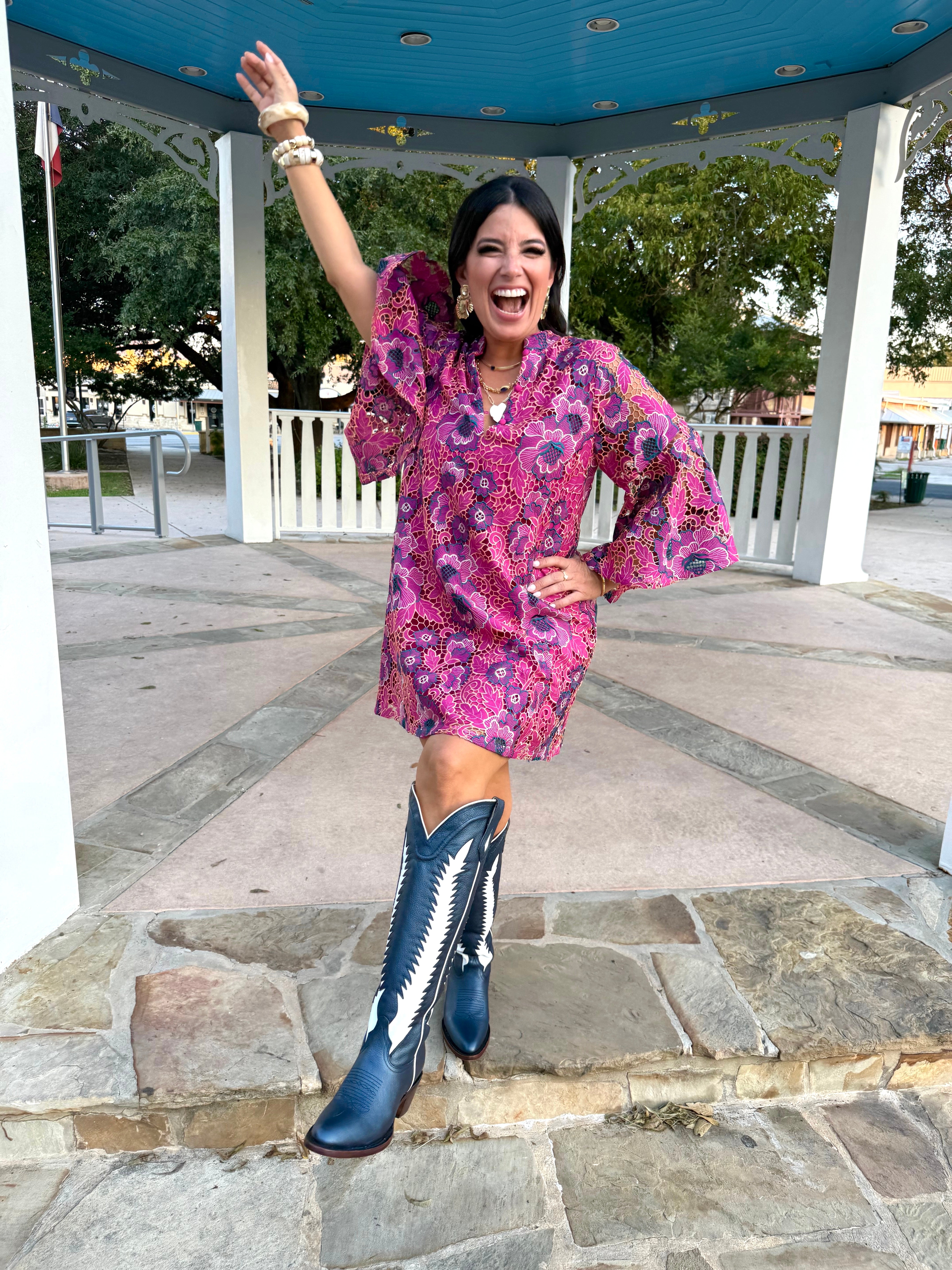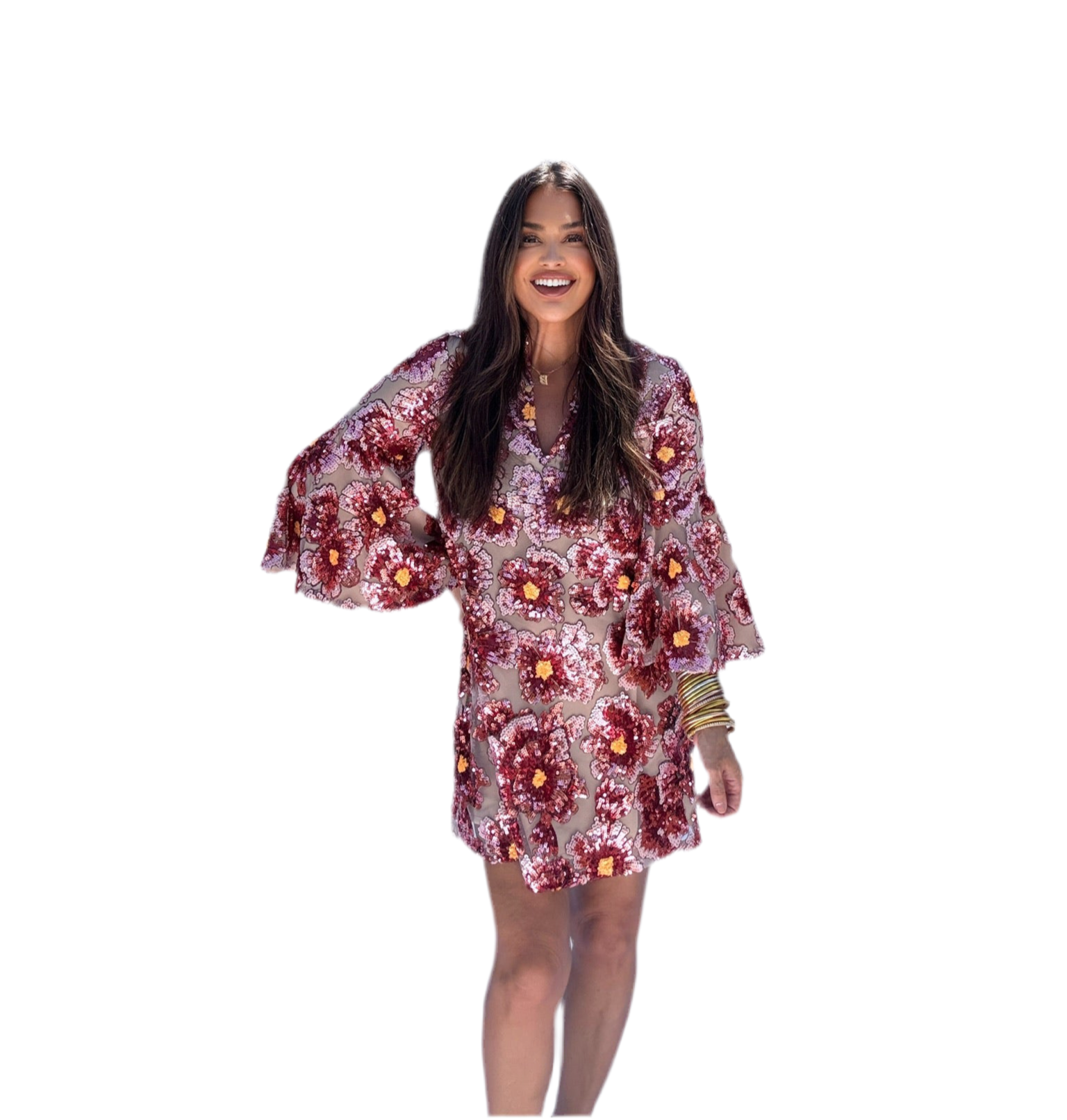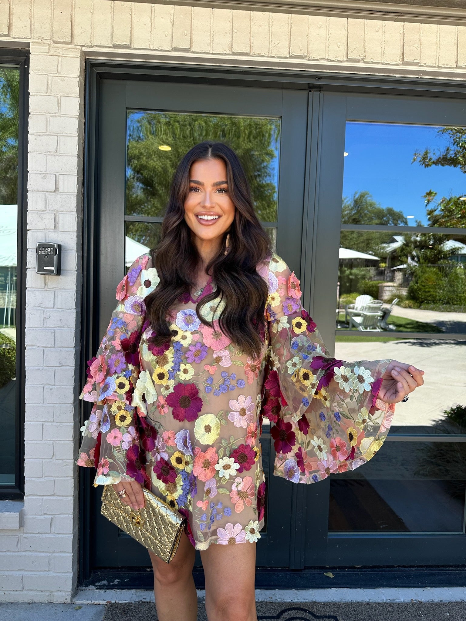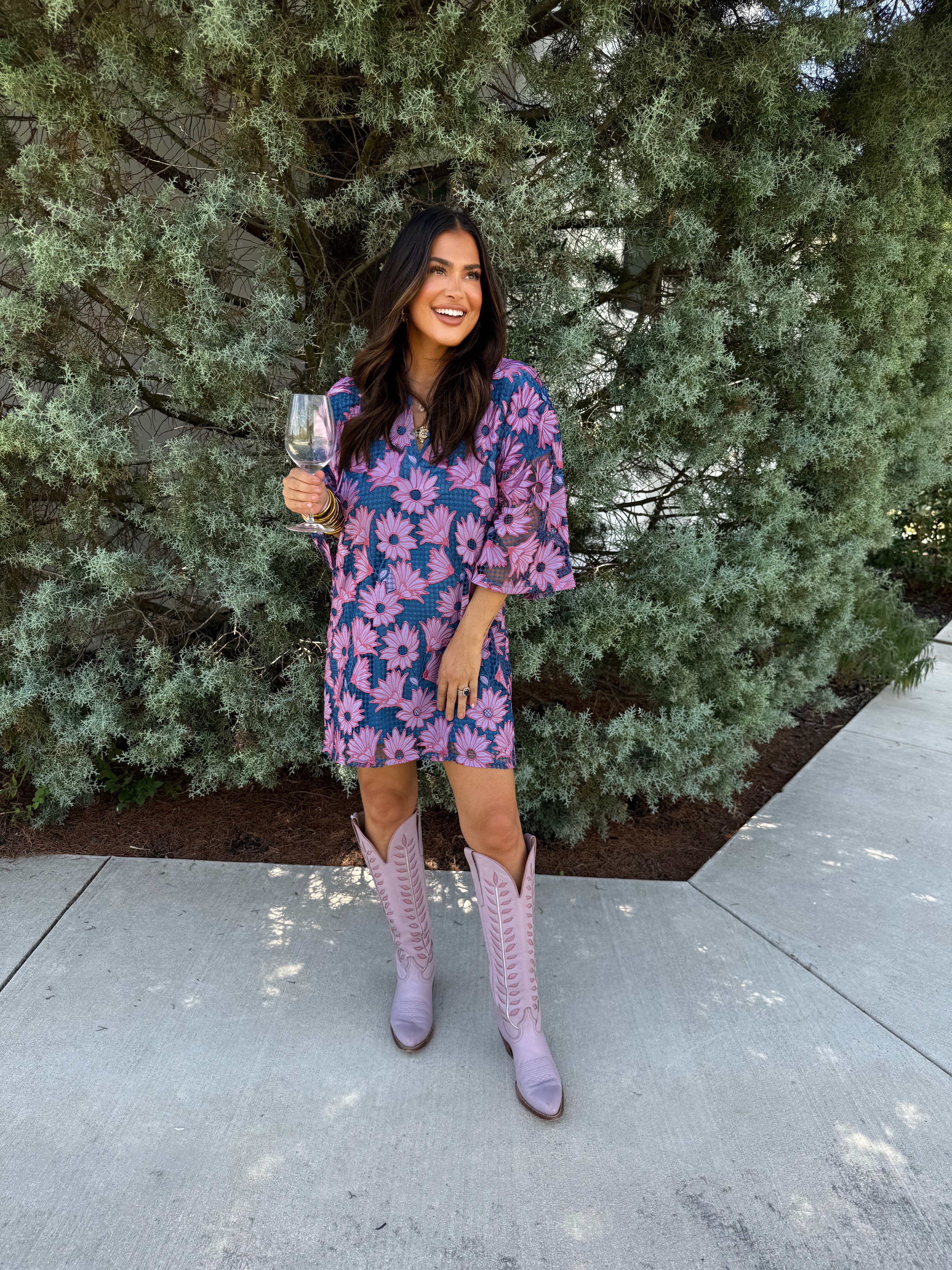 Gayle Long Sleeve Mini Dress - Gerber Daisy