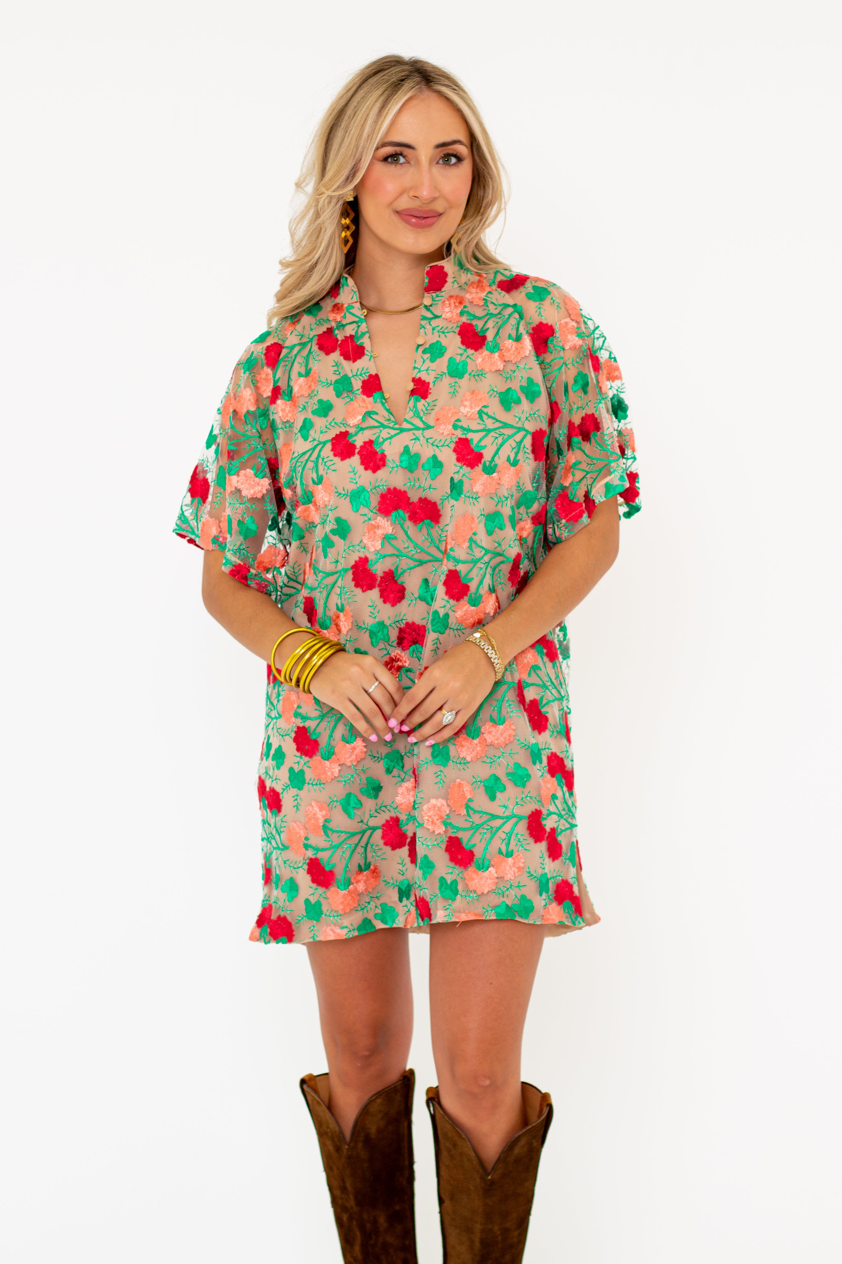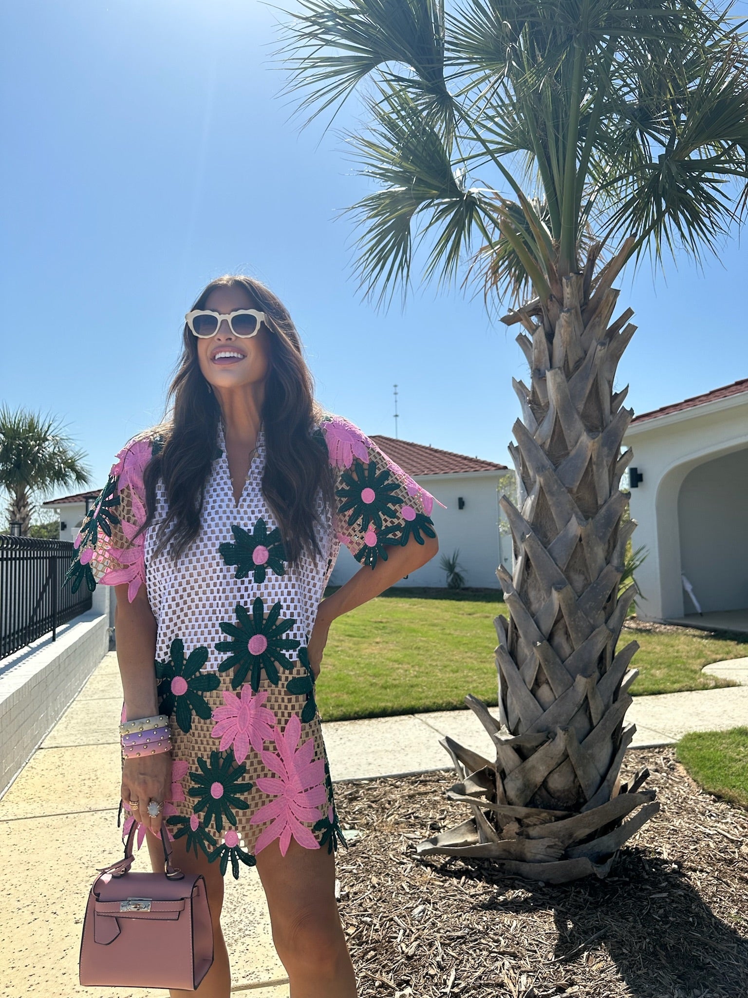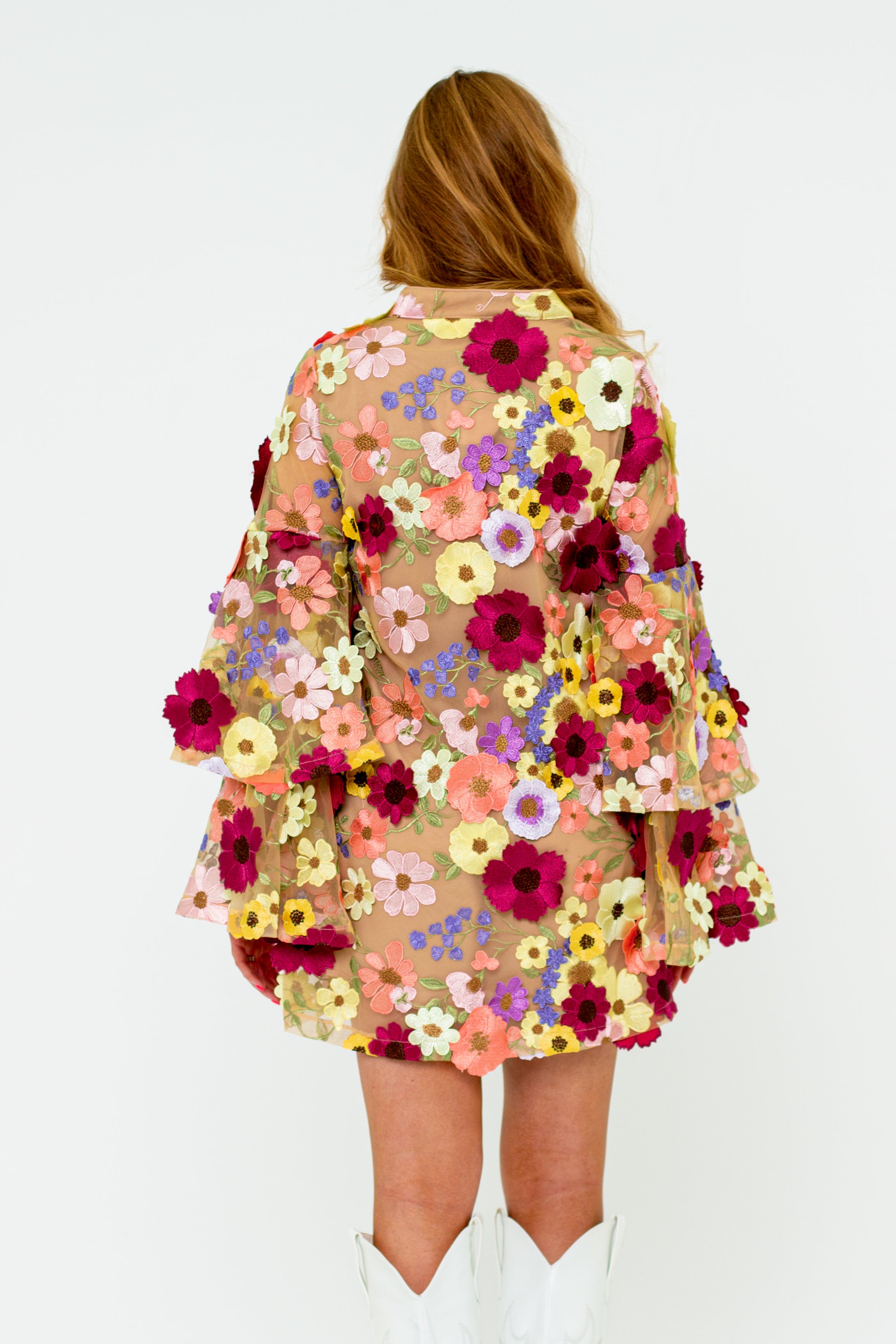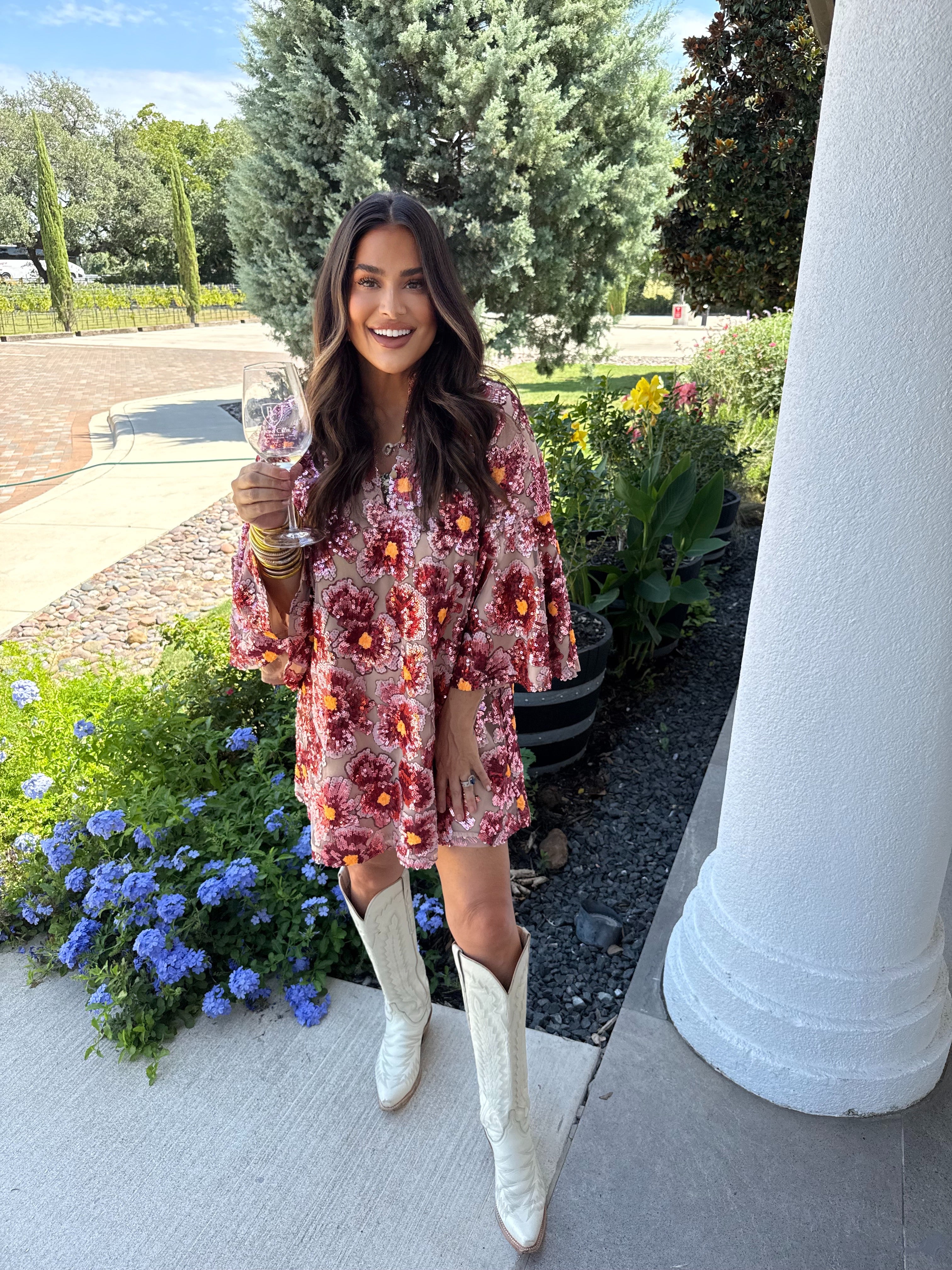 Gayle Long Sleeve Mini Dress - Gerber Daisy