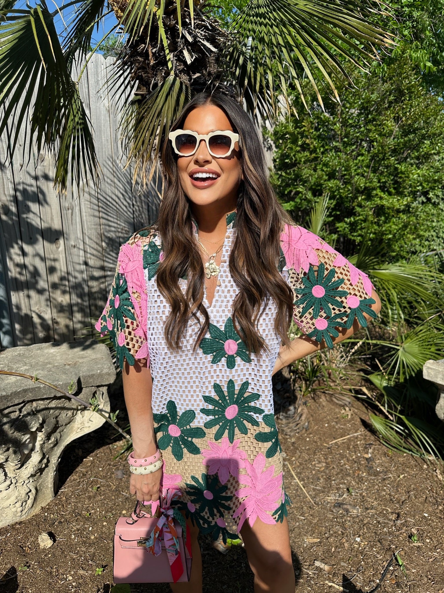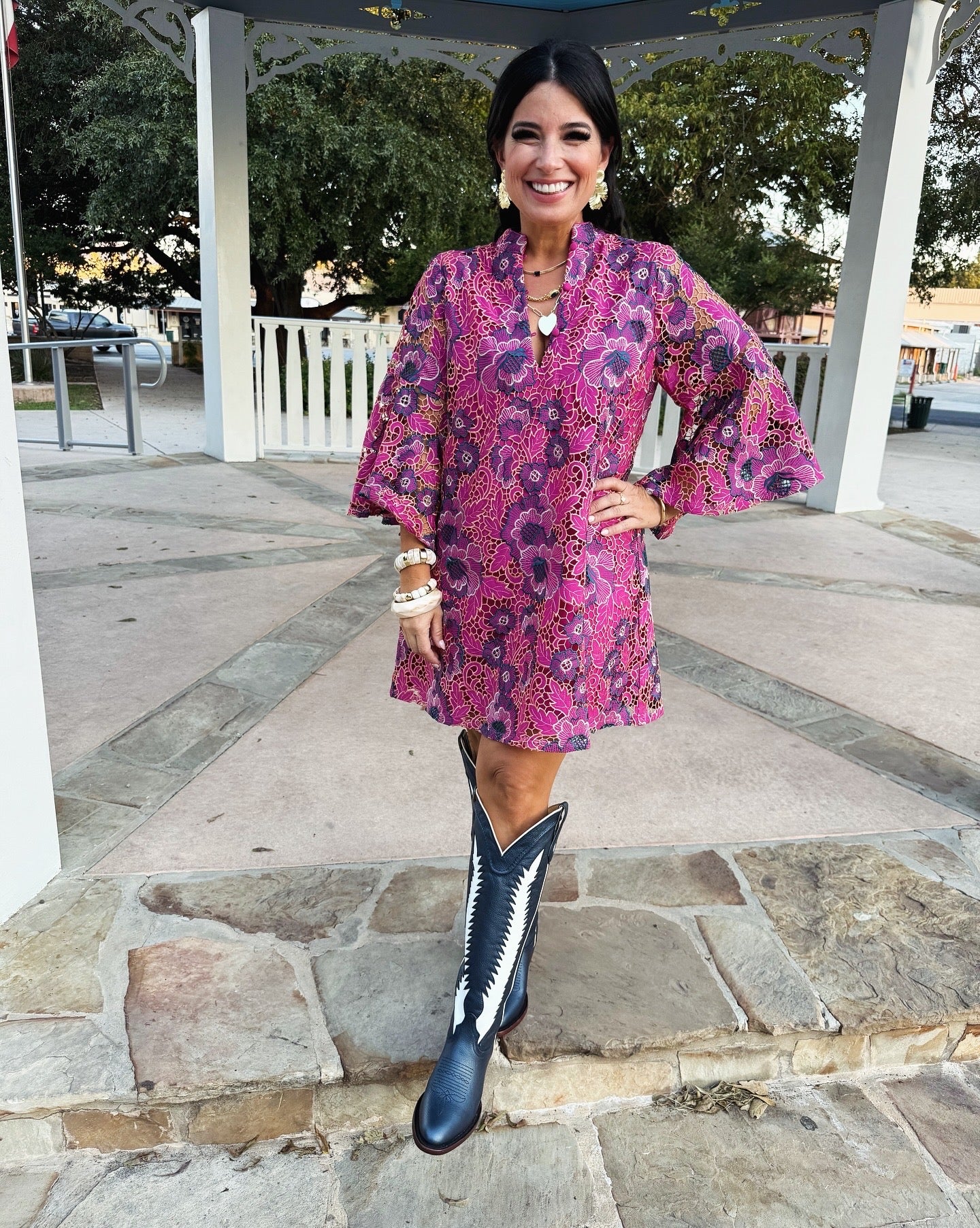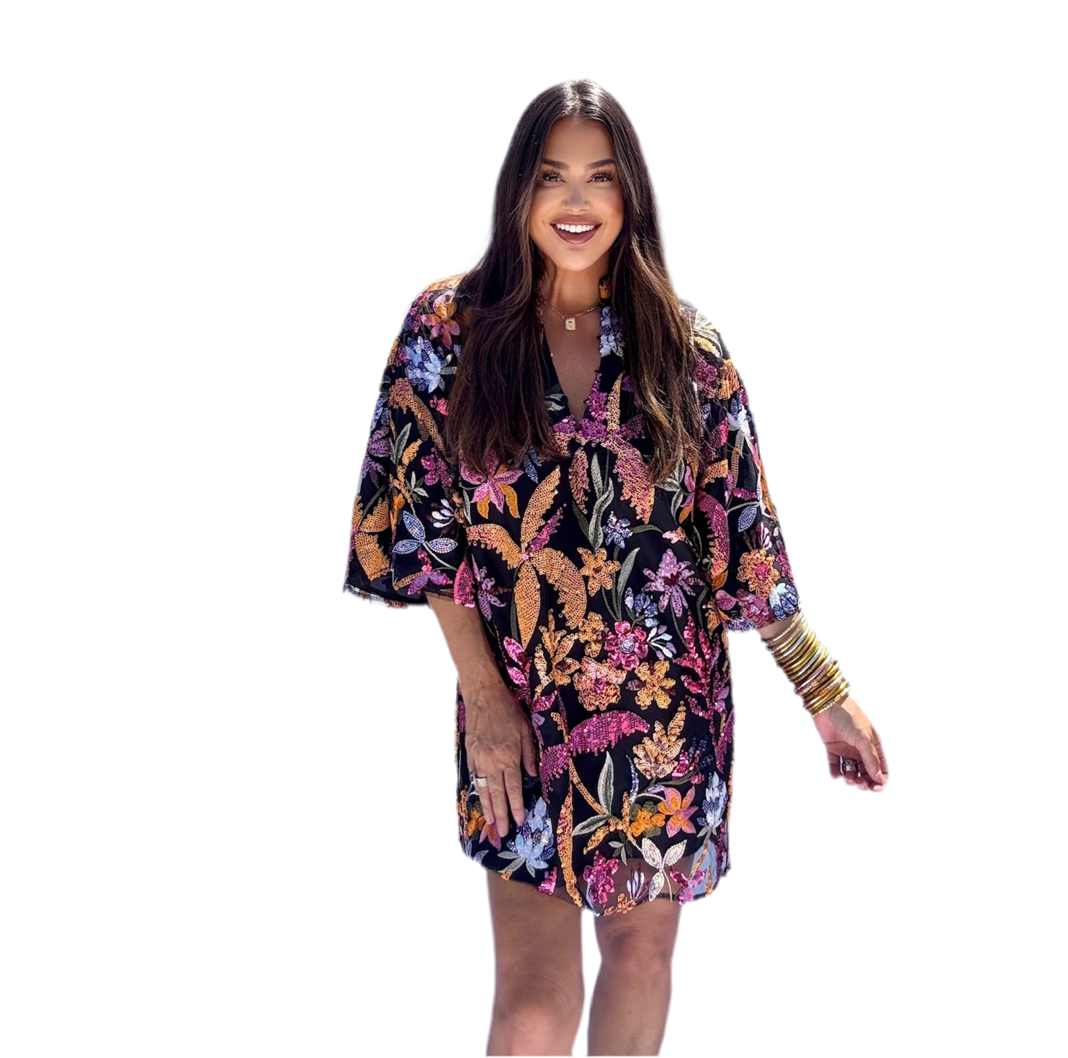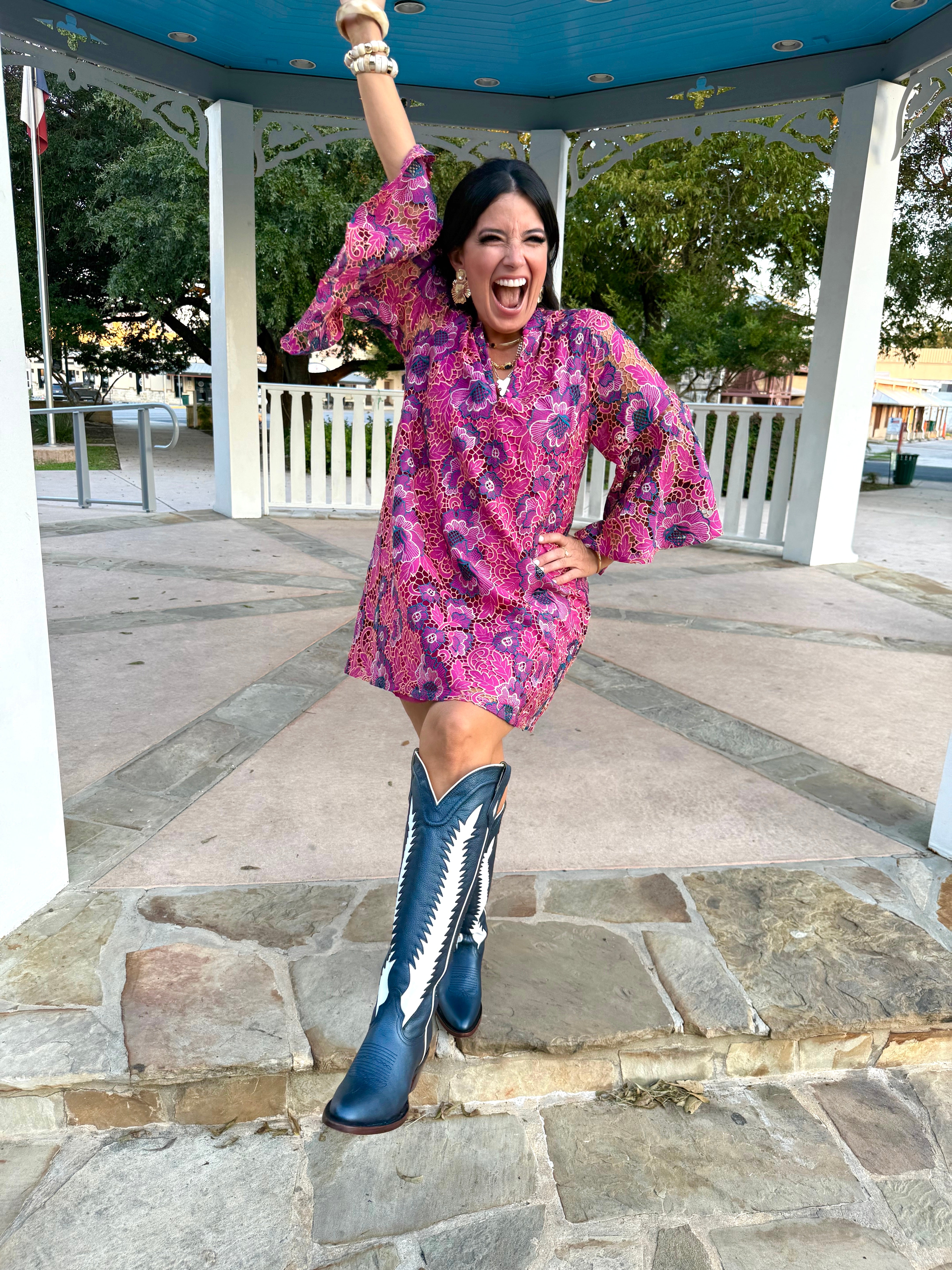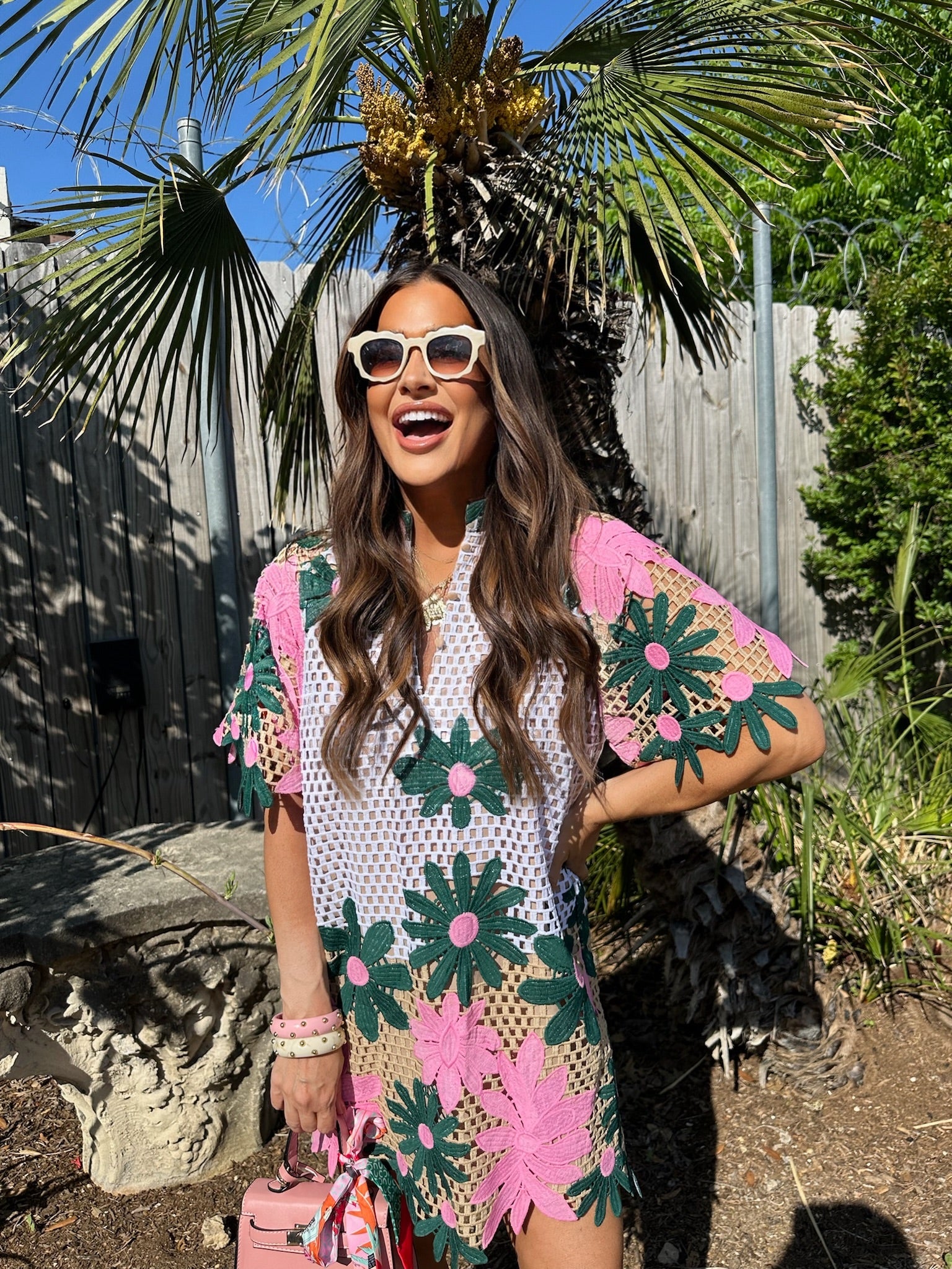 Gayle Long Sleeve Mini Dress - Gerber Daisy