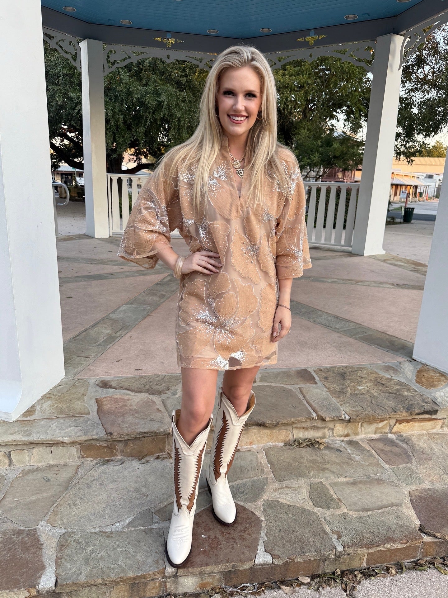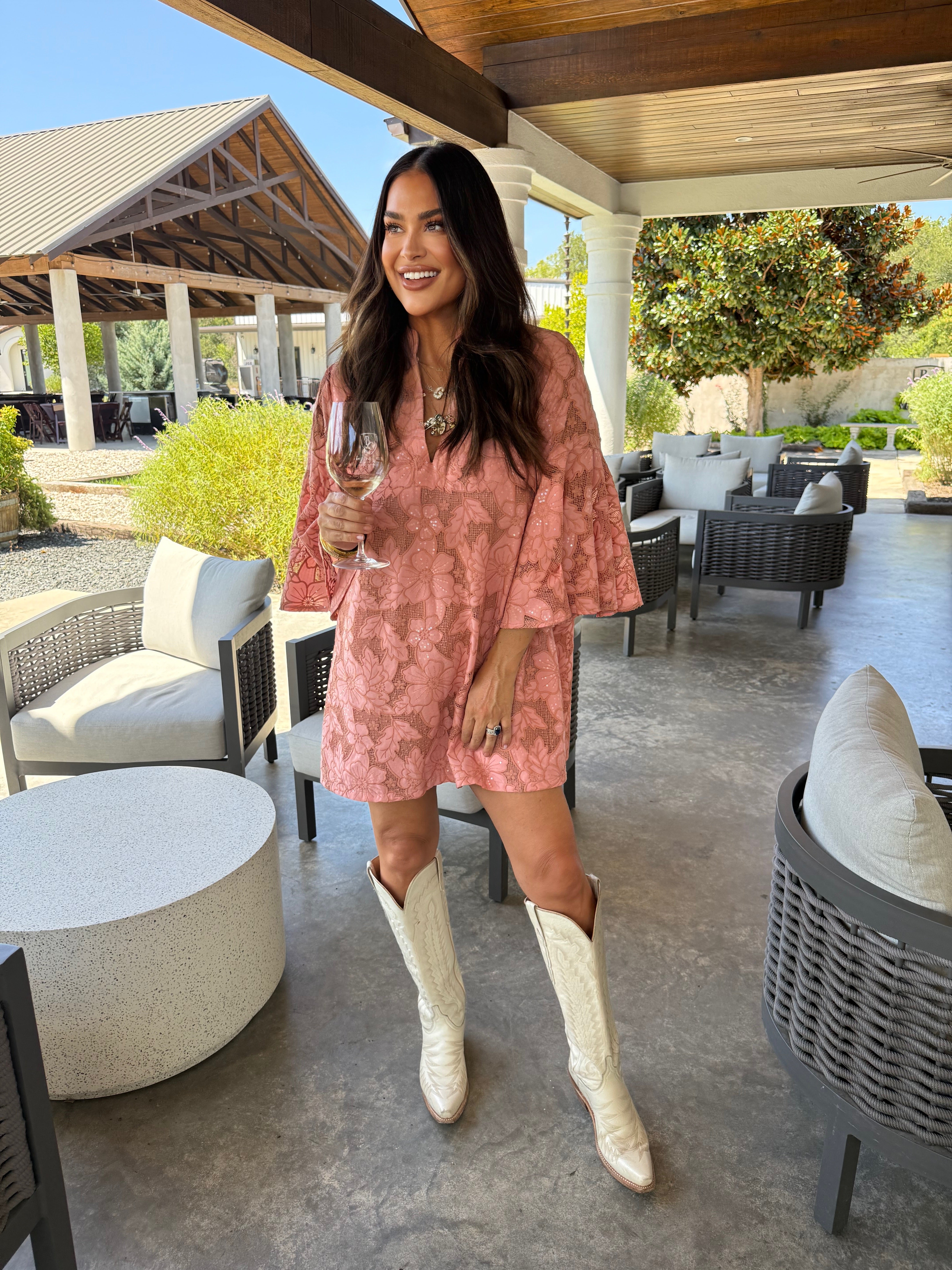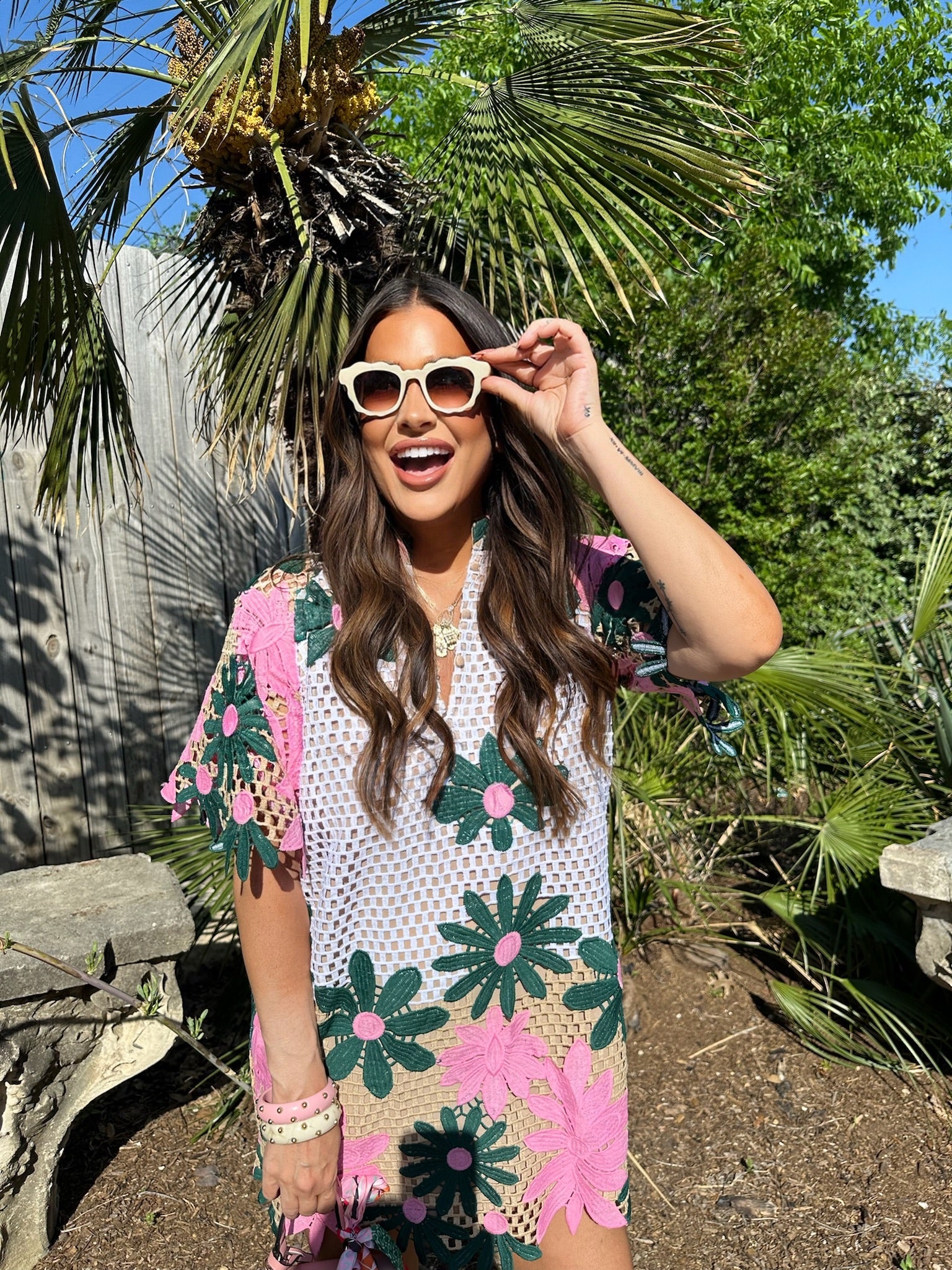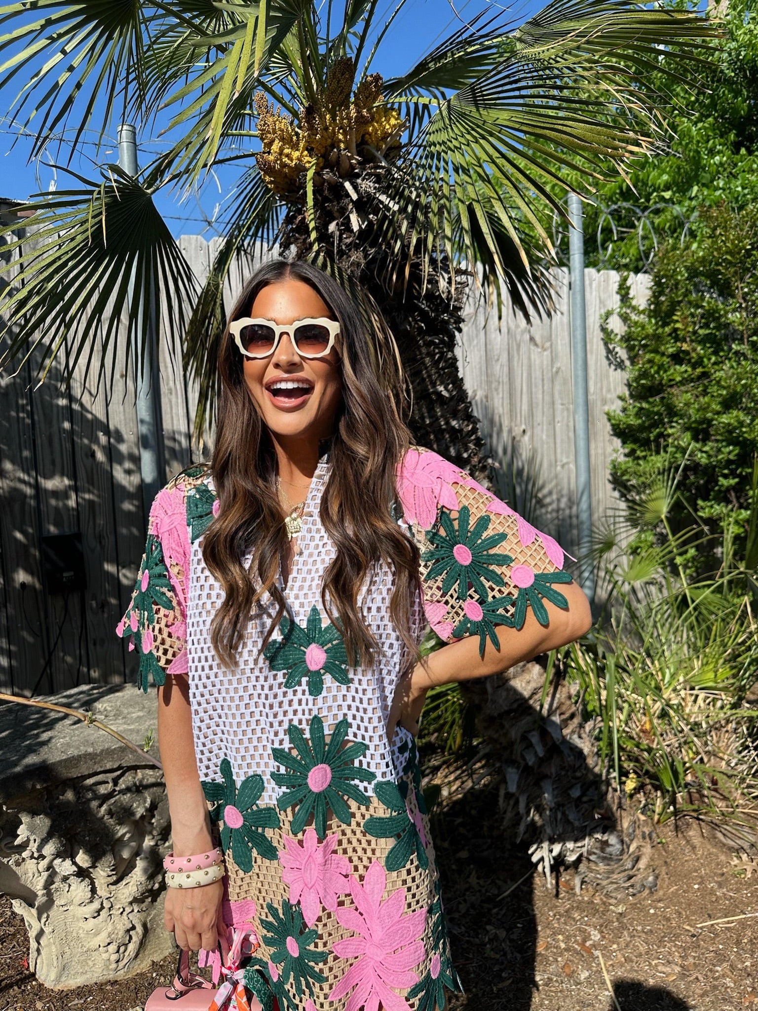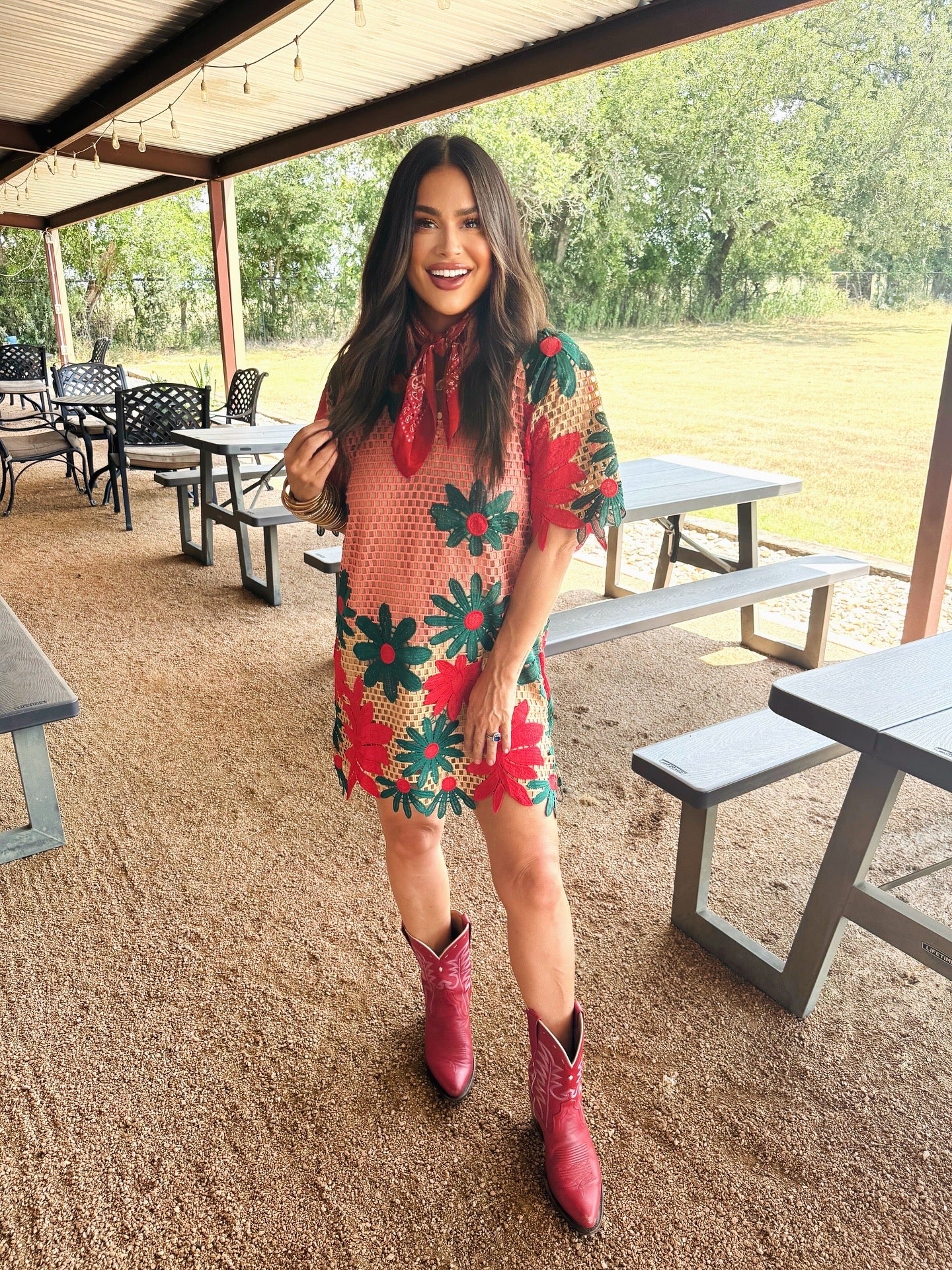 Gayle Long Sleeve Mini Dress - Gerber Daisy