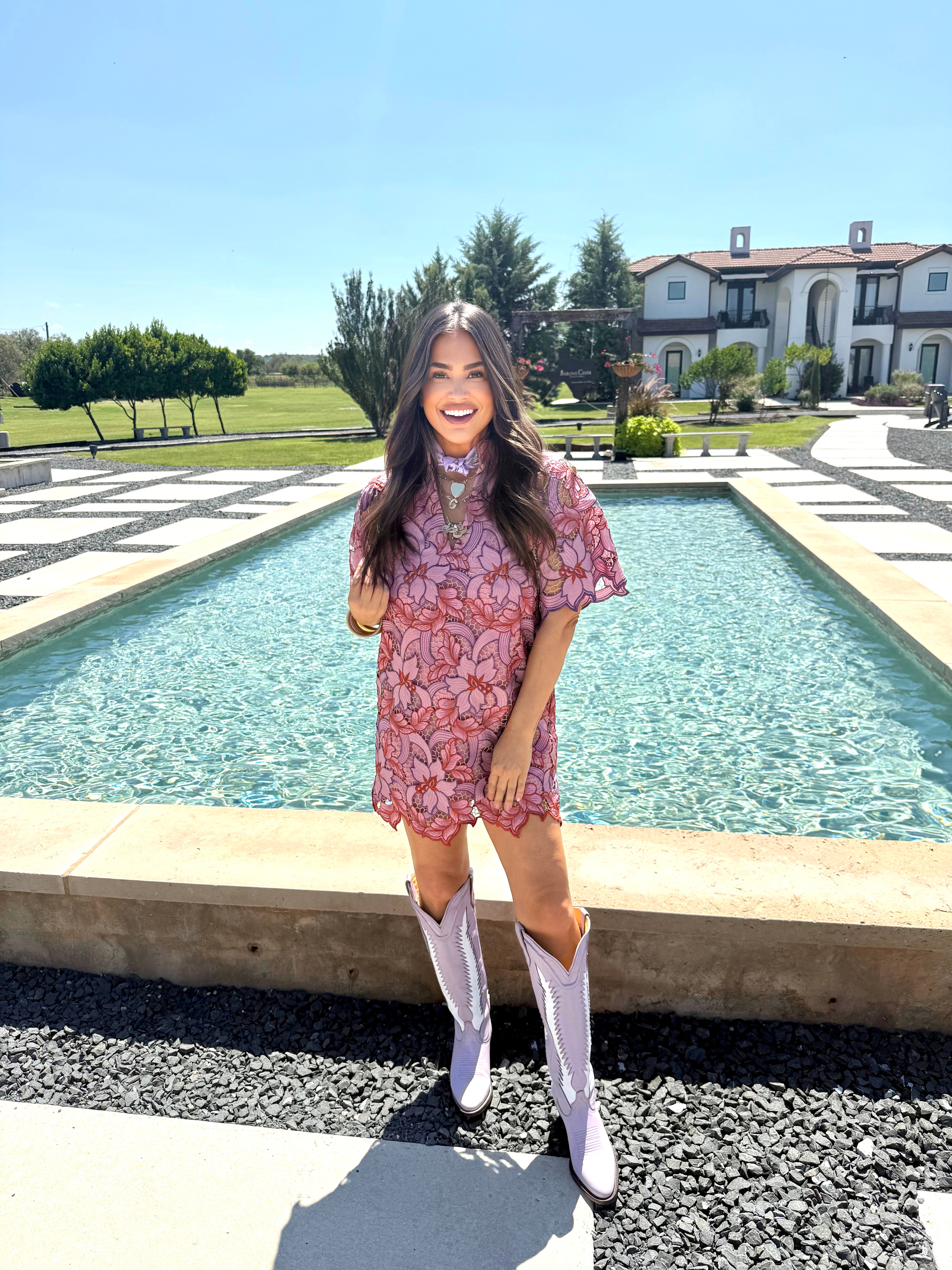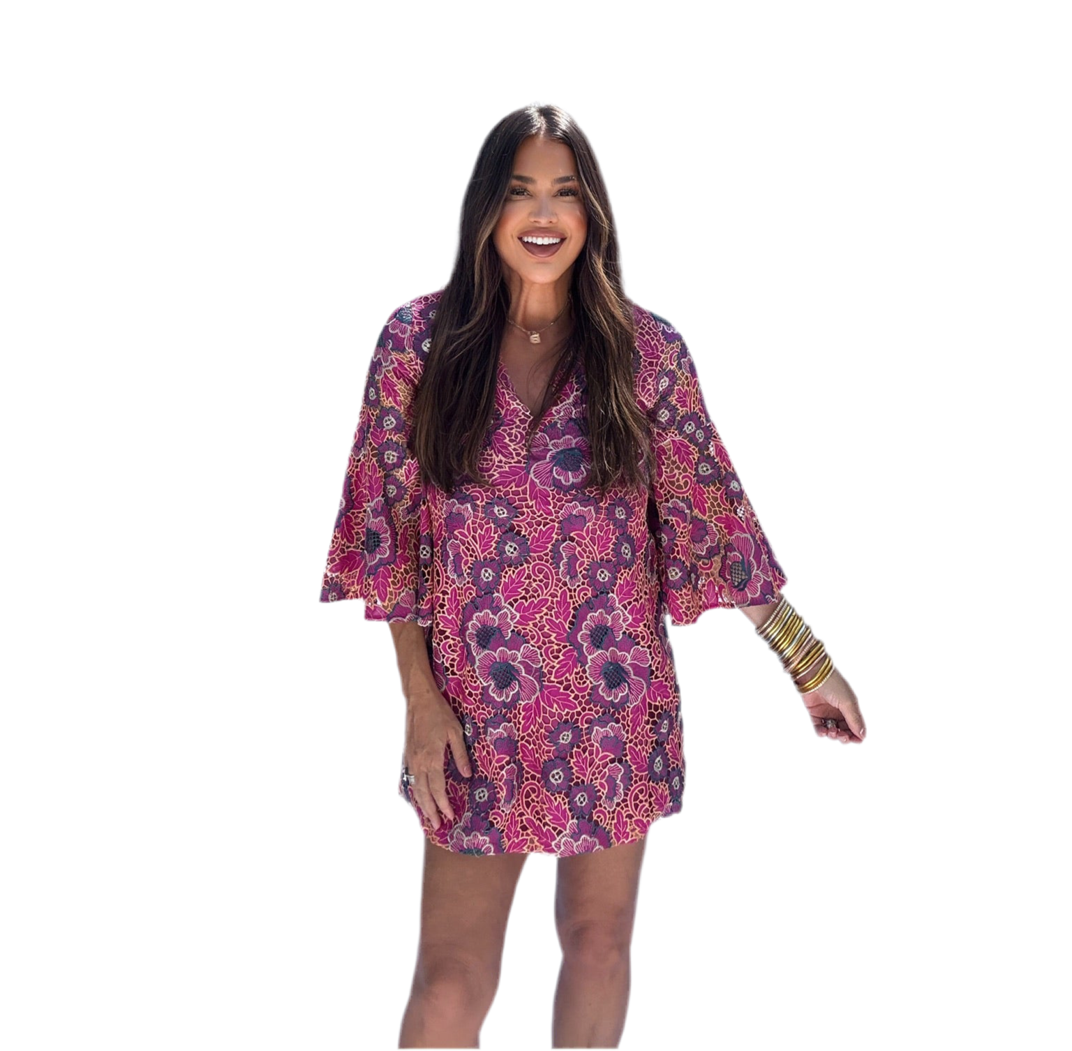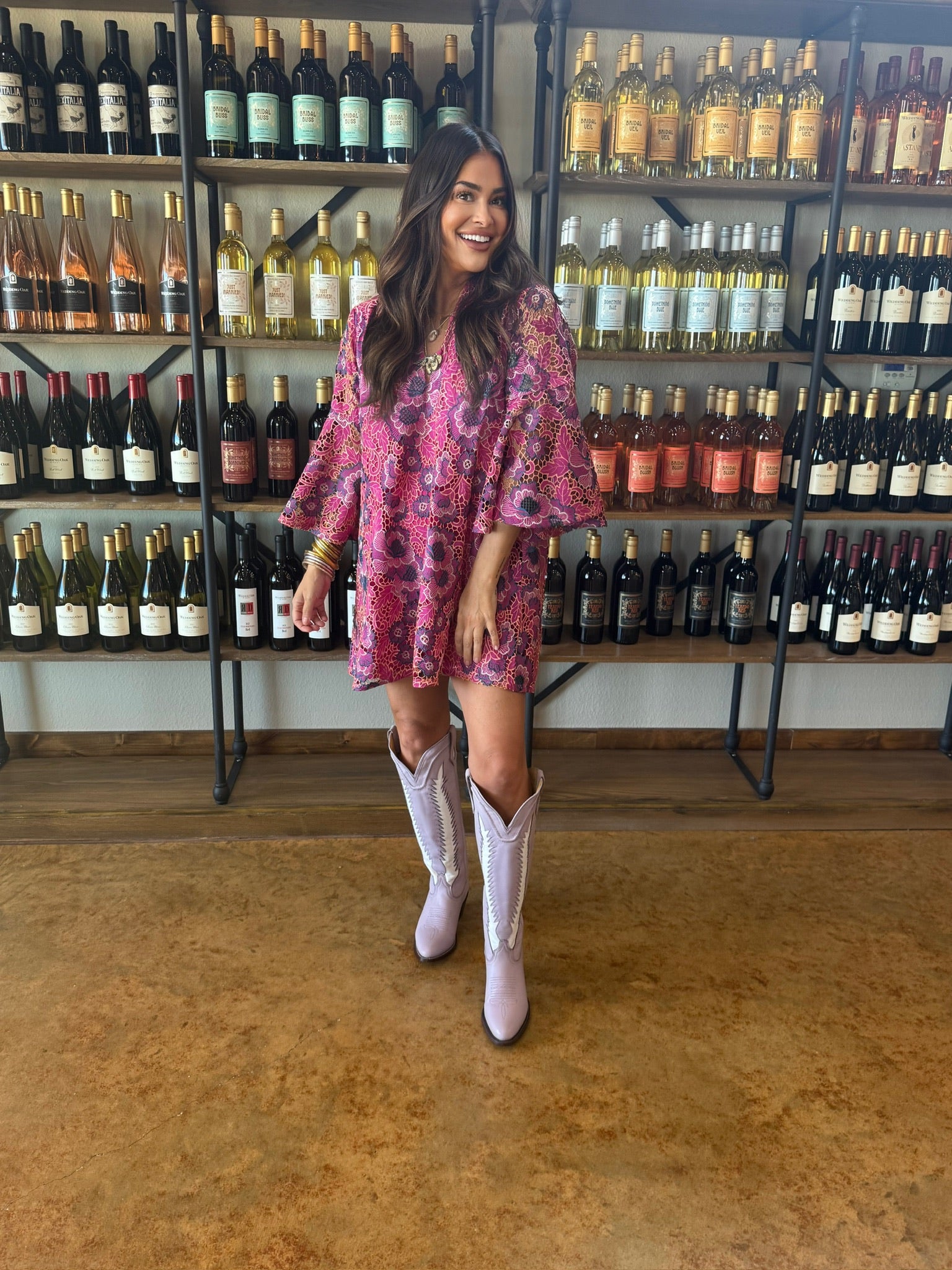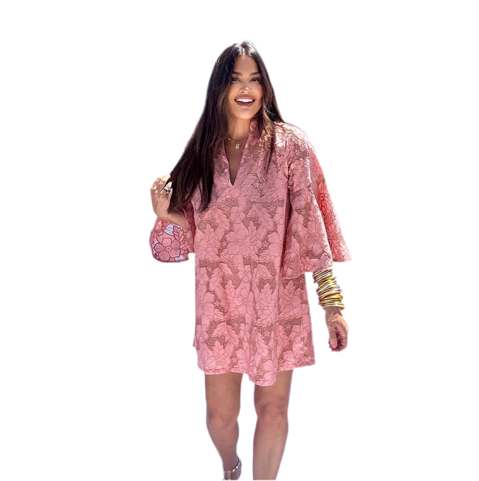 Lulu Short Sleeve Mini Caftan - Pink Lady