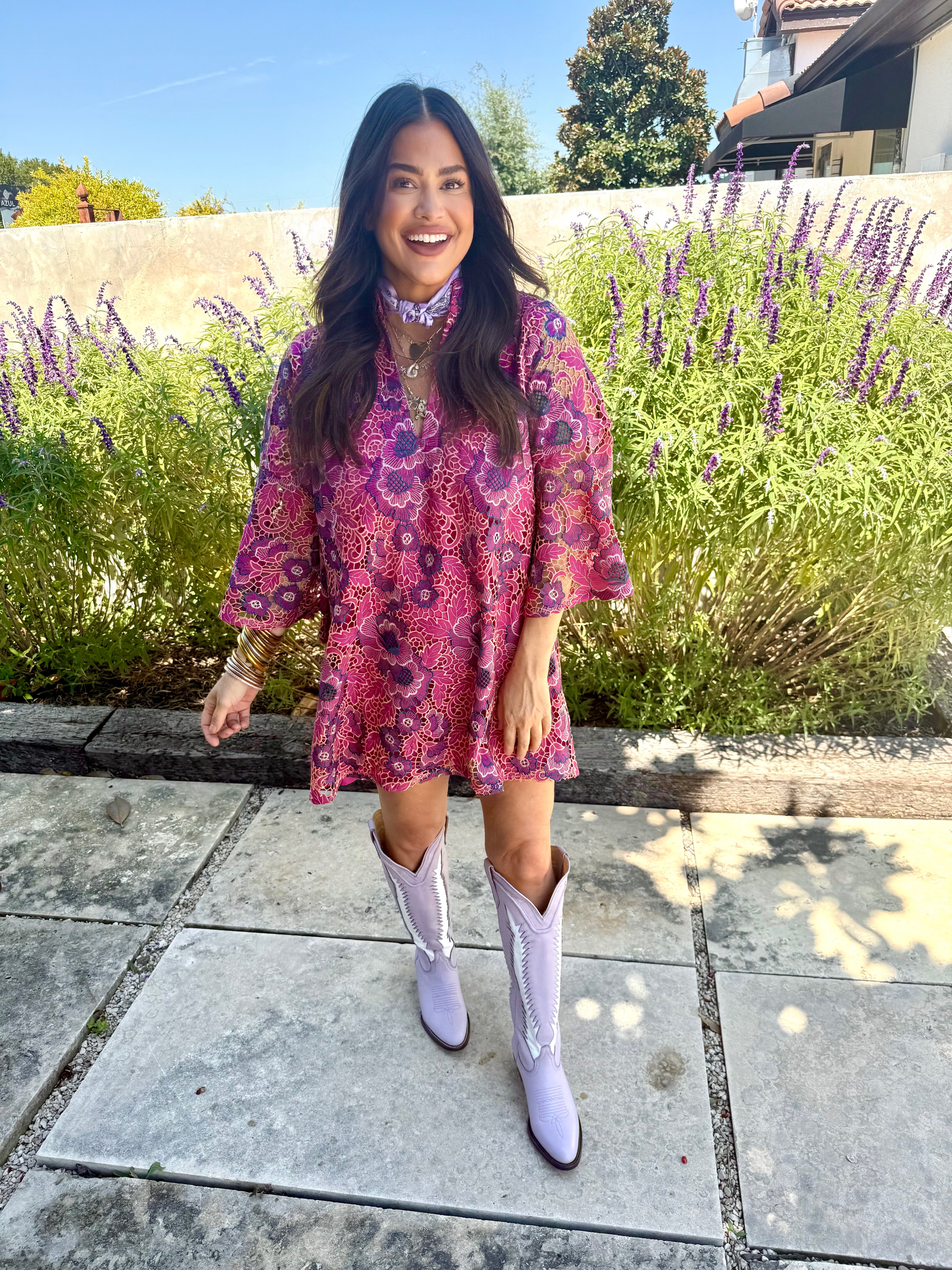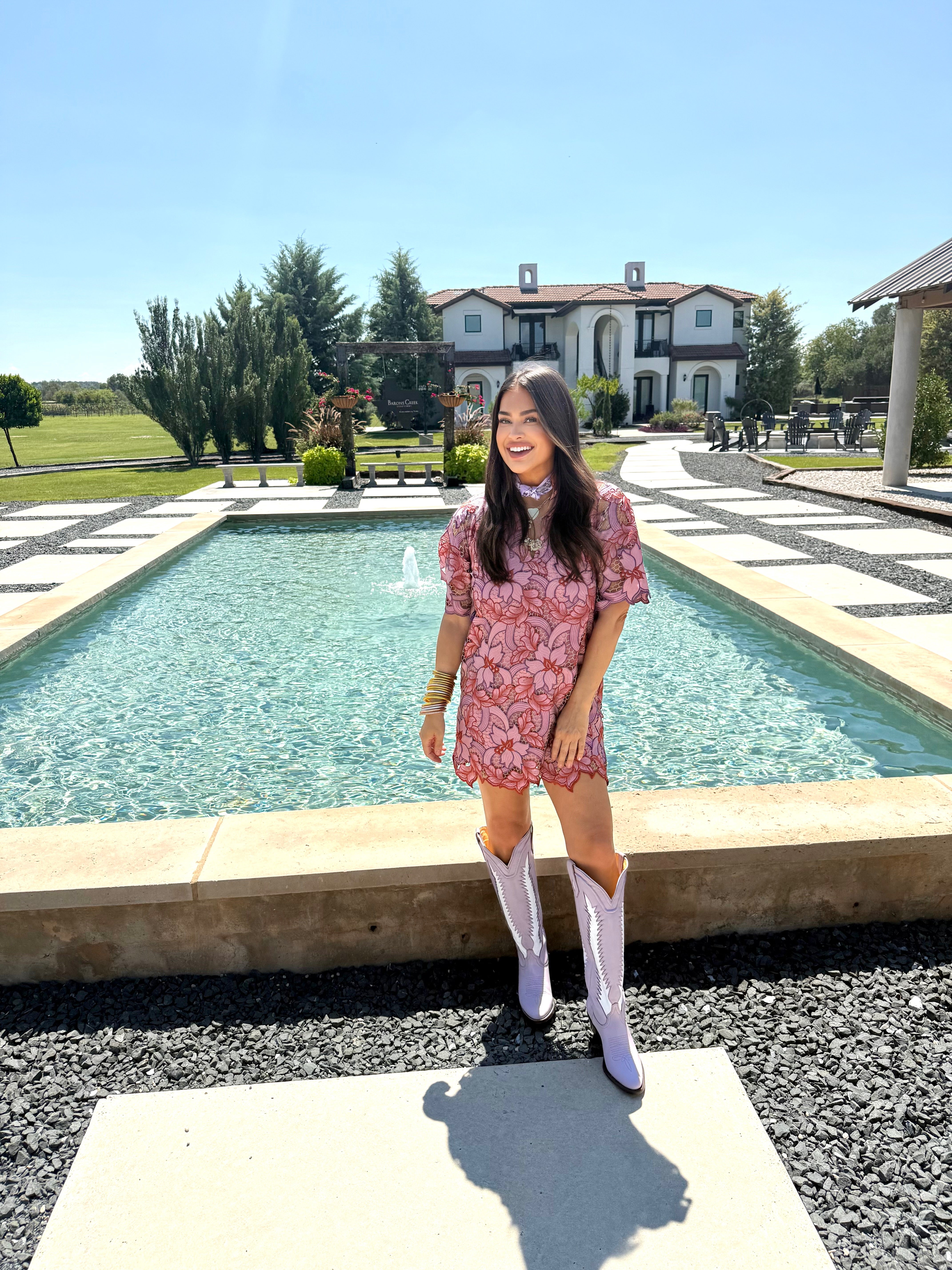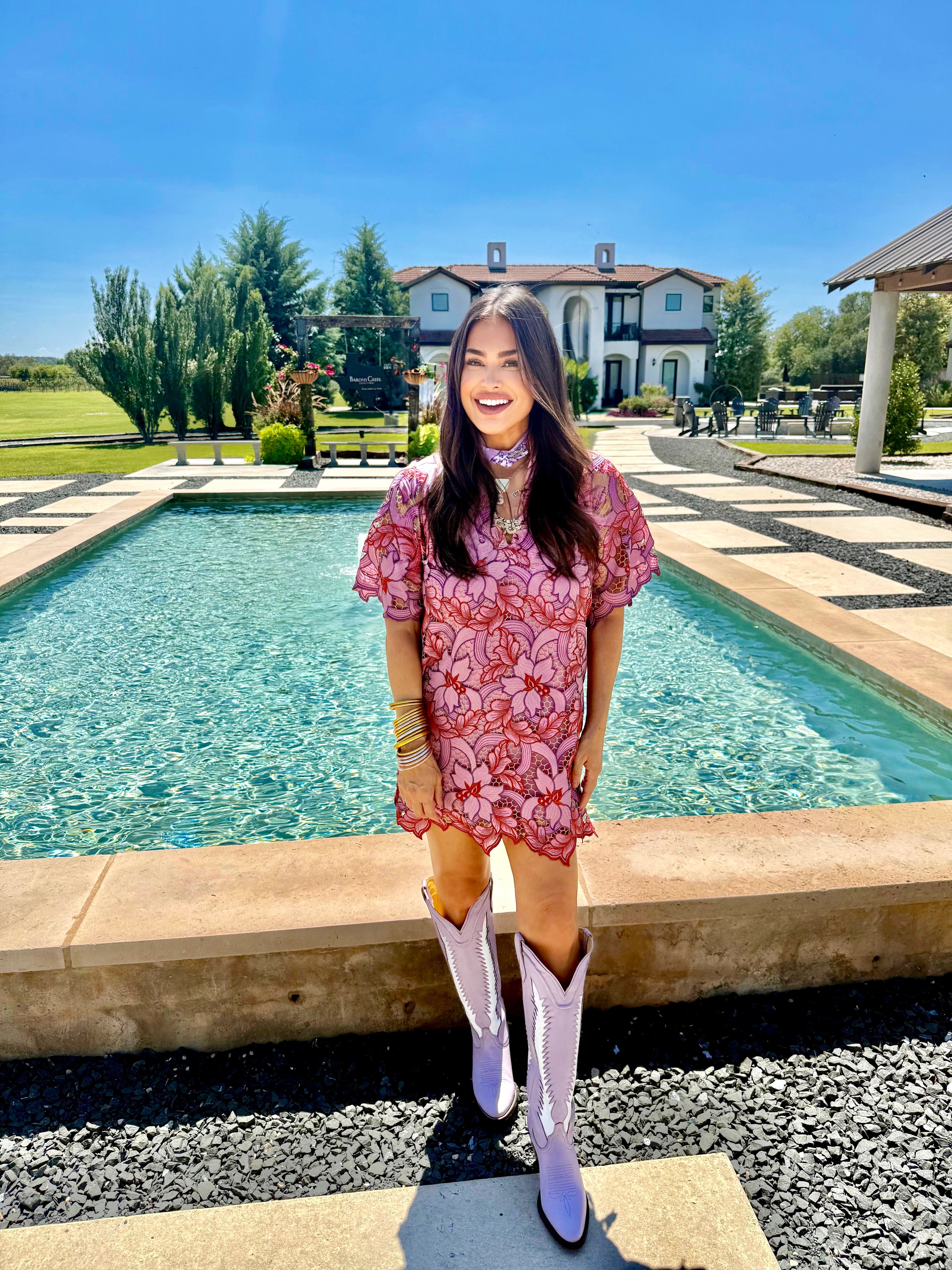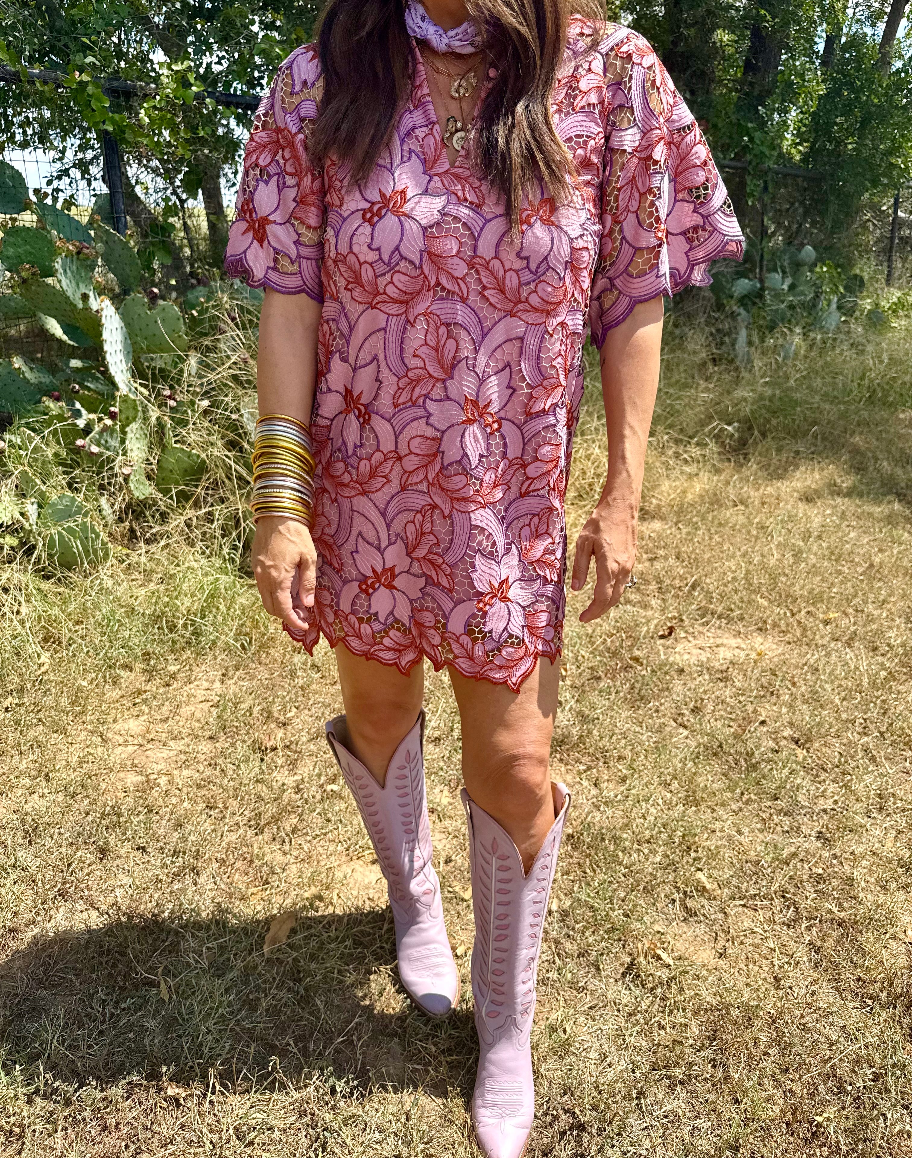 Lulu Short Sleeve Mini Caftan - Pink Lady