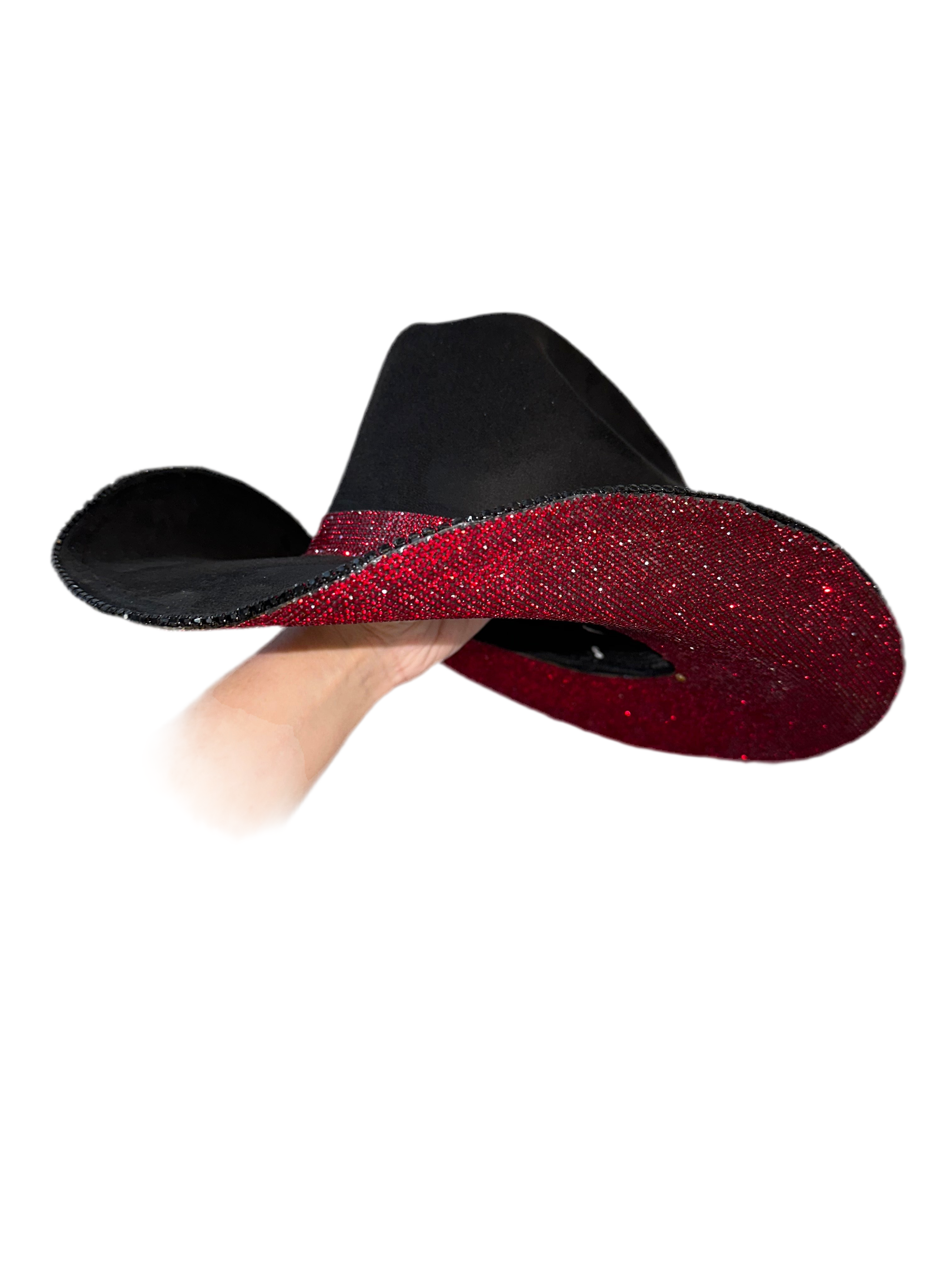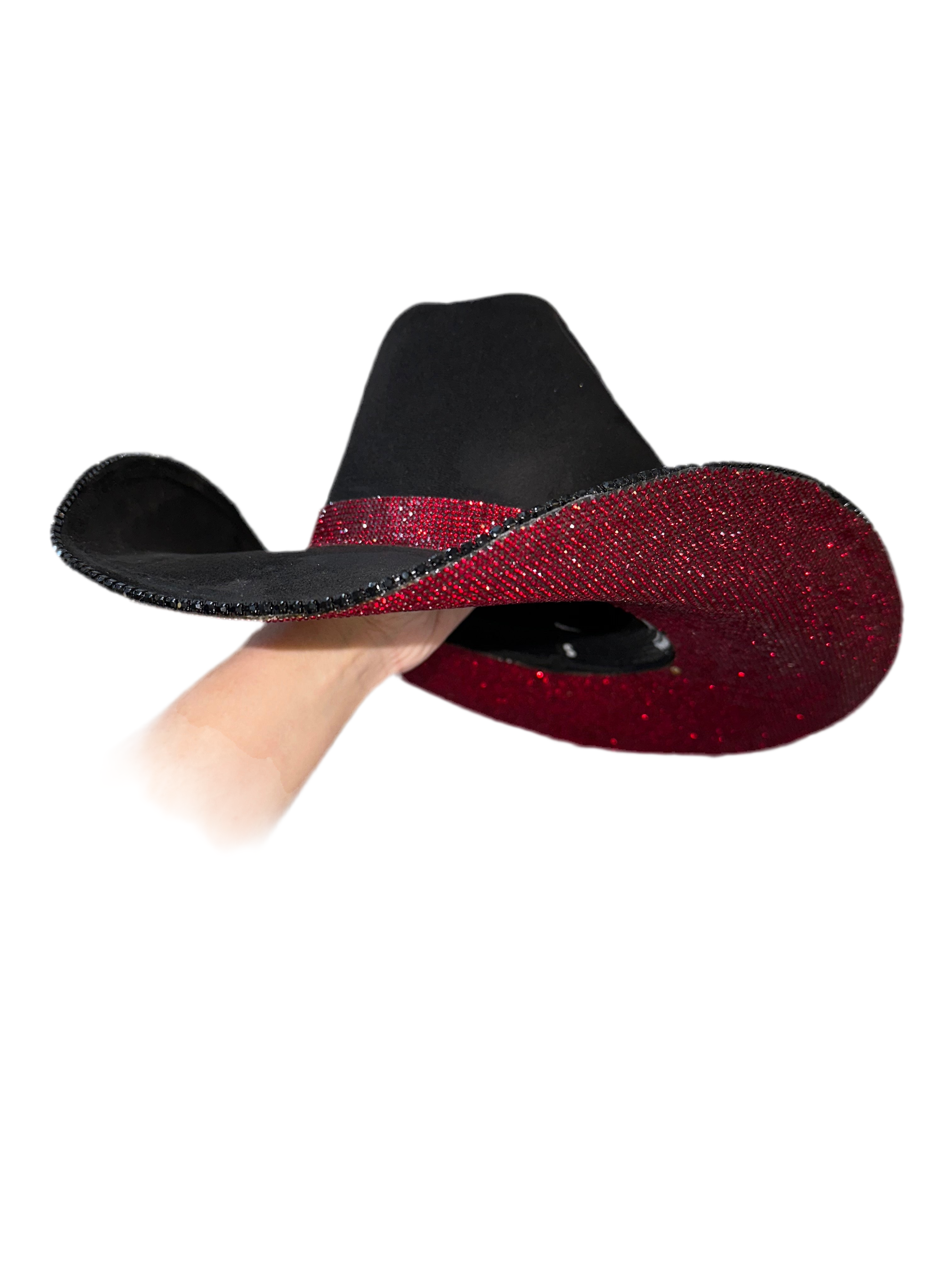 Black Suede Cowgirl Hat with Maroon Rhinestones