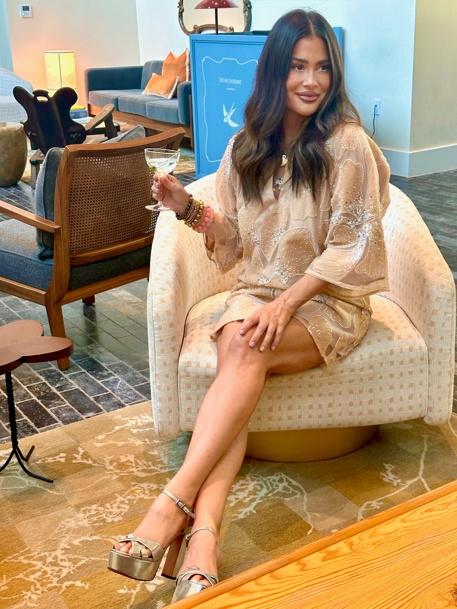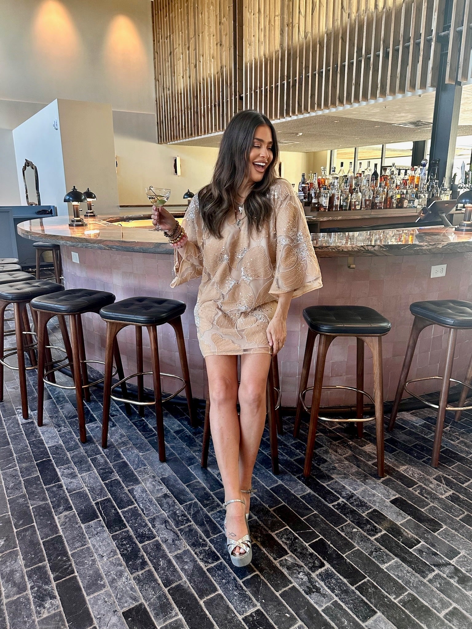 Lulu Short Sleeve Mini Caftan- Precious Coral
