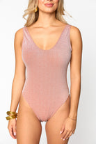 Get ready to sparkle in the Carly Swimsuit. This stunning suit features a scoop neck and sparkly fabric for a fun and flirty look. Perfect for a day at the beach or a pool party!