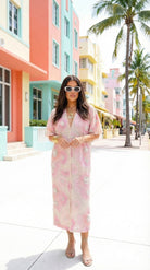 A graceful silhouette with a playful print is exactly what dreams are made of! Our She She dress is the perfect dress for your 2026 season! She features a button closure on the front, loose fit, midi length, with a fun sequin pattern! Throw on sandals for a casual day look, or throw on heels for an ocean front date night with your boo!