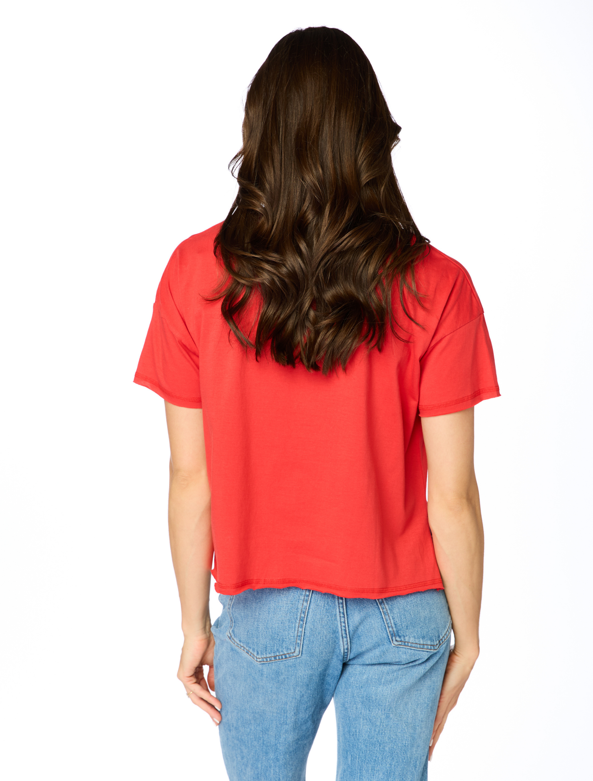 This is sure to become your favorite year-round top! This boxy tee features a slightly cropped length, side slits, dropped shoulders, and your favorite team name in subtle flocked detailing. This garment is officially licensed so a portion of your purchase directly supports the university.