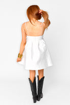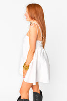Our Ken Mini Dress is the perfect balance of sassy and sweet! It's an empire-waisted dream with adjustable tie straps and a zipper in the back so you'll fit just right. Pleats on the bust give it a flirty flair that add the finishing touches to this perfect dress!