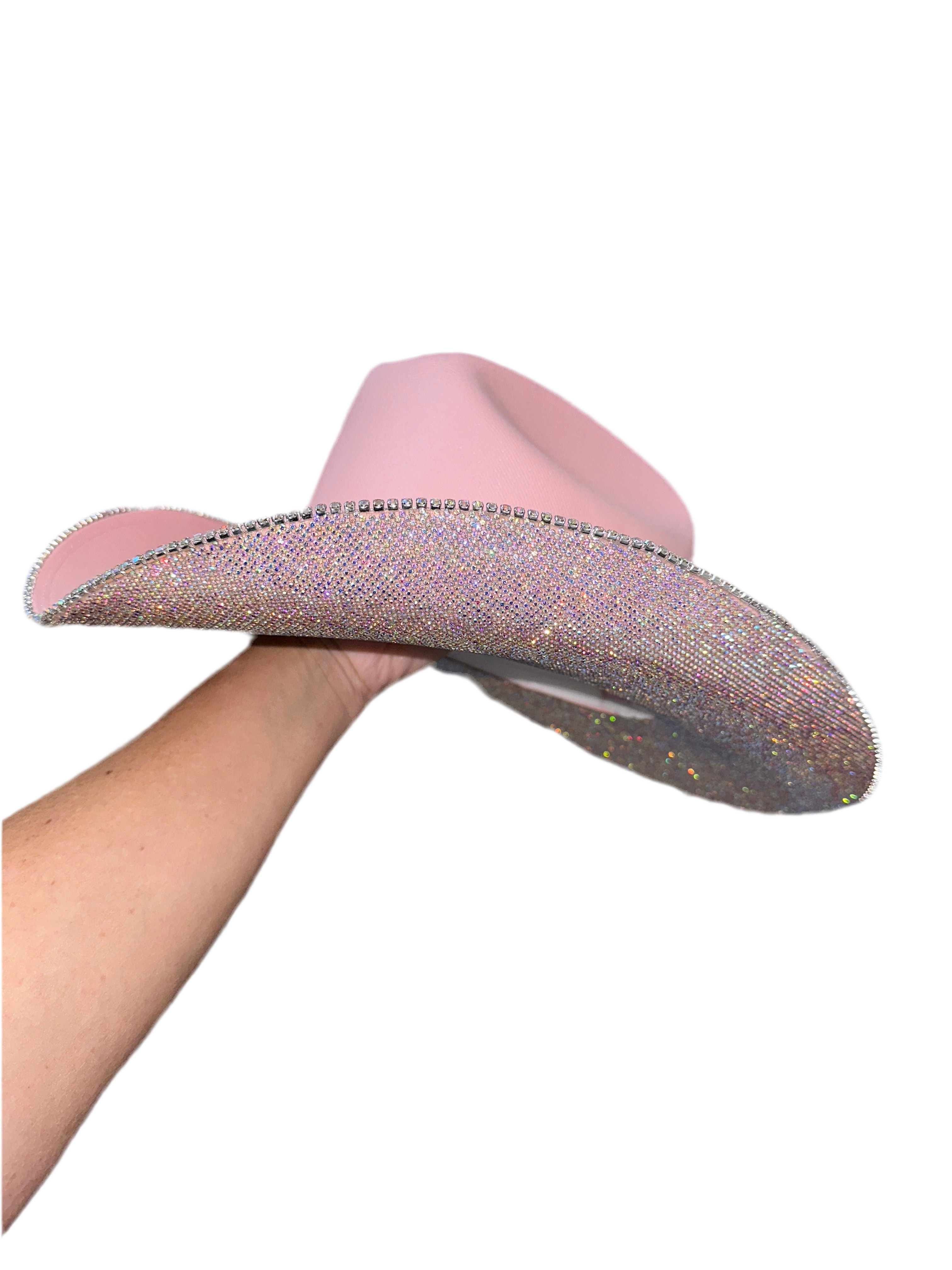 Our pink & ab hat features our pink hat+ ab rhinestones on the underneath brim and a matching hat band. Perfect for those who can't get enough of pink!