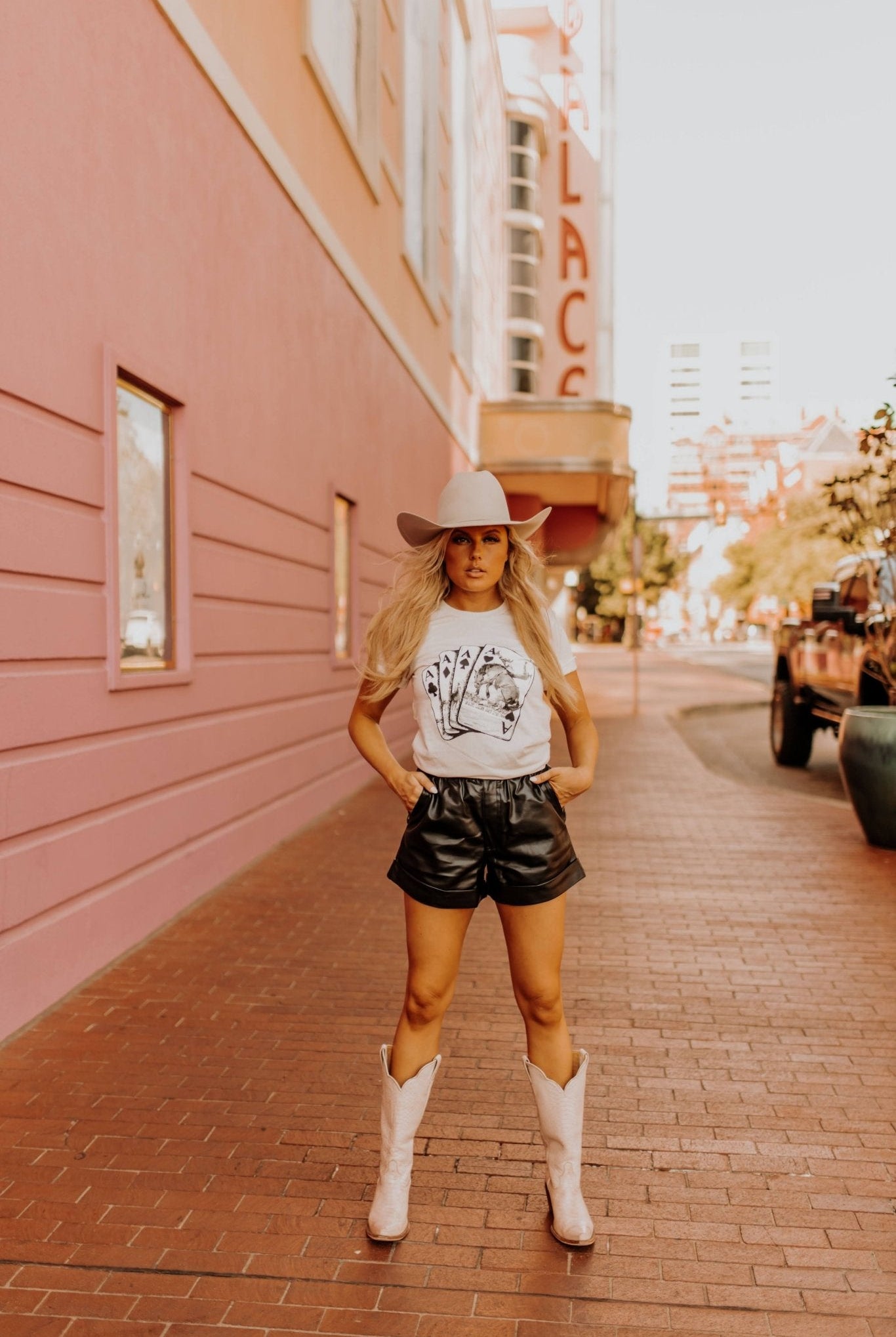 Find your favorite rompers, mini dresses, sequin outfit sets, denim shorts, vegan leather skirts, fringe suede jackets, faux fur jackets with fringe, and trendy western boots in this collection of country glam outfits and cute western dresses for women. Express your unique sense of style with fabulous and flirty glam cowgirl outfits and individual pieces.