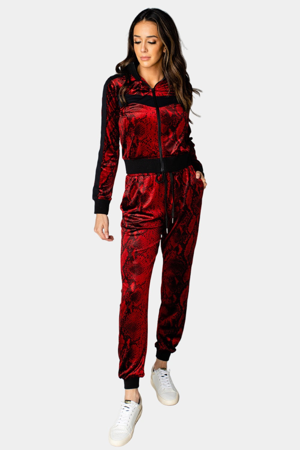 Carmela Velour Track Jacket - Lava Rock