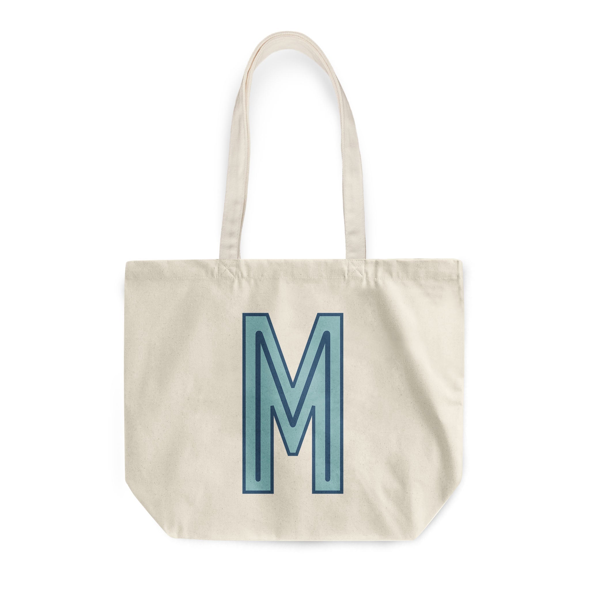 Canvas Tote - Single Initial - Light Blue Navy - NEW!