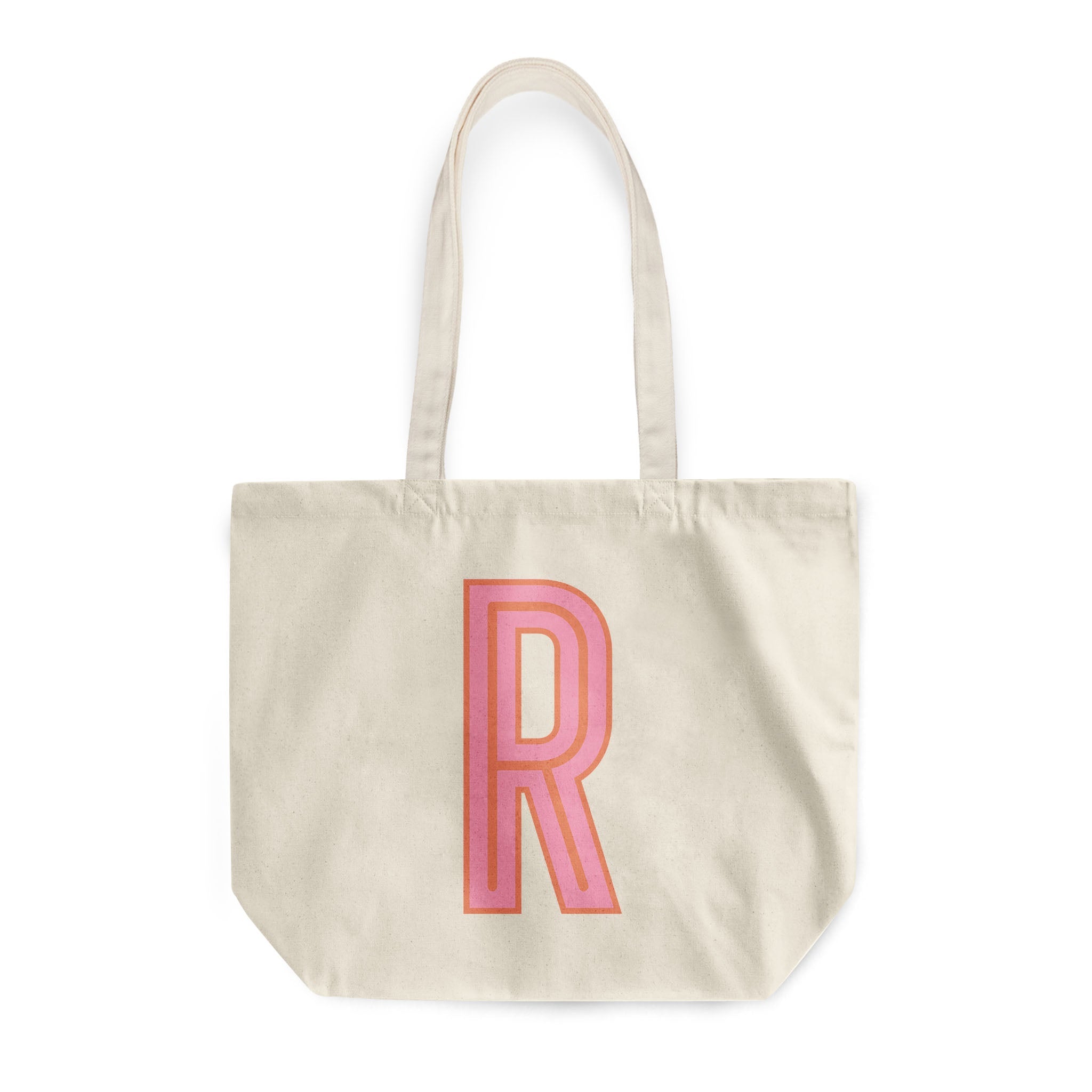 Canvas Tote - Single Initial - Pink Orange - NEW!
