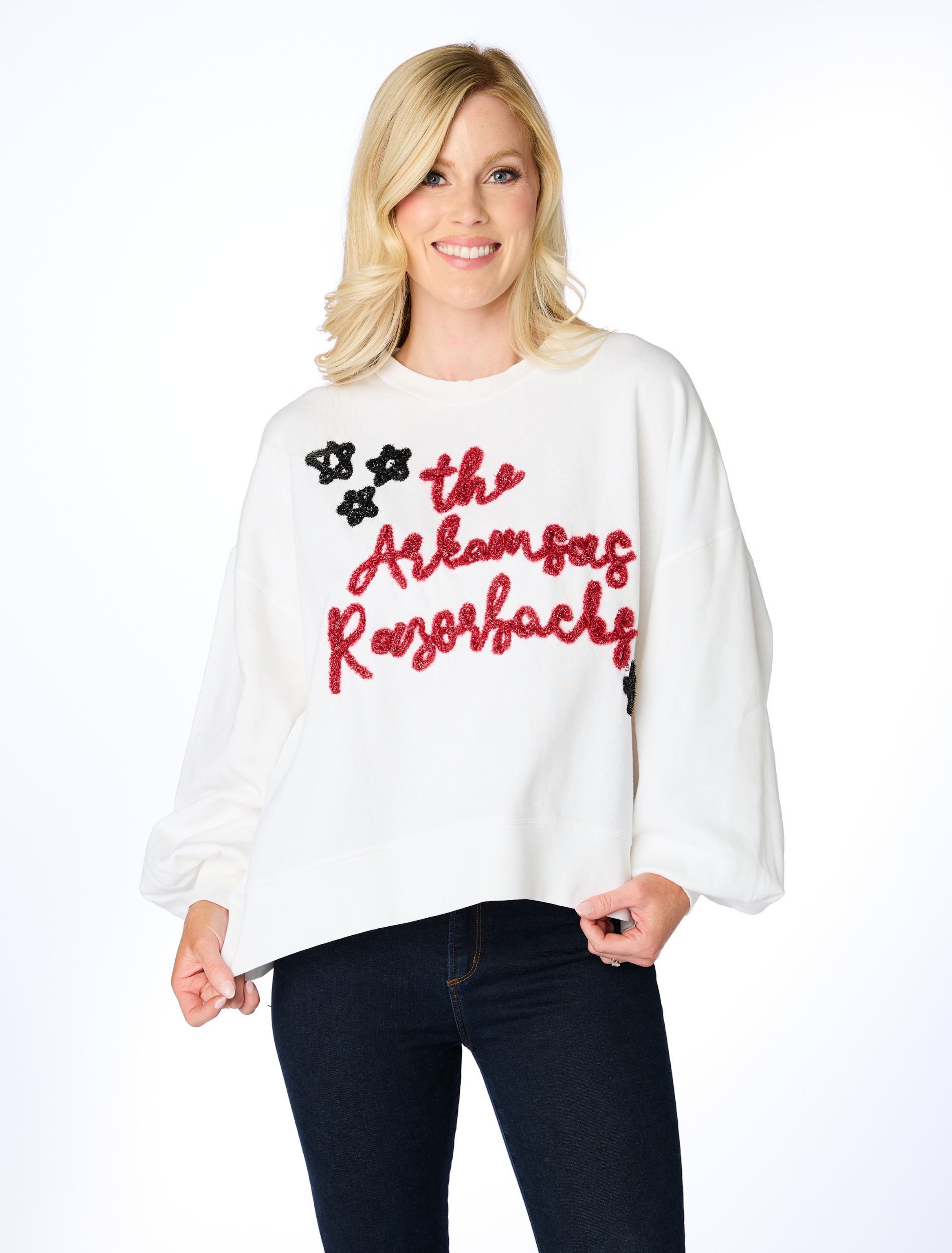 The Arkansas Razorbacks Glitter Script Balloon Pullover